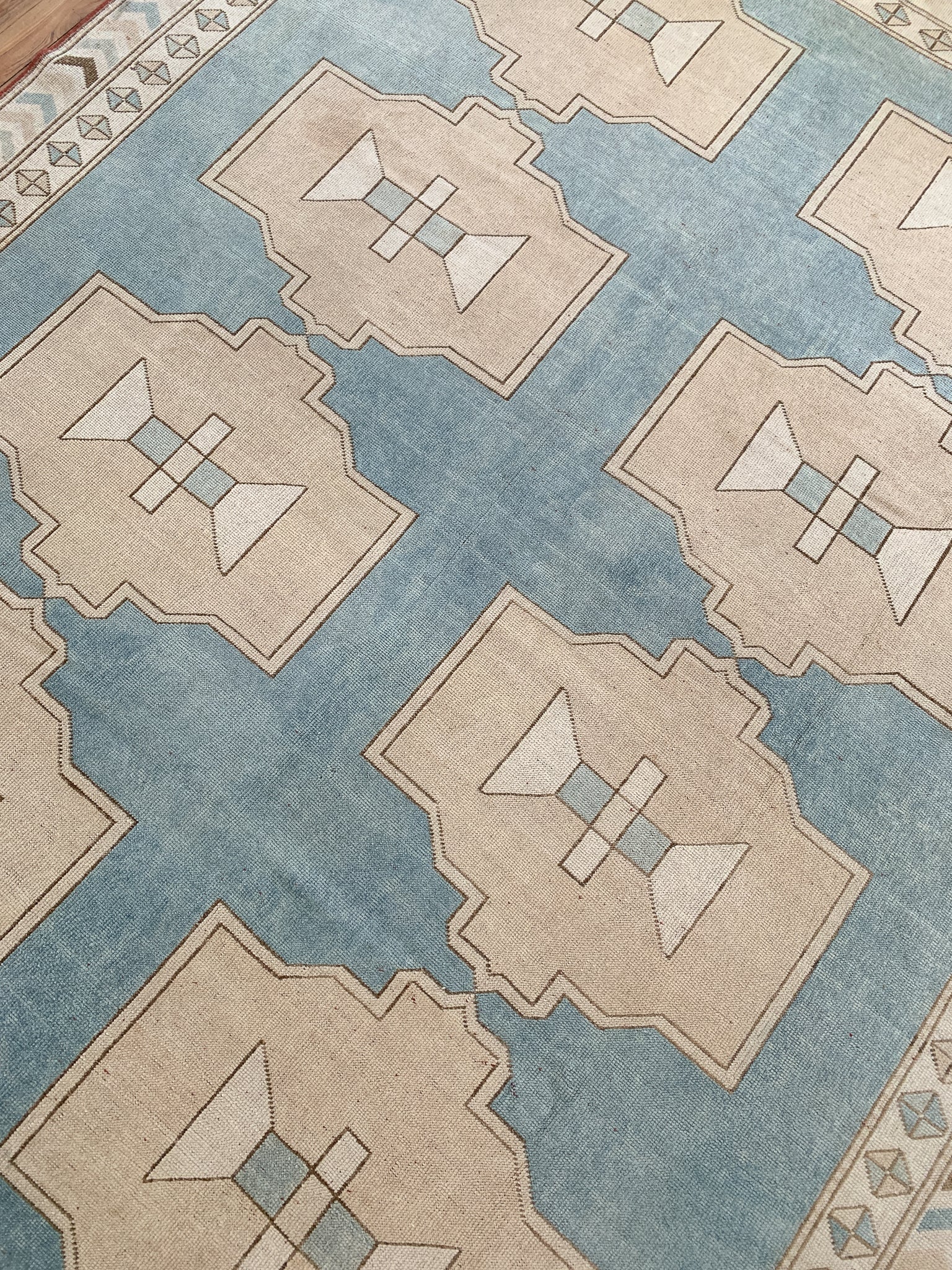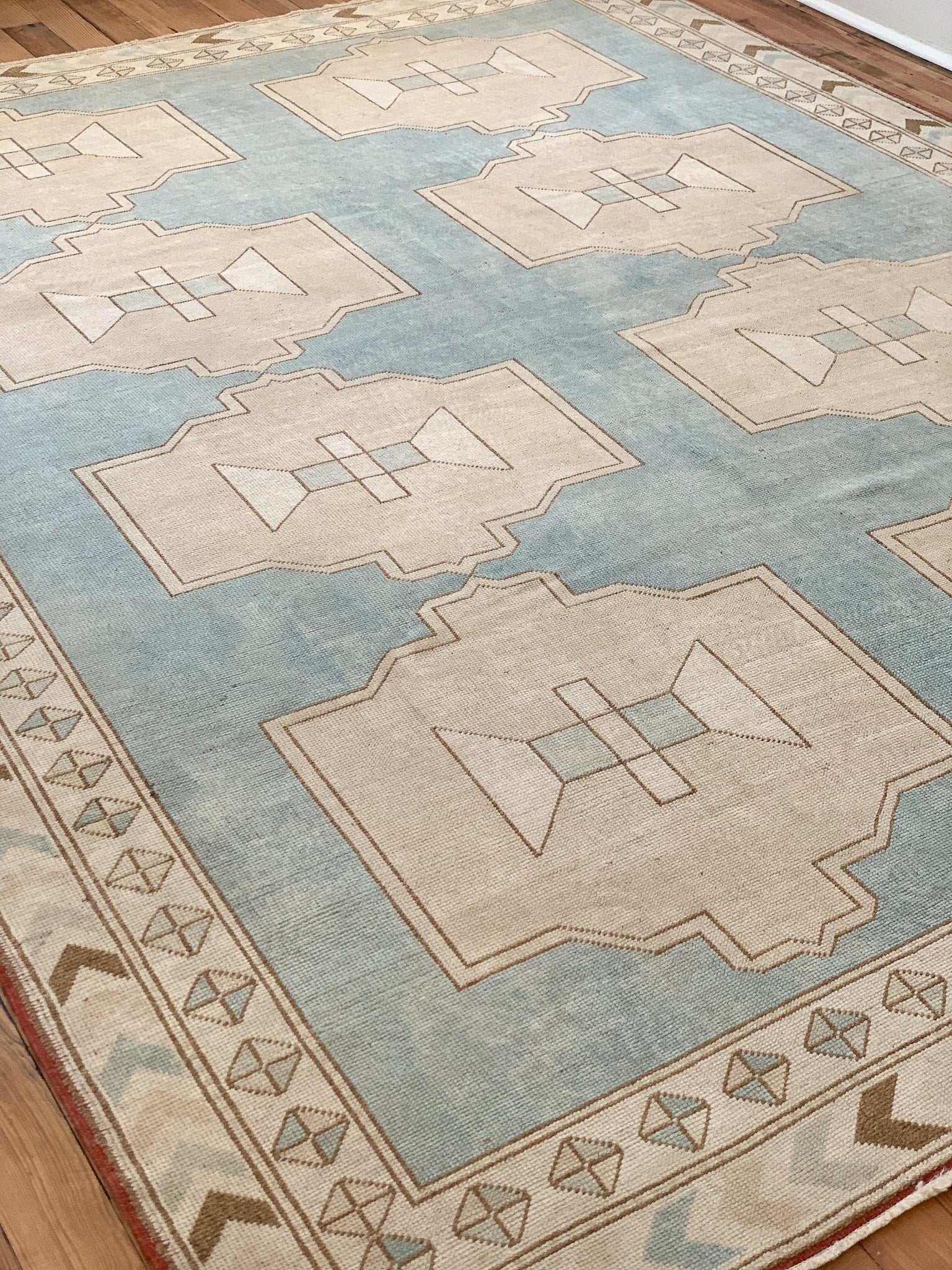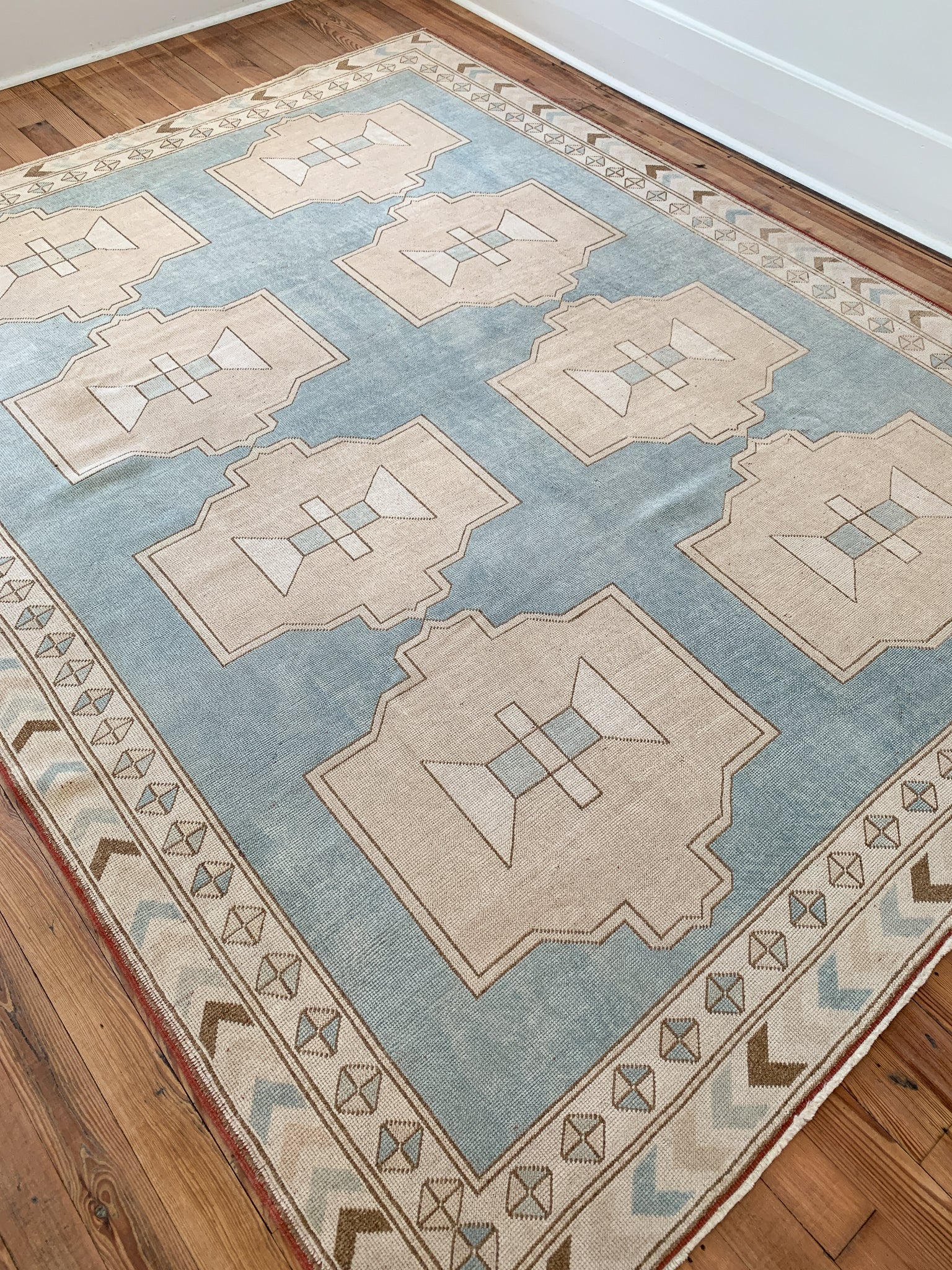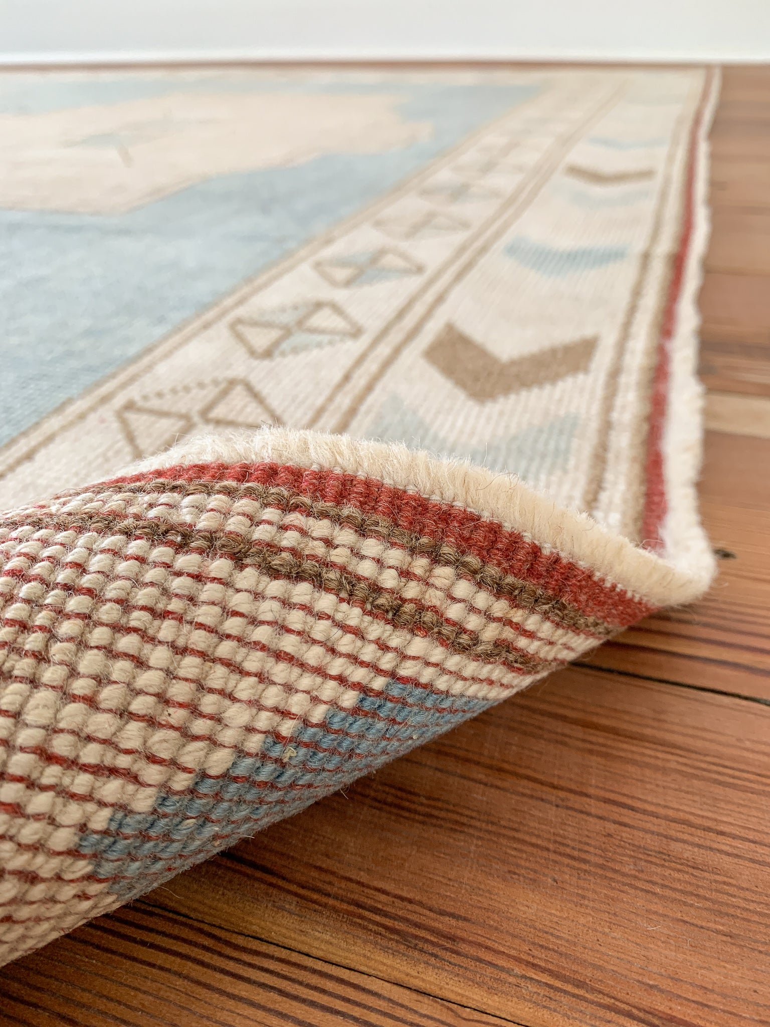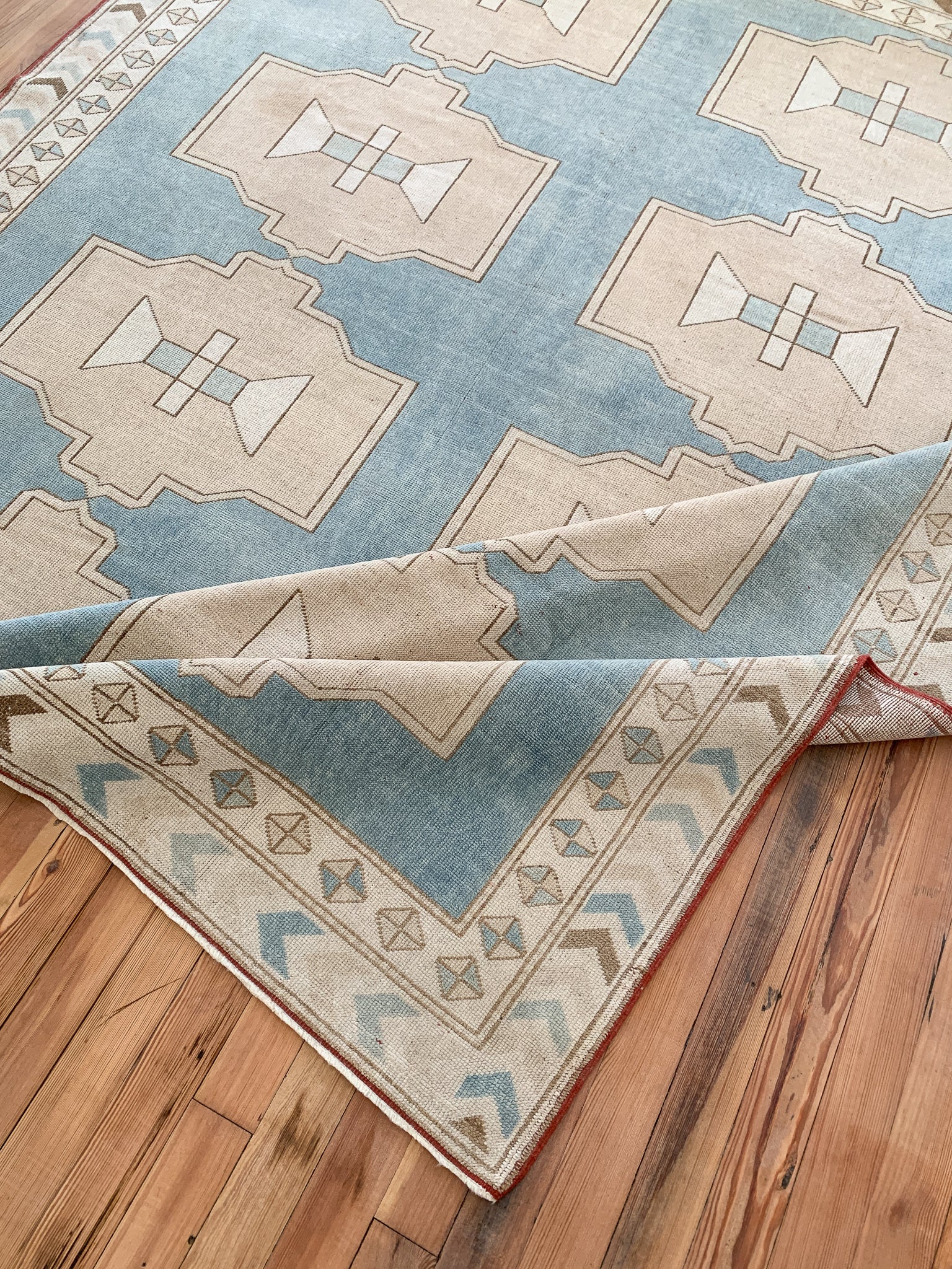 All rugs have been thoroughly cleaned; age-related wear and patina are considered normal in these unique, hand woven vintage rugs. All pieces have been photographed with moderate natural light. In some cases, photos are edited to depict the most true to life colors. Colors may vary depending on your phone or screen settings. Some items may not be perfectly straight or rectangle. We consider these characteristics part of what makes them truly one-of-a-kind.