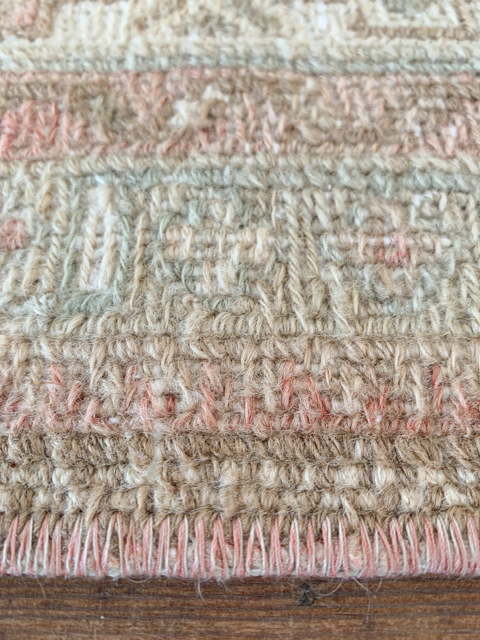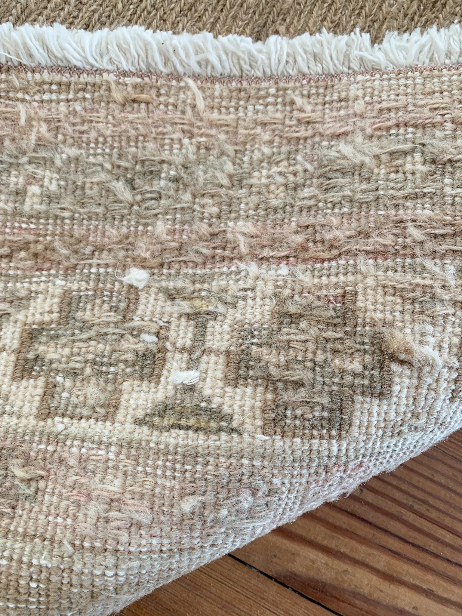Each rug listed on our site is either wool pile on a cotton foundation, or wool pile on a wool foundation. Quality, unrefined wool contains a substance called lanolin. Lanolin tends to have a natural smell, which many compare to the smell of sheep – or almost metallic-y, but sweet and grassy.