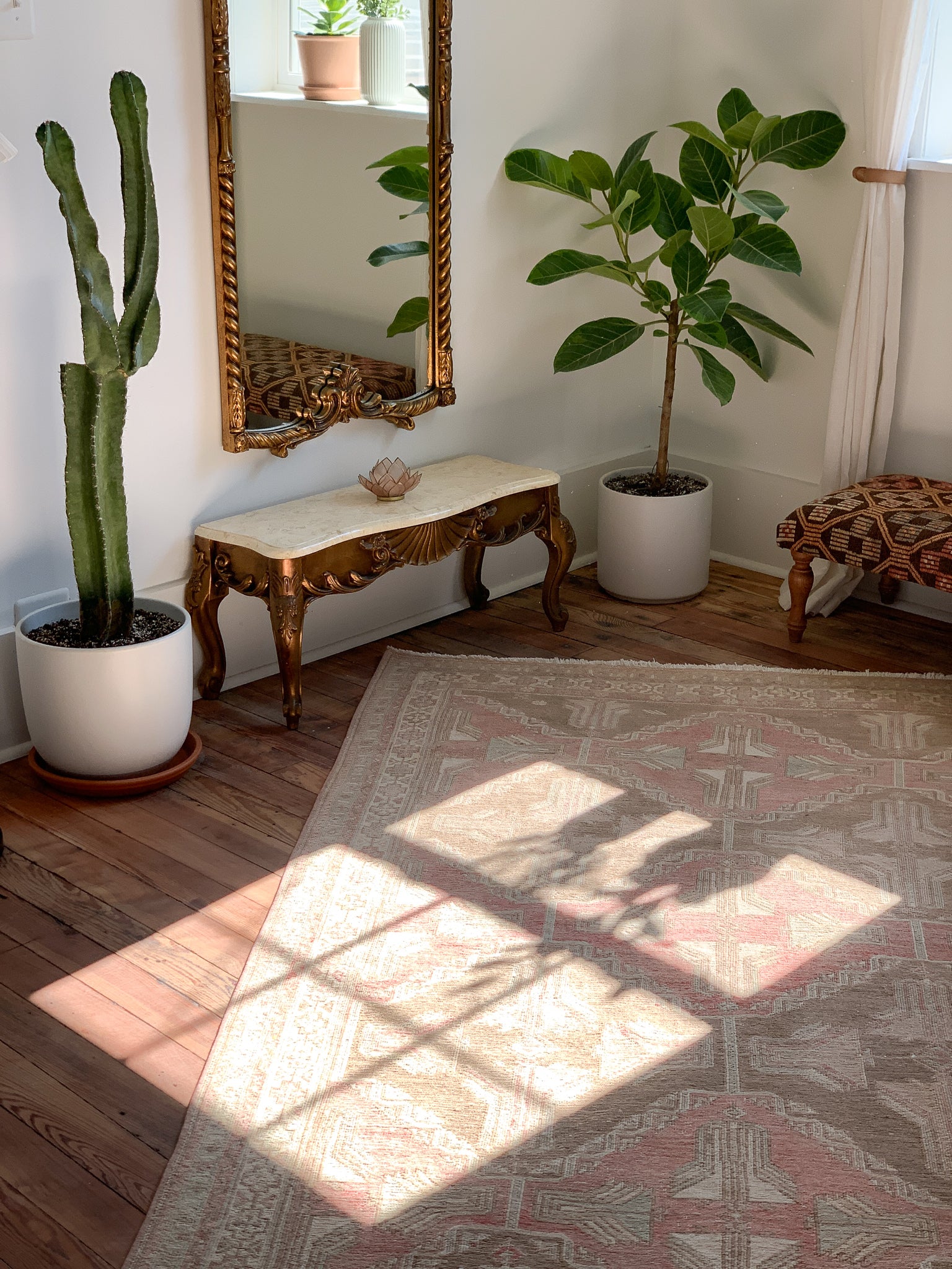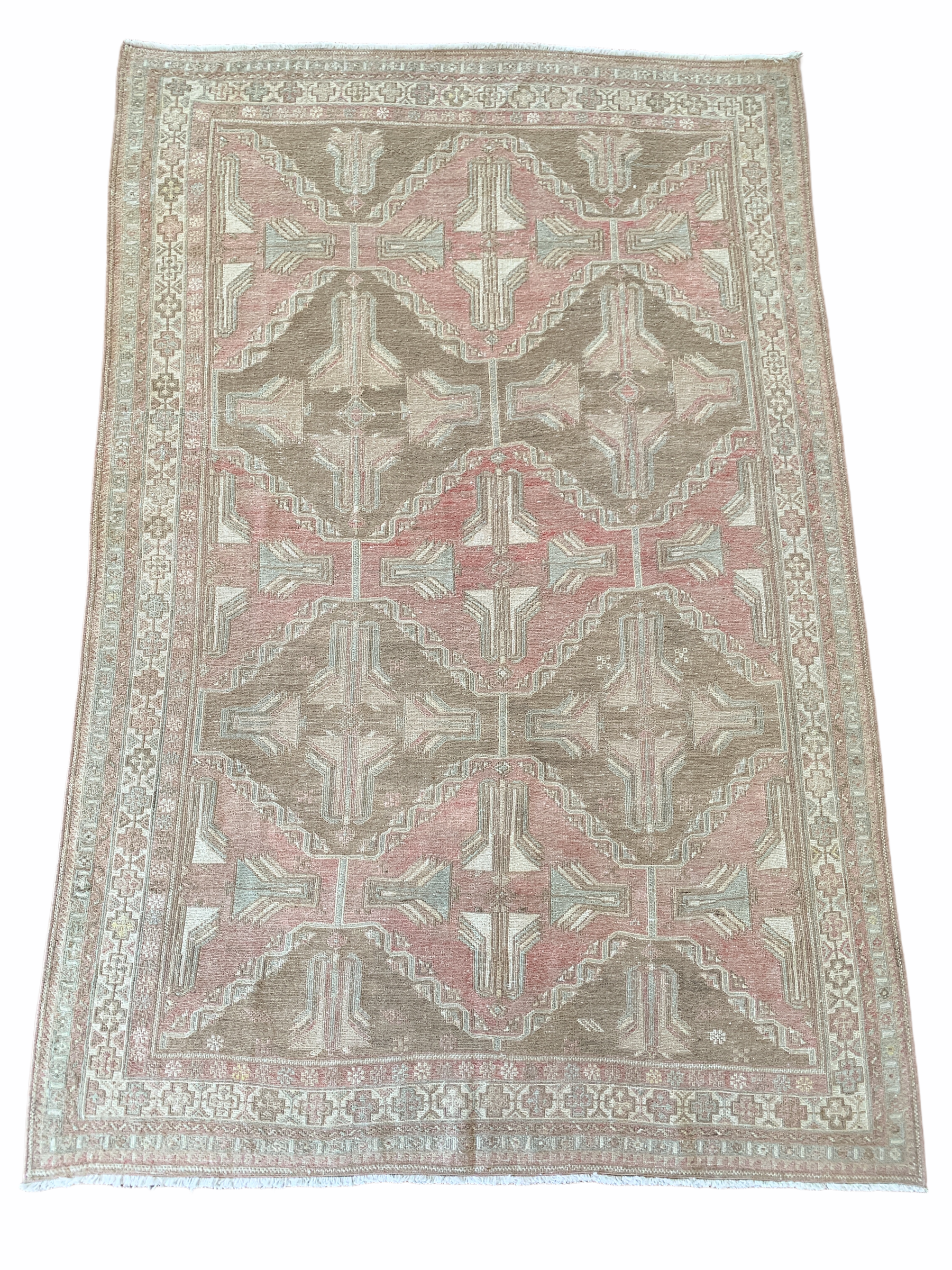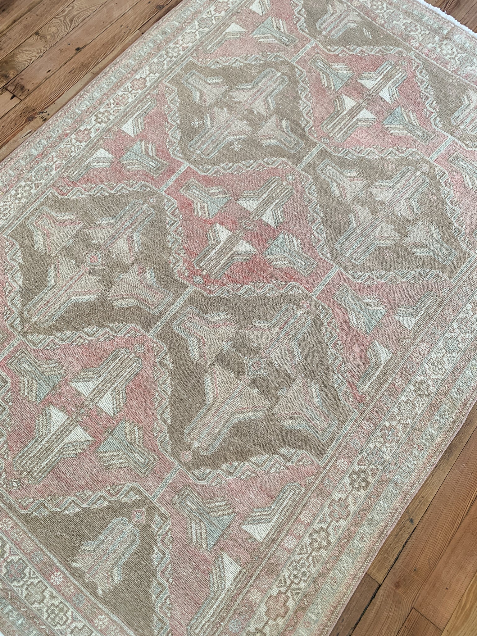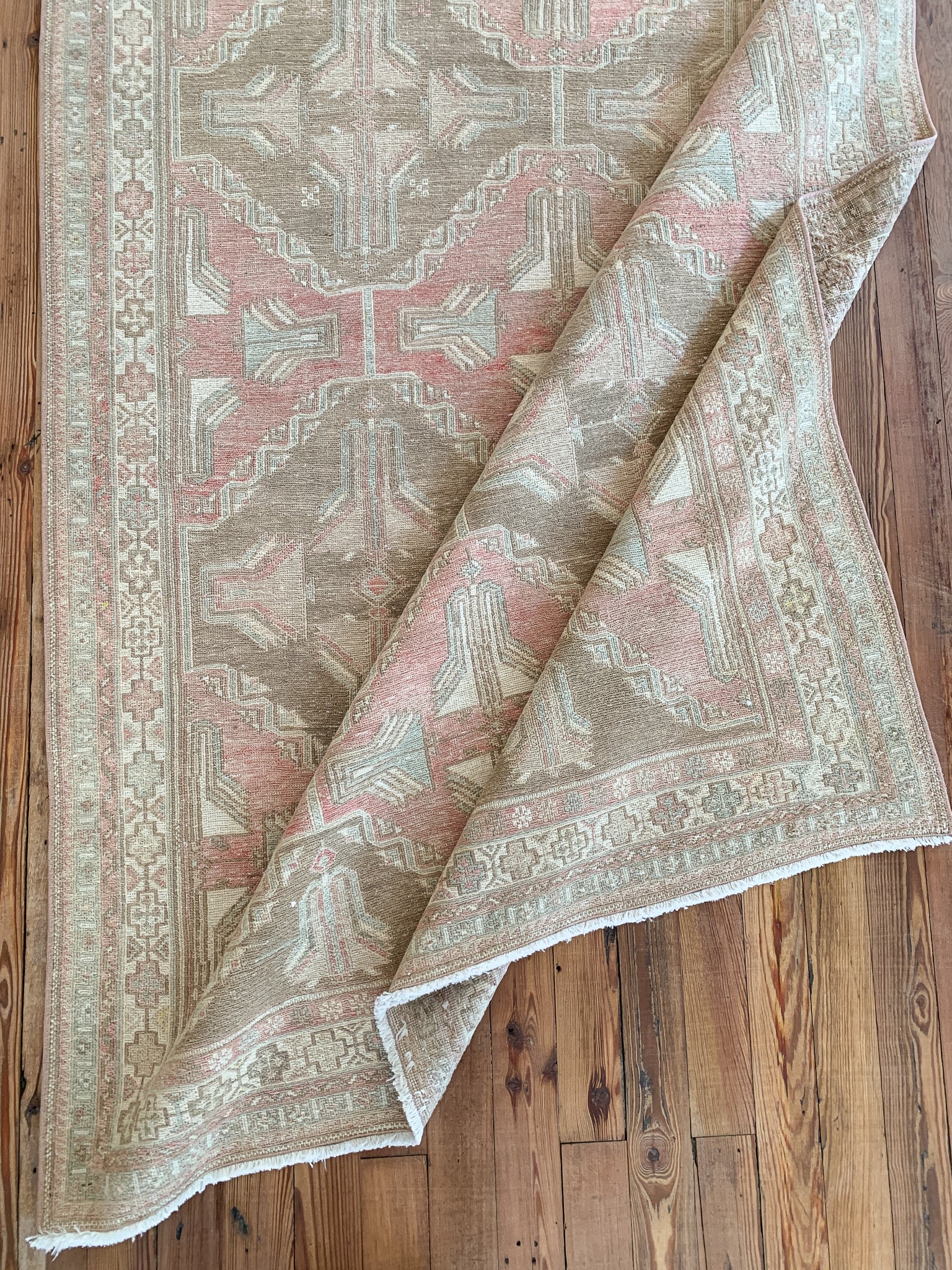 All rugs have been thoroughly cleaned; age-related wear and patina are considered normal in these unique, hand woven vintage rugs. All pieces have been photographed with moderate natural light. In some cases, photos are edited to depict the most true to life colors. Colors may vary depending on your phone or screen settings. Some items may not be perfectly straight or rectangle. We consider these characteristics part of what makes them truly one-of-a-kind.
