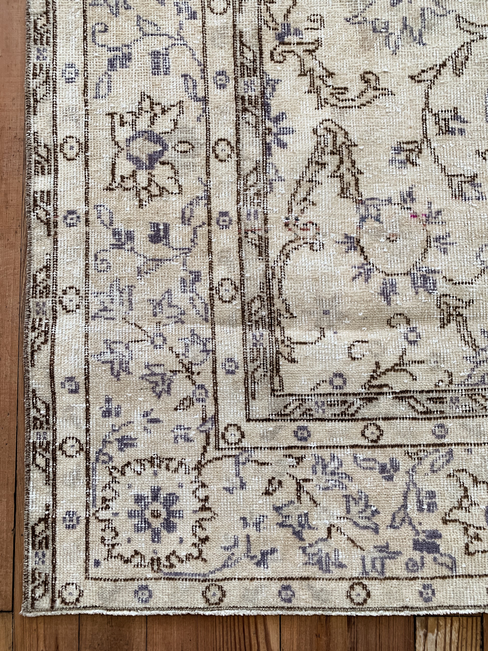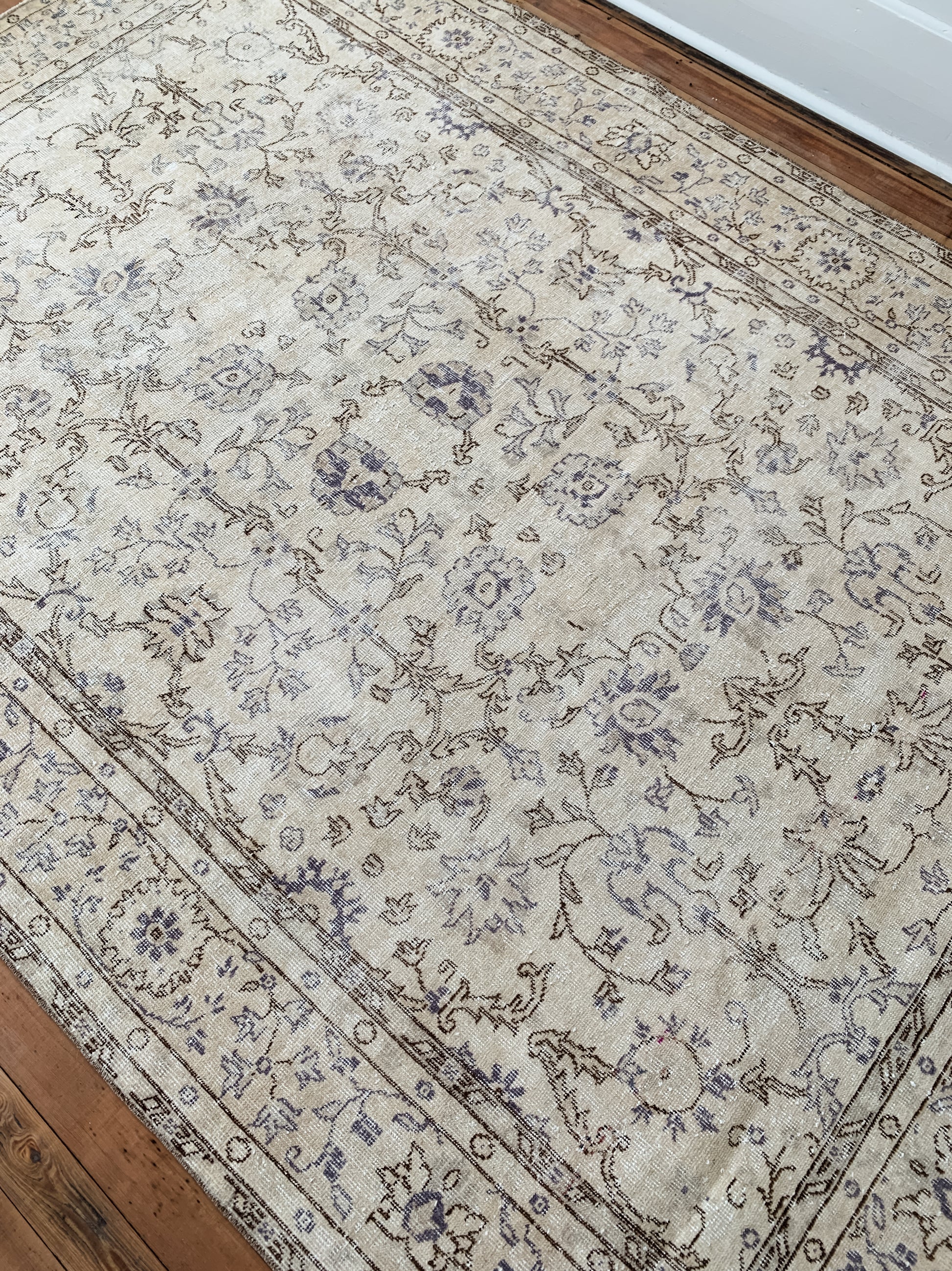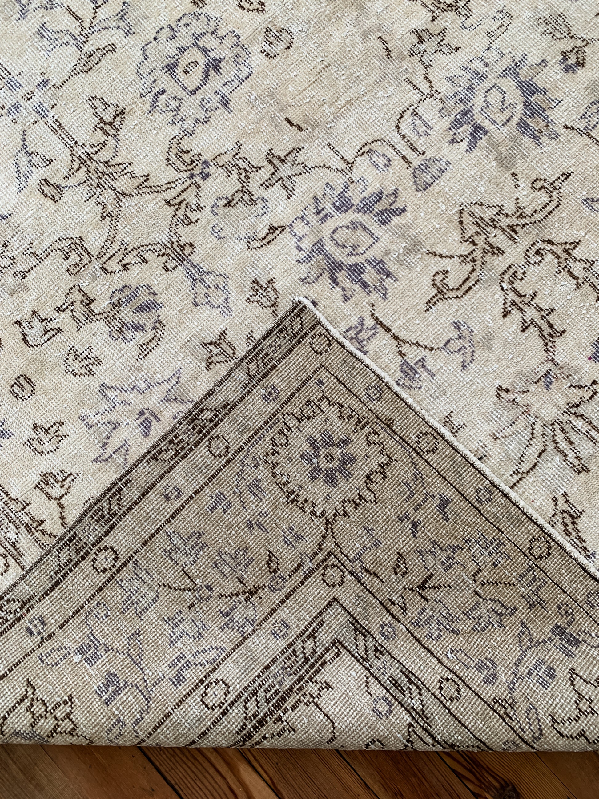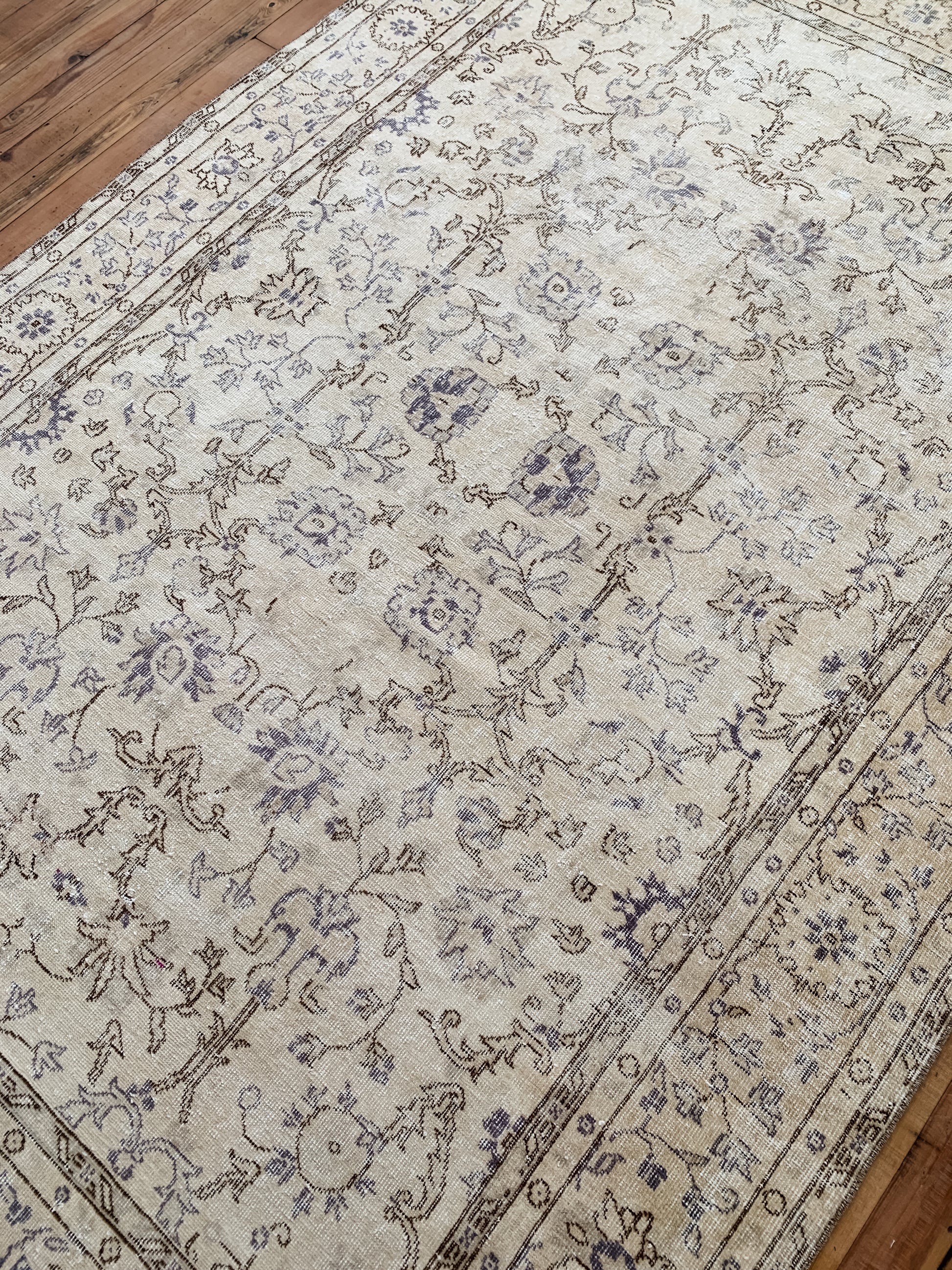 Cleaning: Vacuum on occasion, with suction only. Spot clean with clear soap, a little bit of white vinegar, and water. Never use a carpet cleaner machine to clean a vintage rug. If your piece is fragile or antique, or needs a deep clean, take it to a professional.