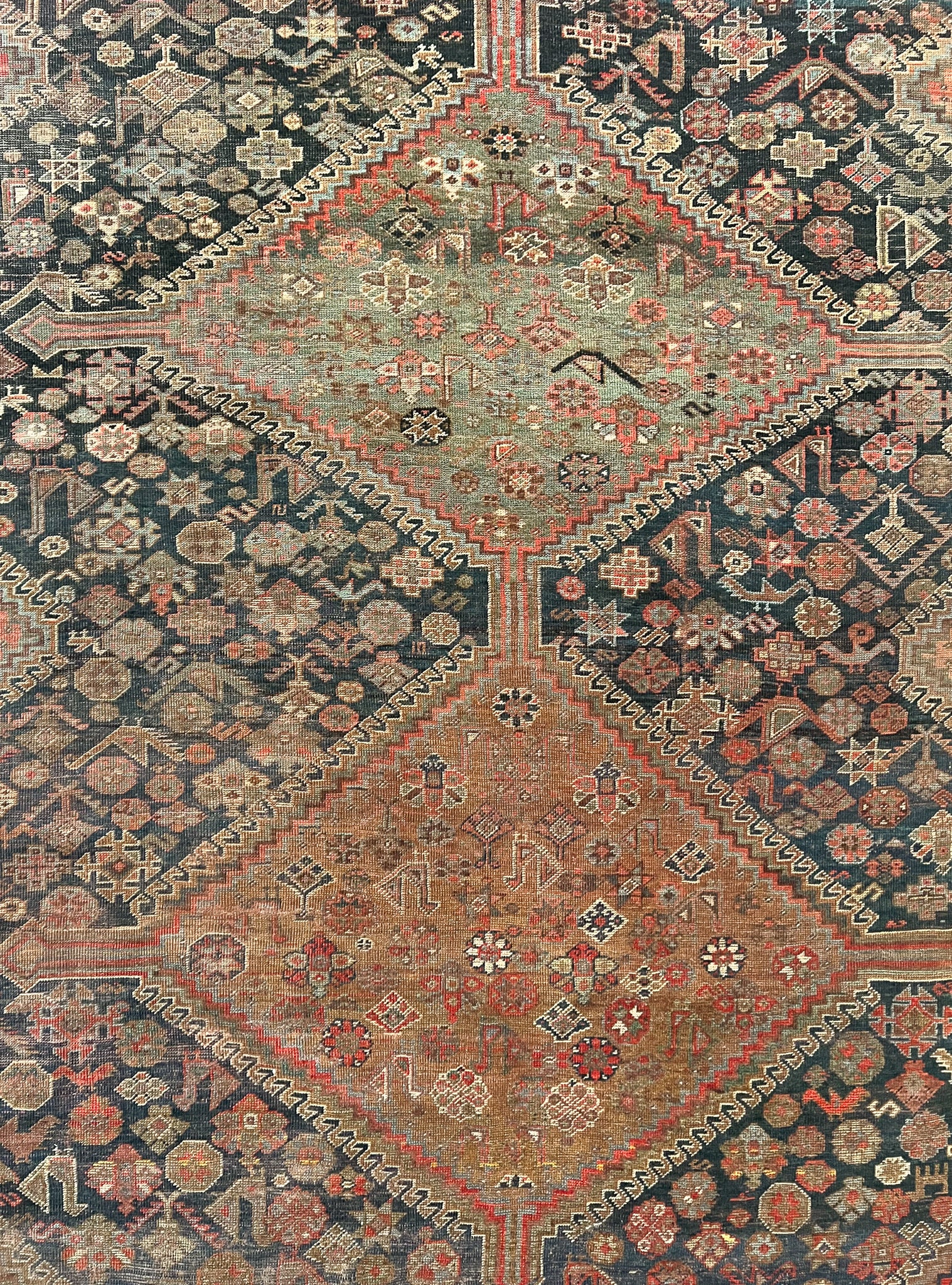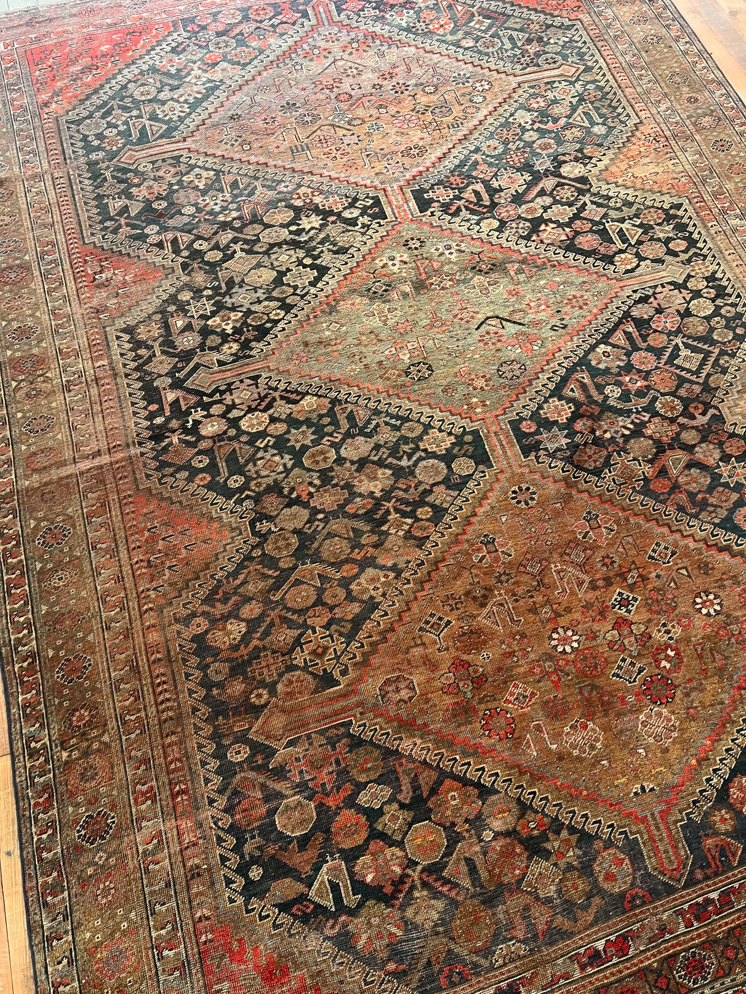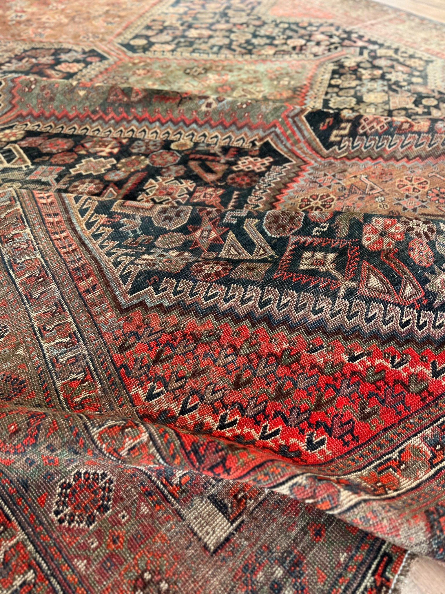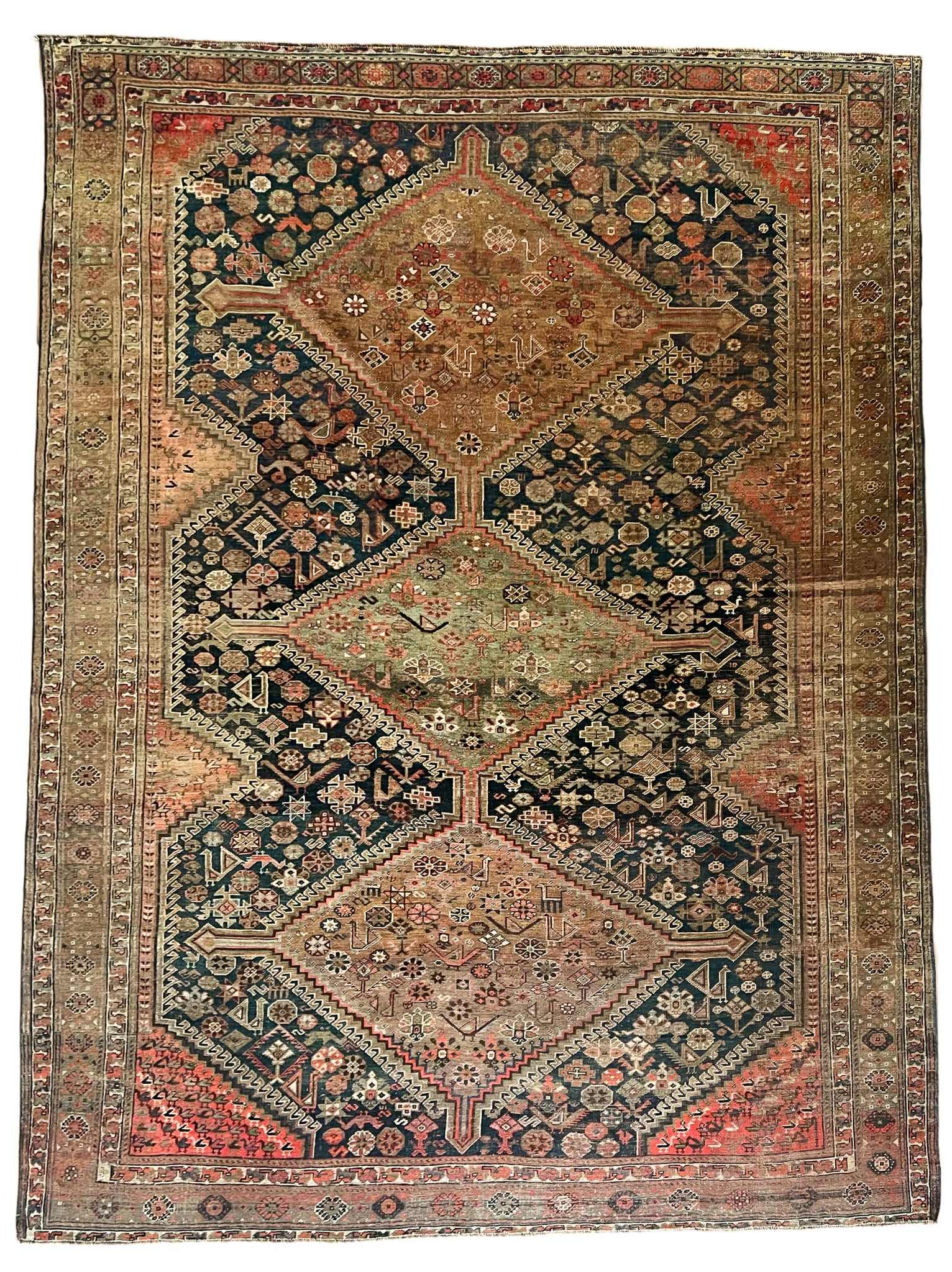 All rugs have been thoroughly cleaned; age-related wear and patina are considered normal in these unique, hand-woven vintage rugs.