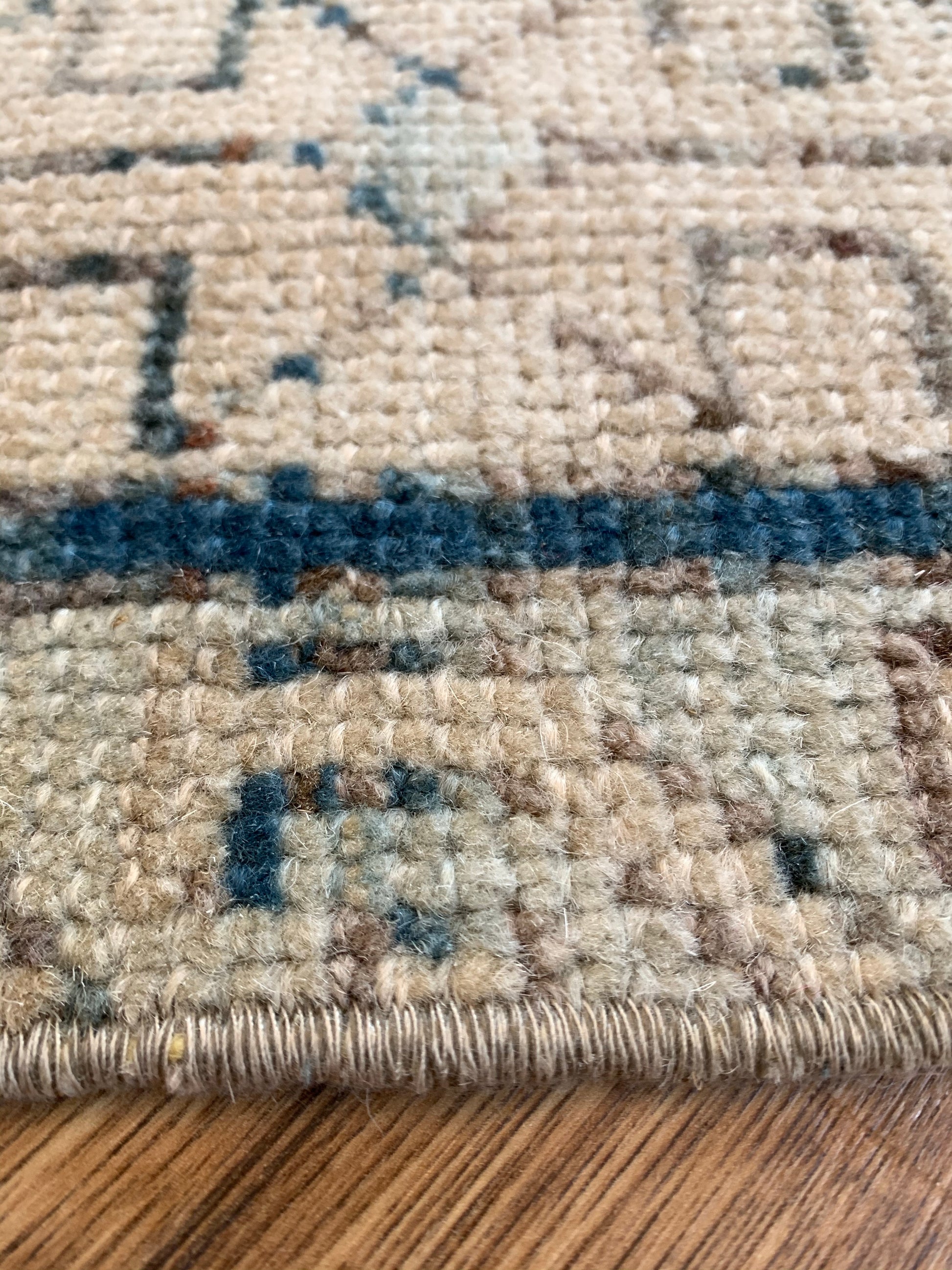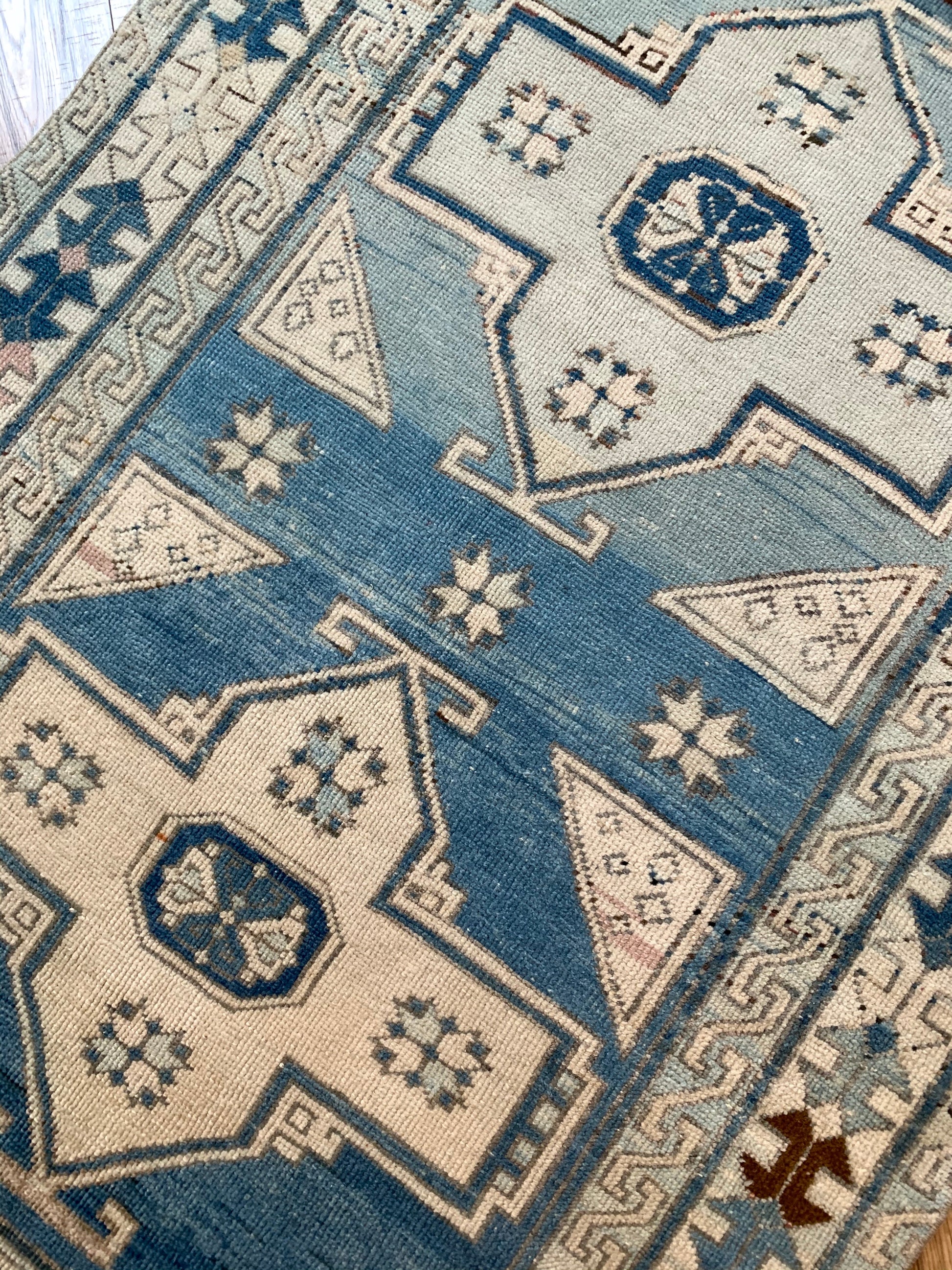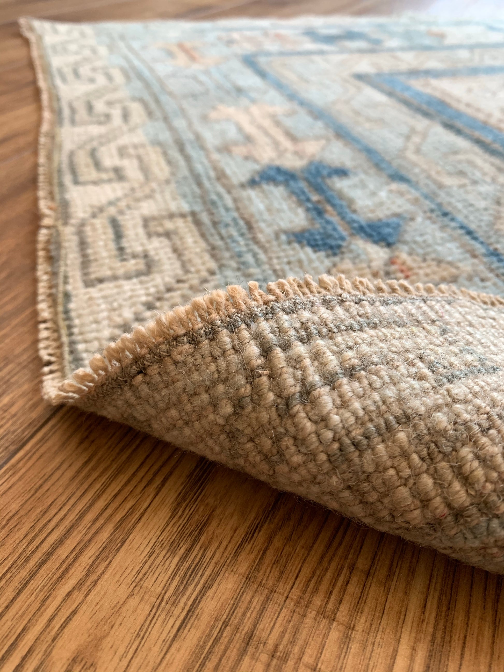 All rugs have been thoroughly cleaned; age-related wear and patina are considered normal in these unique, hand woven vintage rugs. All pieces have been photographed with moderate natural light. Colors may vary depending on your phone or screen settings. Some items may not be perfectly straight or rectangle. We consider these characteristics part of what makes them truly one-of-a-kind.