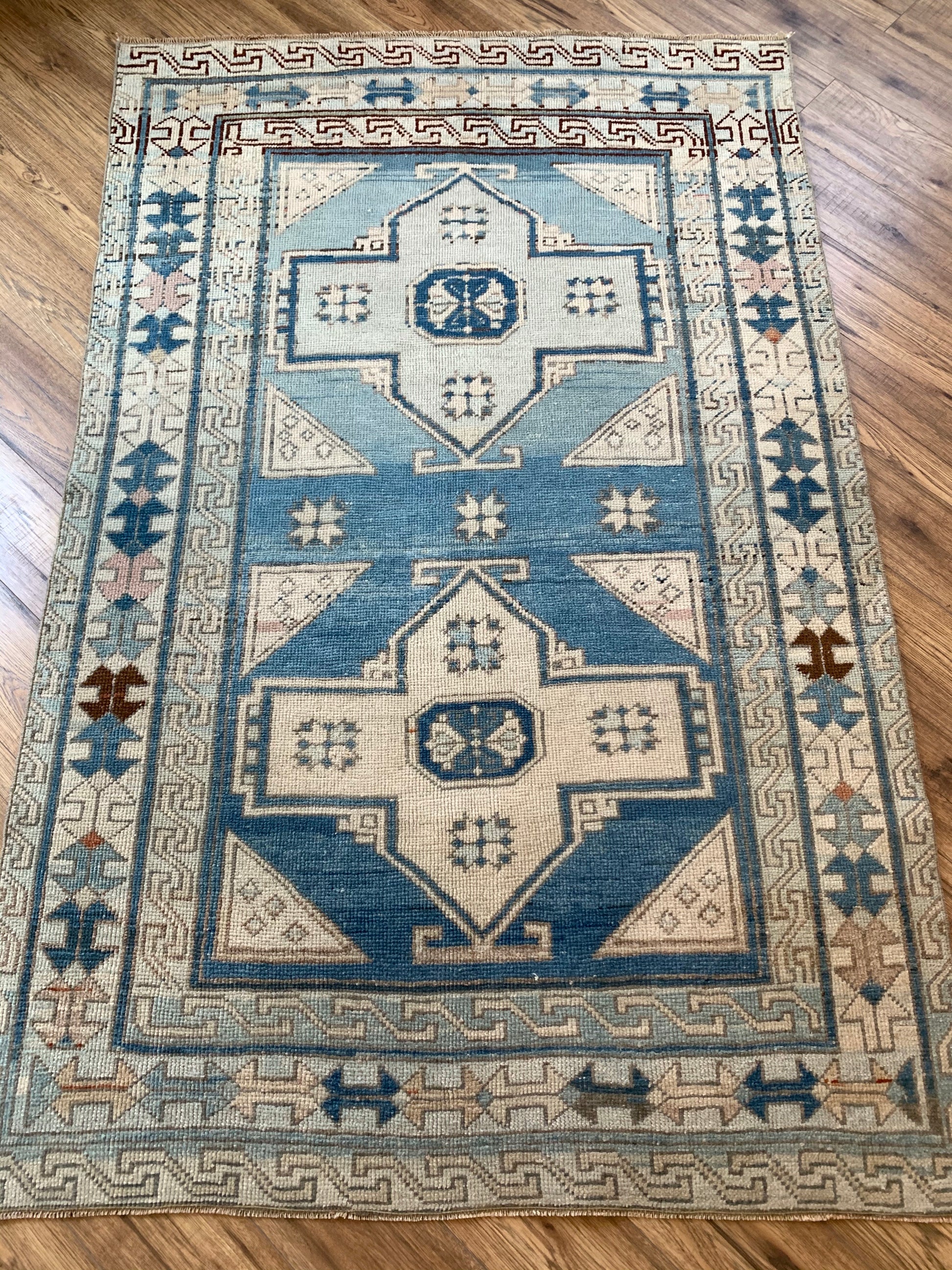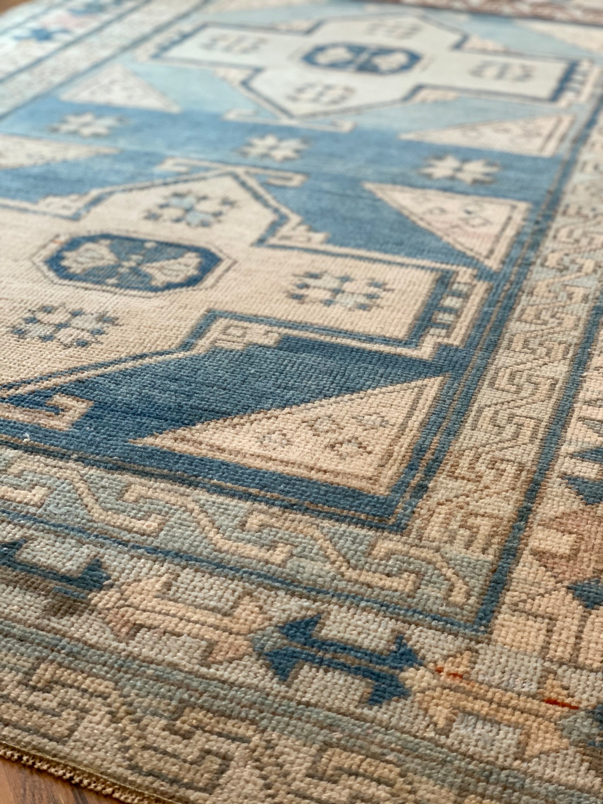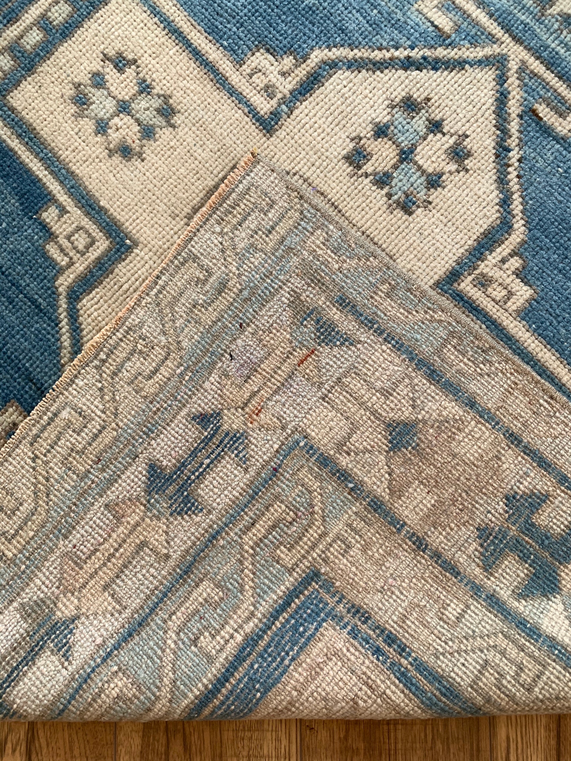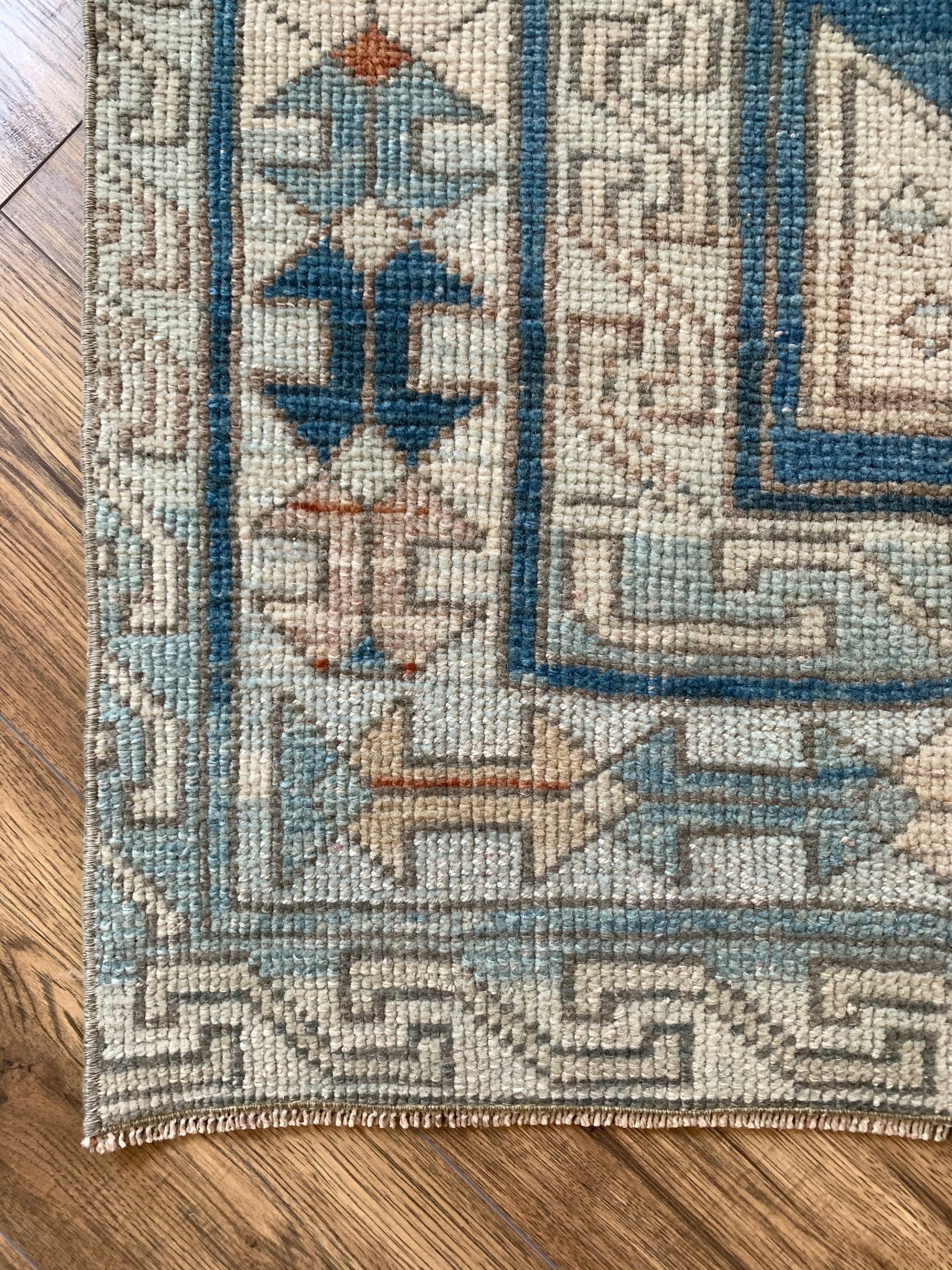 All rugs have been thoroughly cleaned; age-related wear and patina are considered normal in these unique, hand woven vintage rugs. All pieces have been photographed with moderate natural light. Colors may vary depending on your phone or screen settings. Some items may not be perfectly straight or rectangle. We consider these characteristics part of what makes them truly one-of-a-kind.