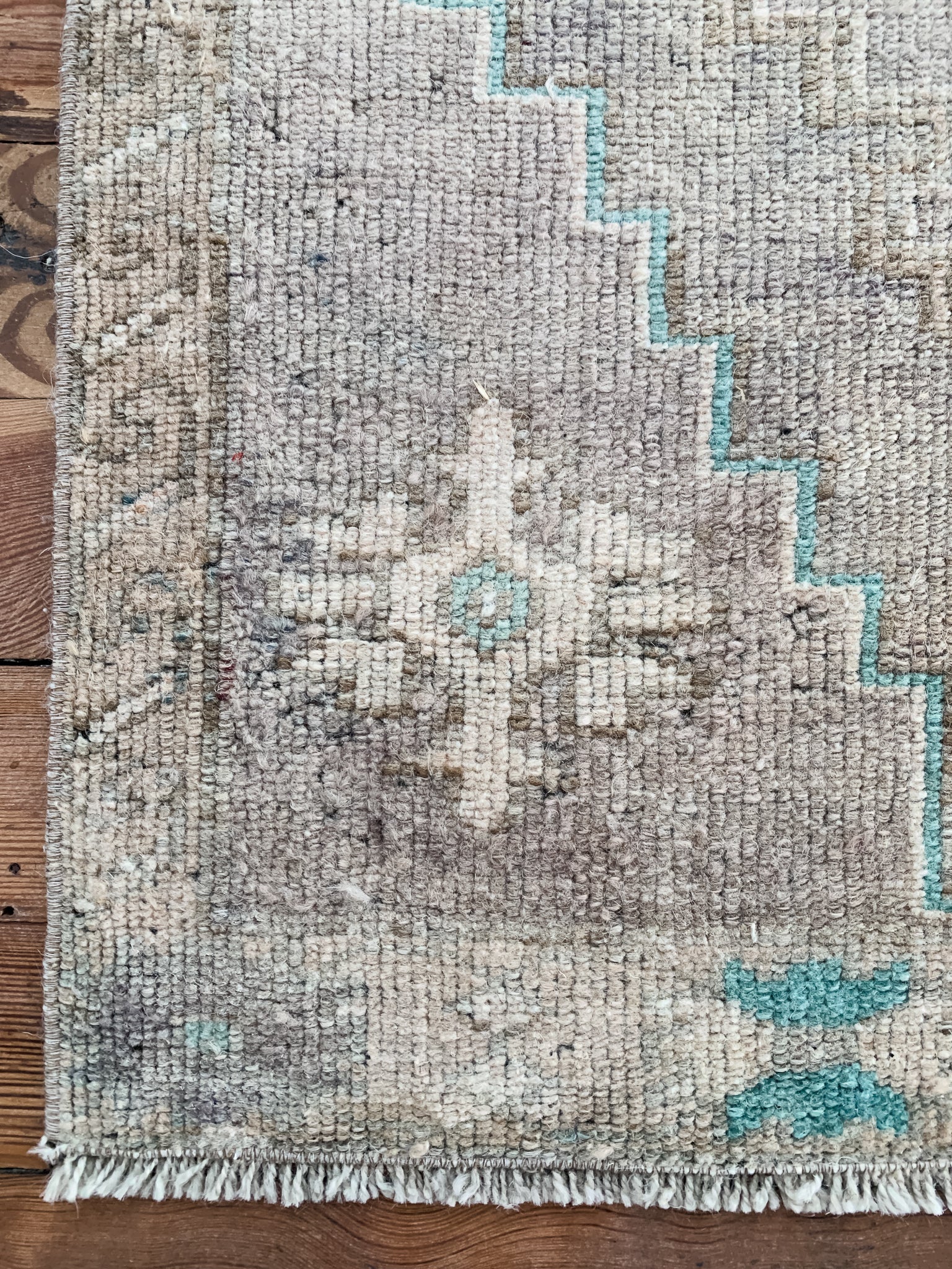 Each rug listed on our site is either a wool pile on a cotton foundation or a wool pile on a wool foundation. Quality, unrefined wool contains a substance called lanolin. Lanolin tends to have a natural smell, which many compare to the smell of sheep – or almost metallic-y, but sweet and grassy.