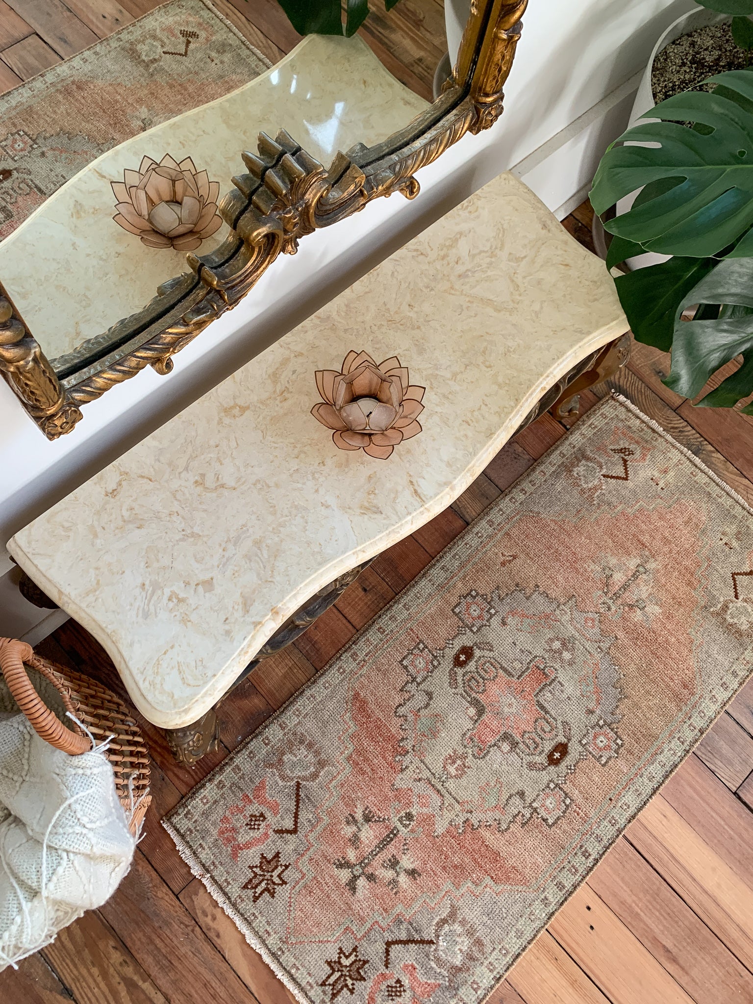 All rugs have been thoroughly cleaned; age-related wear and patina are considered normal in these unique, handwoven vintage rugs. All pieces have been photographed with moderate natural light. In some cases, photos are edited to depict the truest to life colors. Colors may vary depending on your phone or screen settings. Some items may not be perfectly straight or rectangle. We consider these characteristics part of what makes them truly one-of-a-kind.