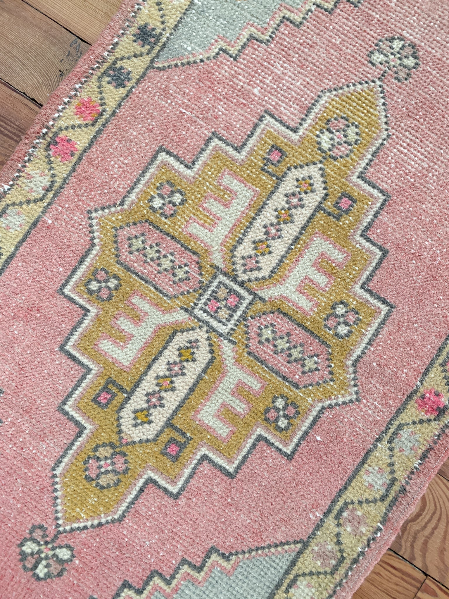 All rugs have been thoroughly cleaned; age-related wear and patina are considered normal in these unique, handwoven vintage rugs. All pieces have been photographed with moderate natural light. In some cases, photos are edited to depict the truest to life colors. Colors may vary depending on your phone or screen settings. Some items may not be perfectly straight or rectangle. We consider these characteristics part of what makes them truly one-of-a-kind.