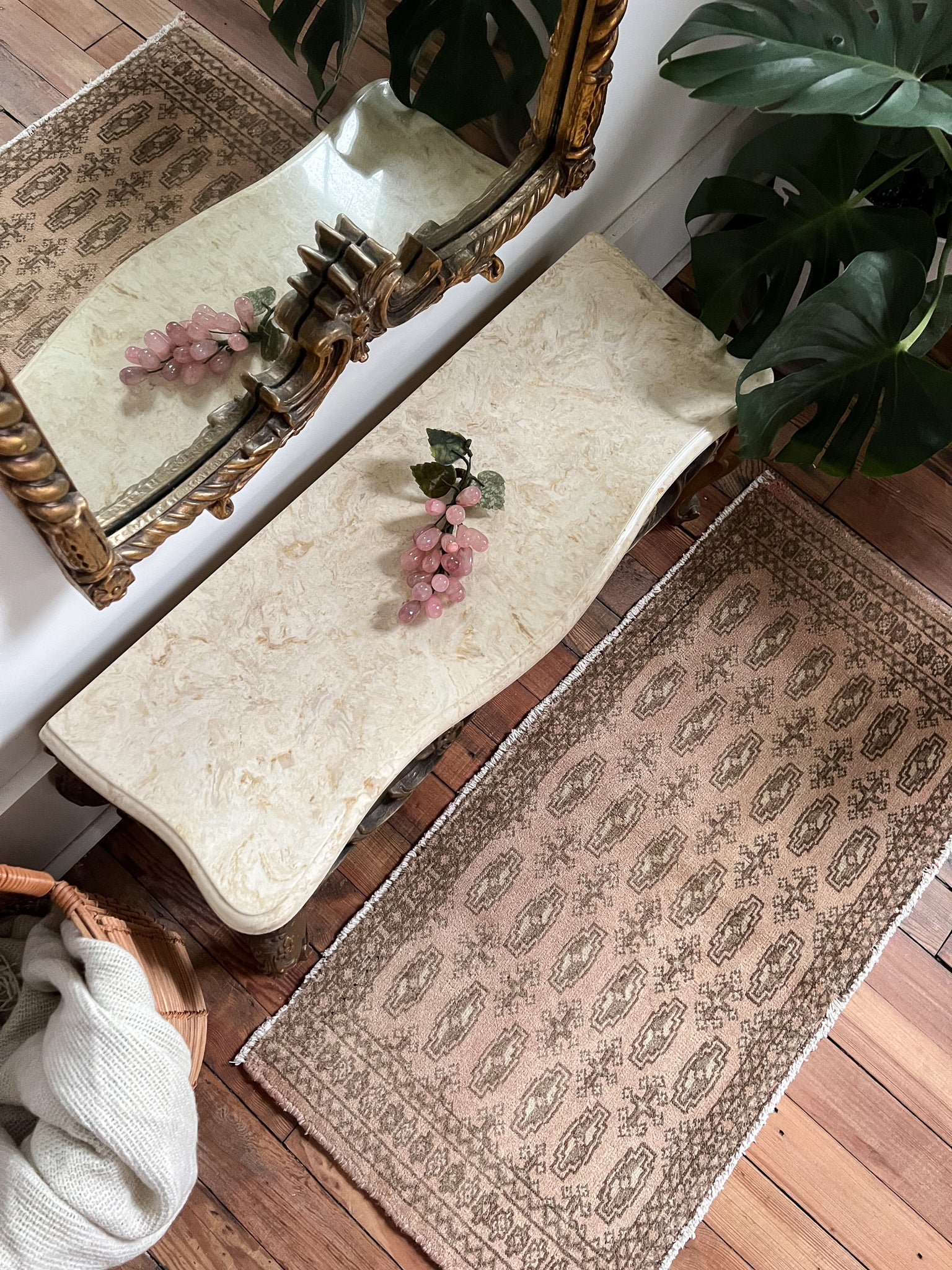 All rugs have been thoroughly cleaned; age-related wear and patina are considered normal in these unique, handwoven vintage rugs. All pieces have been photographed with moderate natural light. In some cases, photos are edited to depict the truest to life colors. Colors may vary depending on your phone or screen settings. Some items may not be perfectly straight or rectangle. We consider these characteristics part of what makes them truly one-of-a-kind.