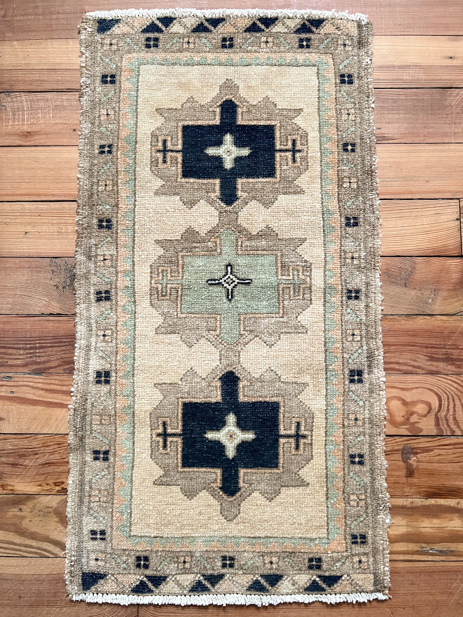 All rugs have been thoroughly cleaned; age-related wear and patina are considered normal in these unique, handwoven vintage rugs. All pieces have been photographed with moderate natural light. In some cases, photos are edited to depict the truest to life colors. Colors may vary depending on your phone or screen settings. Some items may not be perfectly straight or rectangle. We consider these characteristics part of what makes them truly one-of-a-kind.