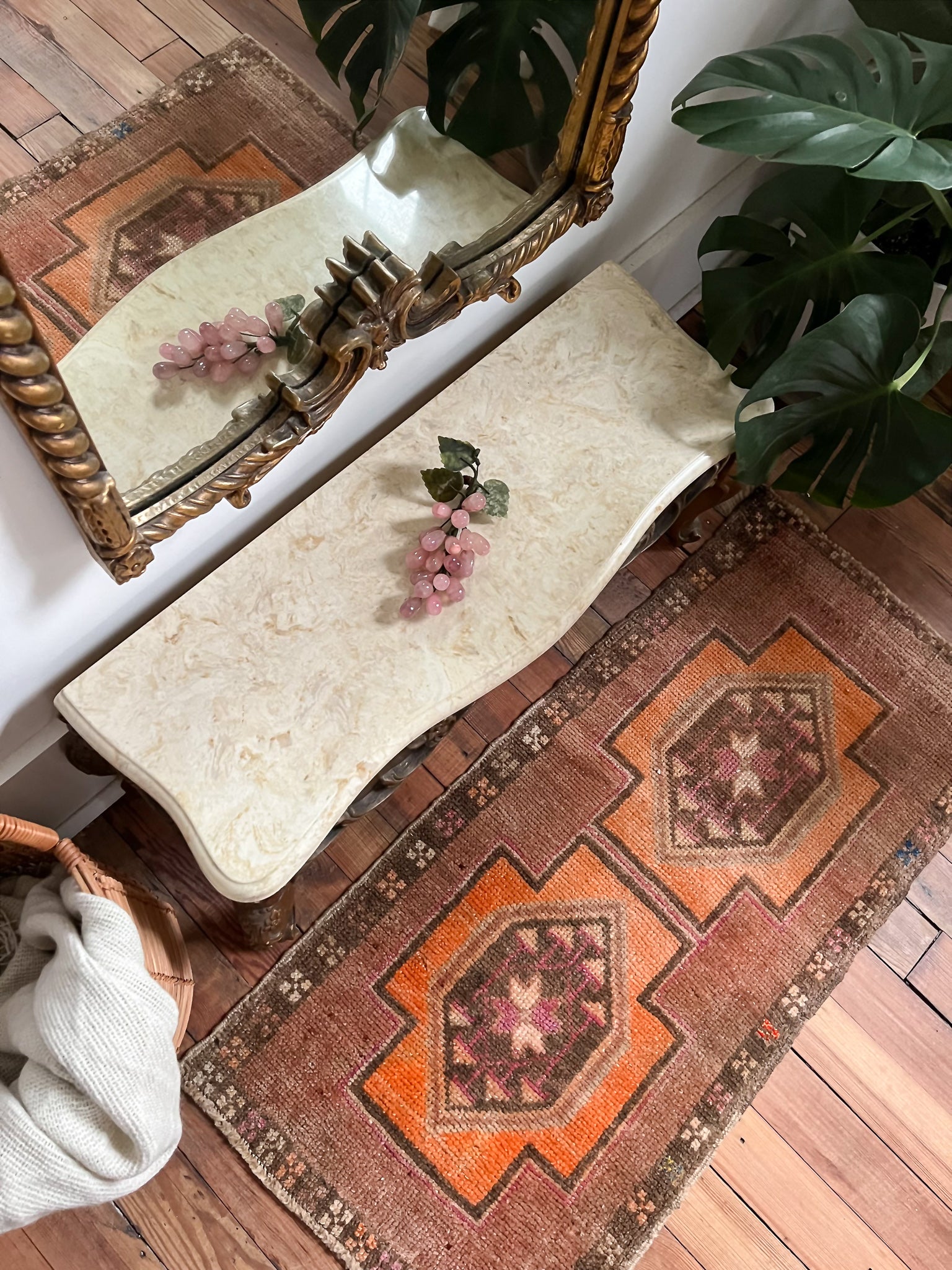 All rugs have been thoroughly cleaned; age-related wear and patina are considered normal in these unique, handwoven vintage rugs. All pieces have been photographed with moderate natural light. In some cases, photos are edited to depict the truest to life colors. Colors may vary depending on your phone or screen settings. Some items may not be perfectly straight or rectangle. We consider these characteristics part of what makes them truly one-of-a-kind.