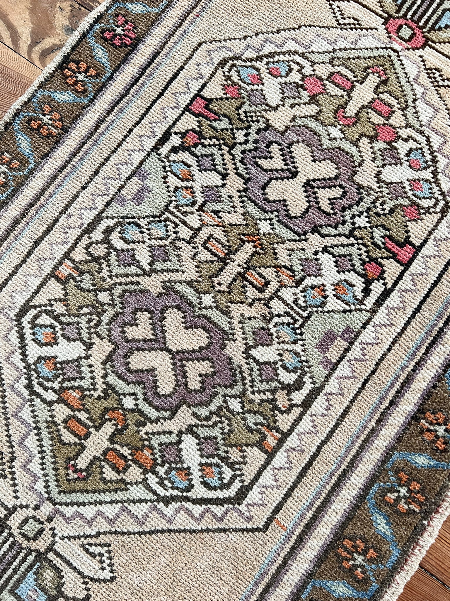All rugs have been thoroughly cleaned; age-related wear and patina are considered normal in these unique, handwoven vintage rugs. All pieces have been photographed with moderate natural light. In some cases, photos are edited to depict the truest to life colors. Colors may vary depending on your phone or screen settings. Some items may not be perfectly straight or rectangle. We consider these characteristics part of what makes them truly one-of-a-kind.