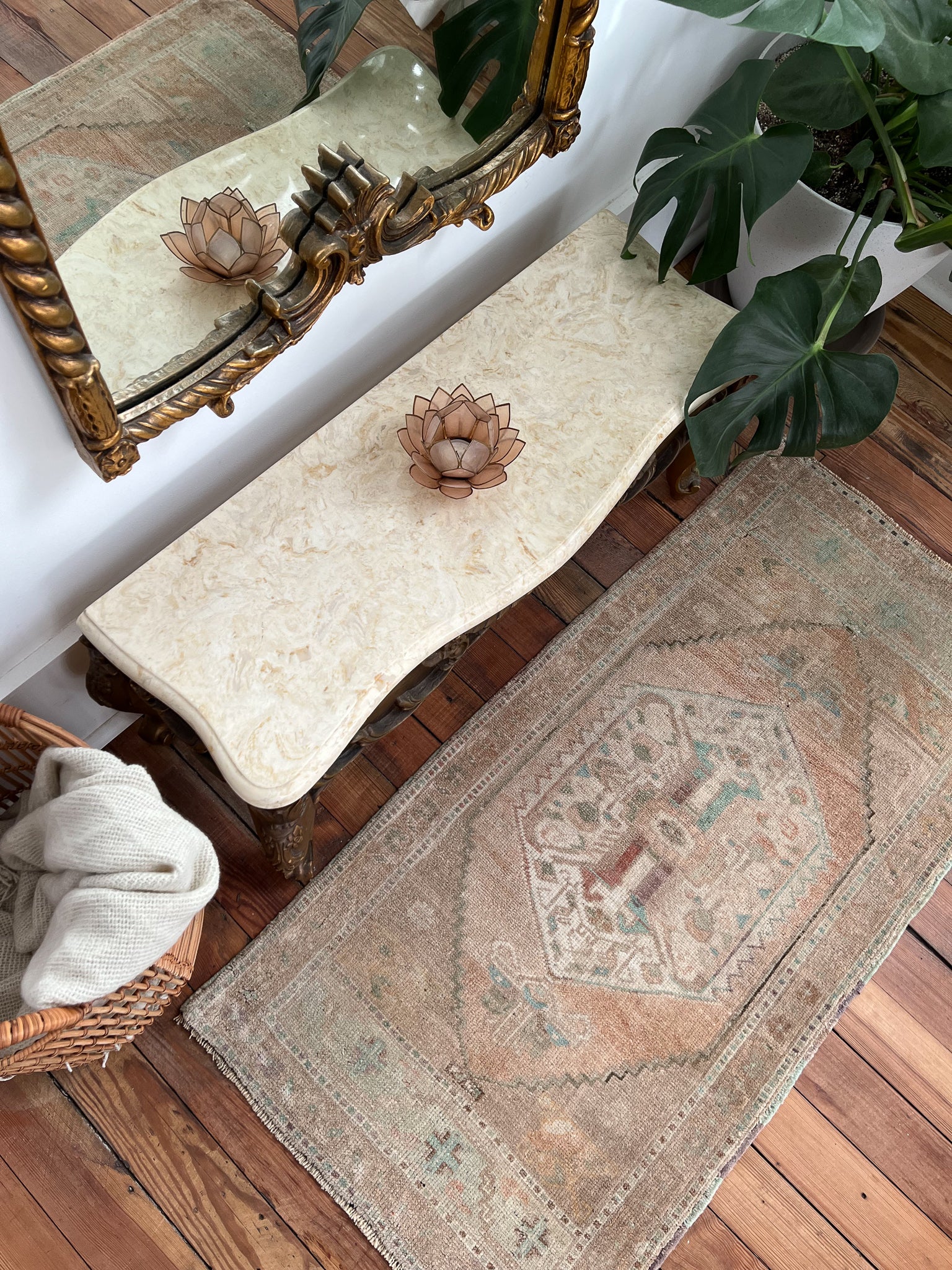 All rugs have been thoroughly cleaned; age-related wear and patina are considered normal in these unique, handwoven vintage rugs. All pieces have been photographed with moderate natural light. In some cases, photos are edited to depict the truest to life colors. Colors may vary depending on your phone or screen settings. Some items may not be perfectly straight or rectangle. We consider these characteristics part of what makes them truly one-of-a-kind.