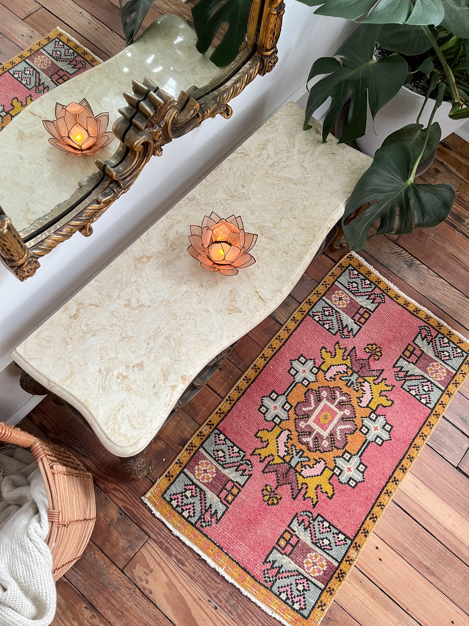 All rugs have been thoroughly cleaned; age-related wear and patina are considered normal in these unique, handwoven vintage rugs. All pieces have been photographed with moderate natural light. In some cases, photos are edited to depict the truest to life colors. Colors may vary depending on your phone or screen settings. Some items may not be perfectly straight or rectangle. We consider these characteristics part of what makes them truly one-of-a-kind.