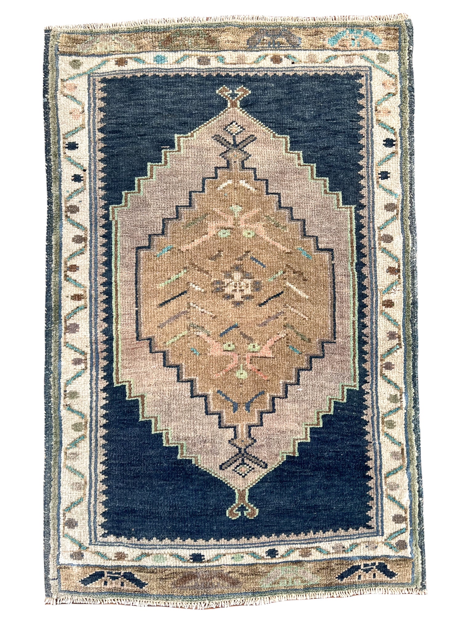 All rugs have been thoroughly cleaned; age-related wear and patina are considered normal in these unique, handwoven vintage rugs. All pieces have been photographed with moderate natural light. In some cases, photos are edited to depict the truest to life colors. Colors may vary depending on your phone or screen settings. Some items may not be perfectly straight or rectangle. We consider these characteristics part of what makes them truly one-of-a-kind.