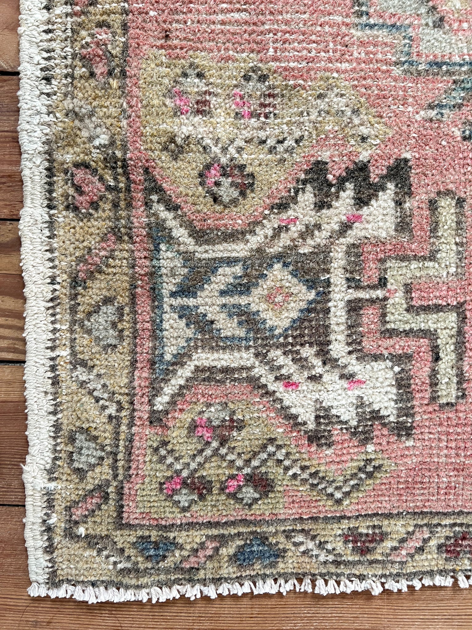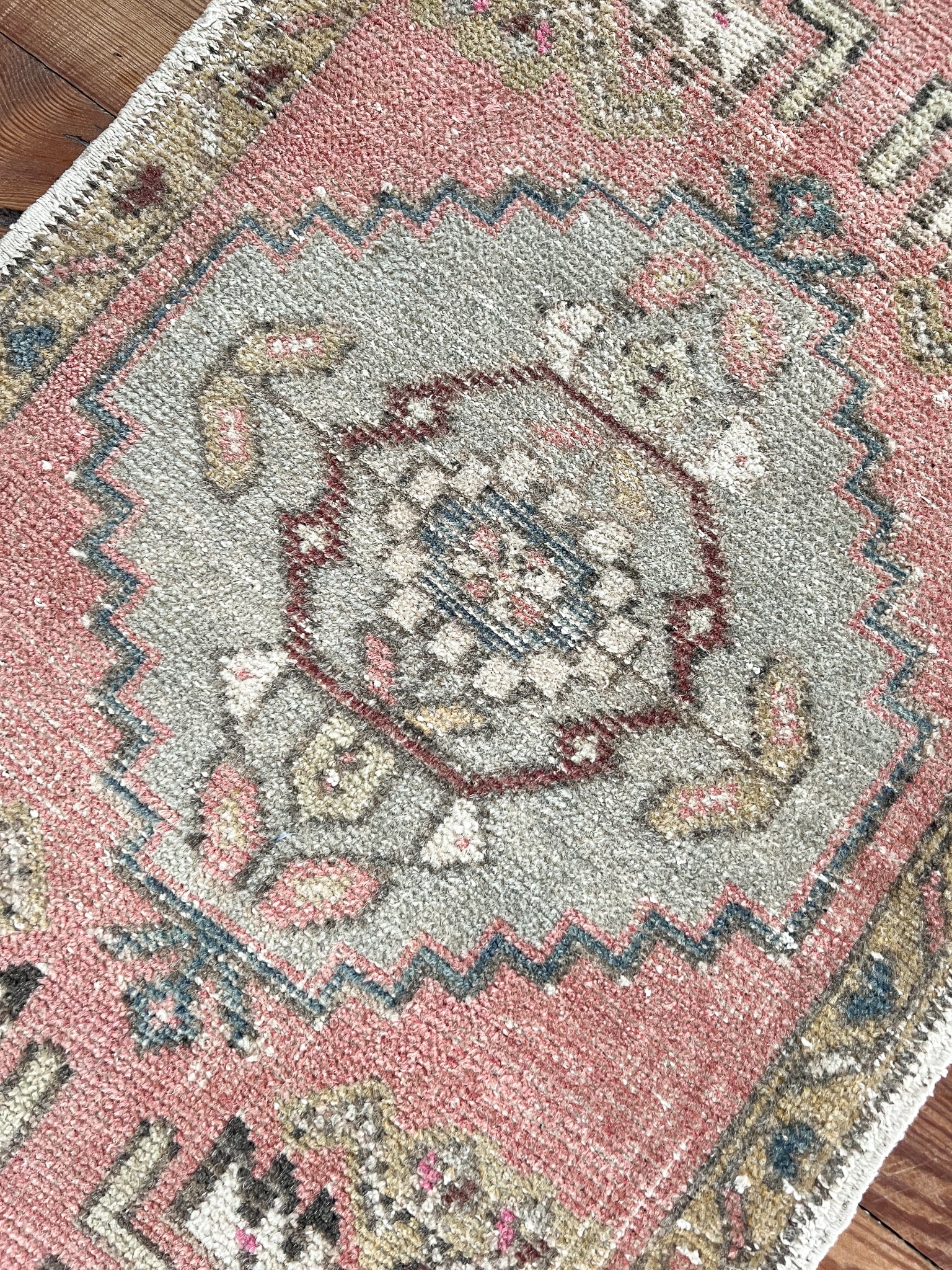 All rugs have been thoroughly cleaned; age-related wear and patina are considered normal in these unique, handwoven vintage rugs. All pieces have been photographed with moderate natural light. In some cases, photos are edited to depict the truest to life colors. Colors may vary depending on your phone or screen settings. Some items may not be perfectly straight or rectangle. We consider these characteristics part of what makes them truly one-of-a-kind.
