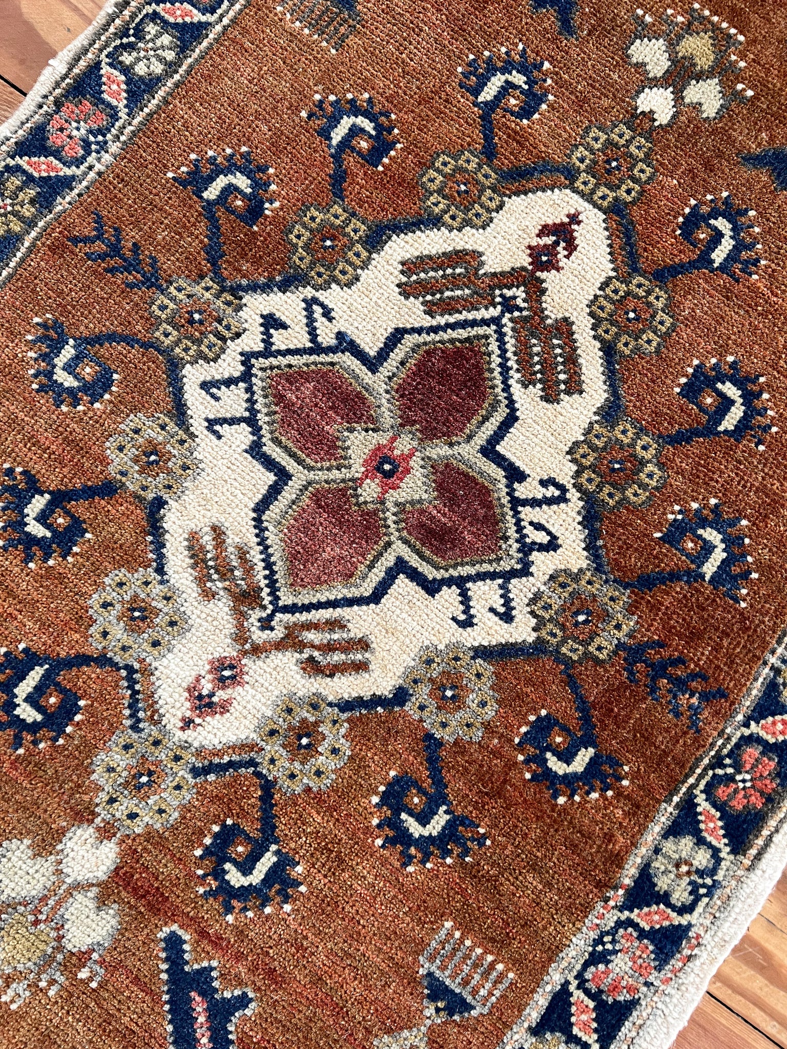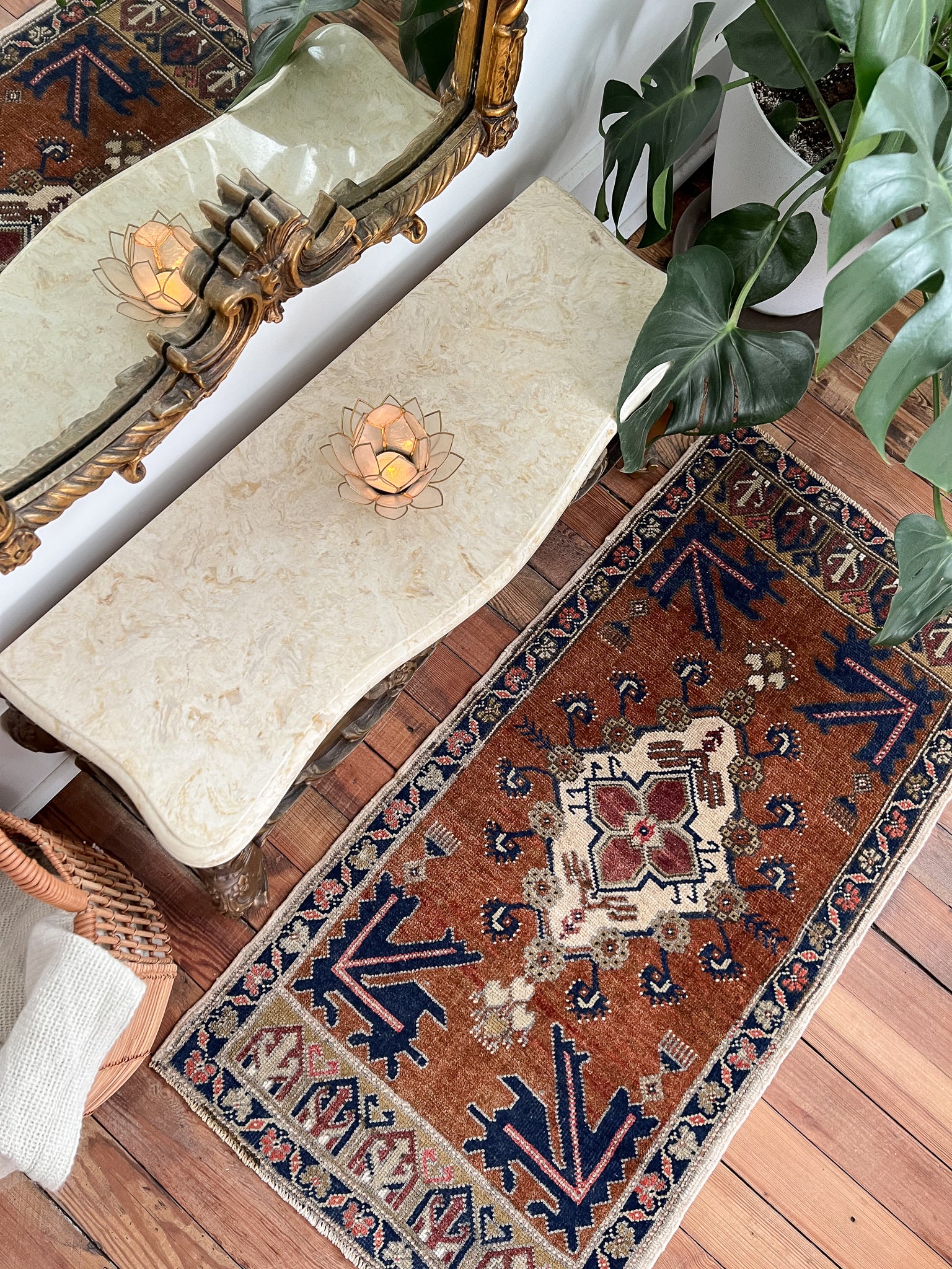 All rugs have been thoroughly cleaned; age-related wear and patina are considered normal in these unique, handwoven vintage rugs. All pieces have been photographed with moderate natural light. In some cases, photos are edited to depict the truest to life colors. Colors may vary depending on your phone or screen settings. Some items may not be perfectly straight or rectangle. We consider these characteristics part of what makes them truly one-of-a-kind.