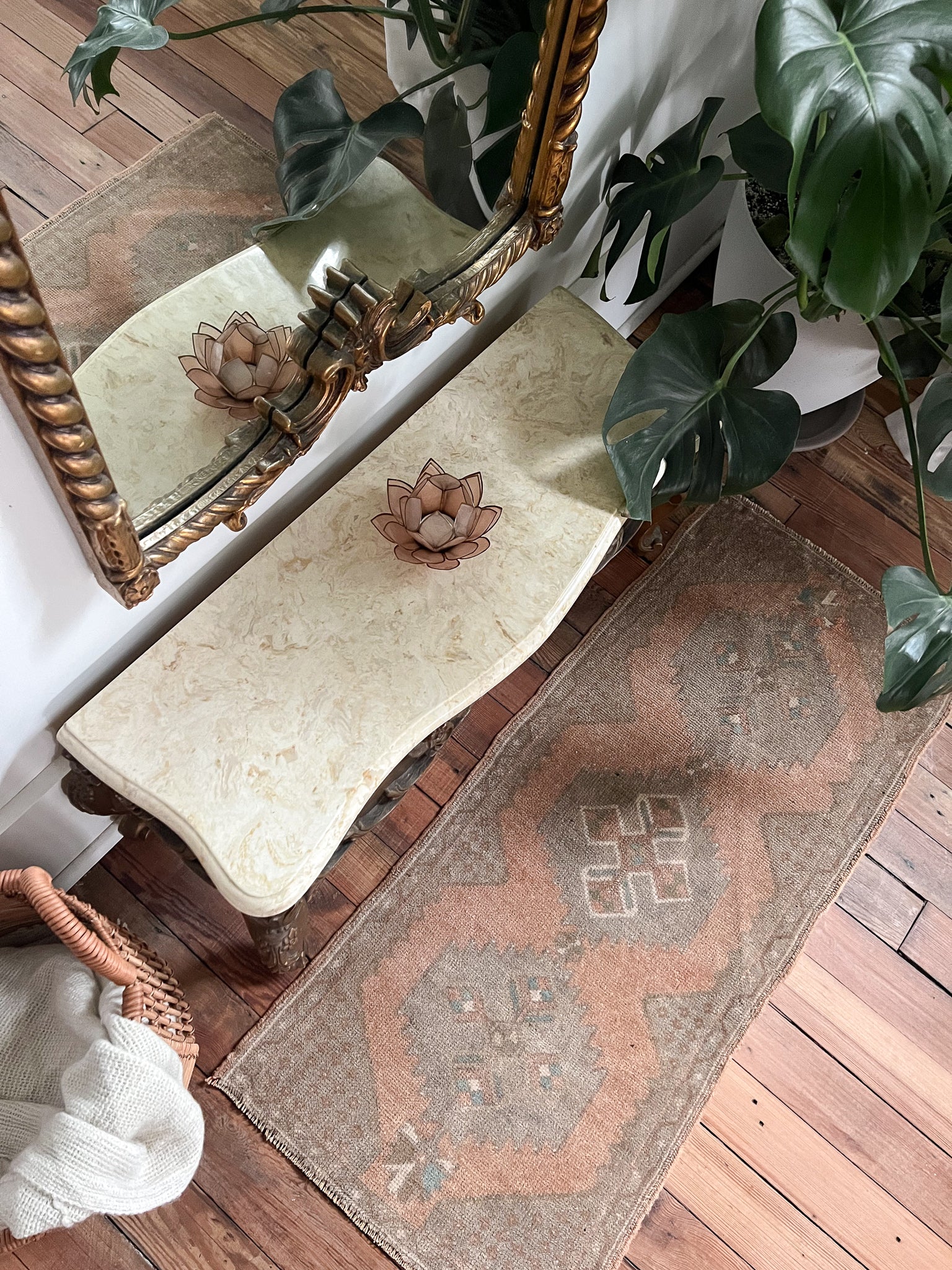 All rugs have been thoroughly cleaned; age-related wear and patina are considered normal in these unique, handwoven vintage rugs. All pieces have been photographed with moderate natural light. In some cases, photos are edited to depict the truest to life colors. Colors may vary depending on your phone or screen settings. Some items may not be perfectly straight or rectangle. We consider these characteristics part of what makes them truly one-of-a-kind.