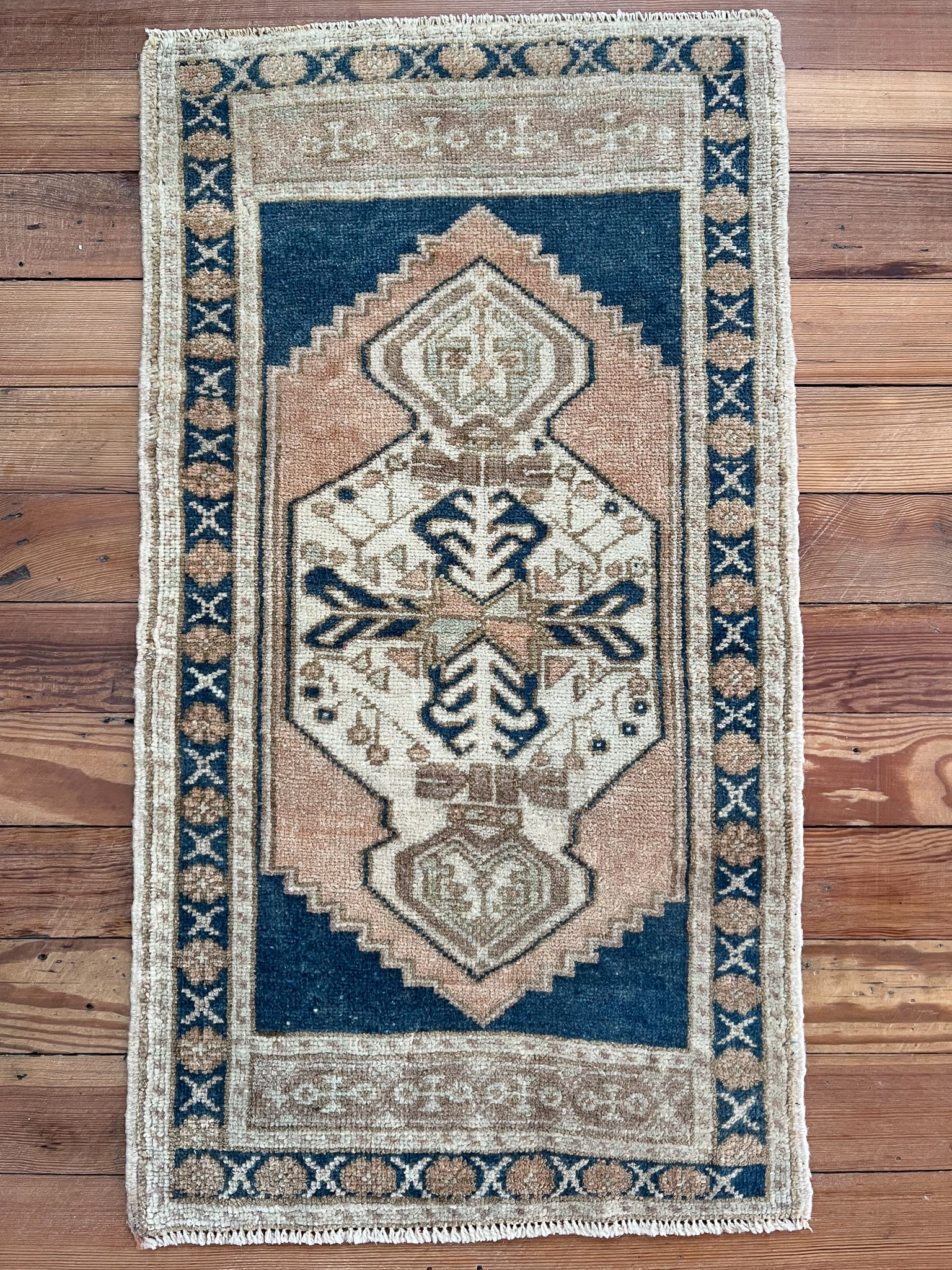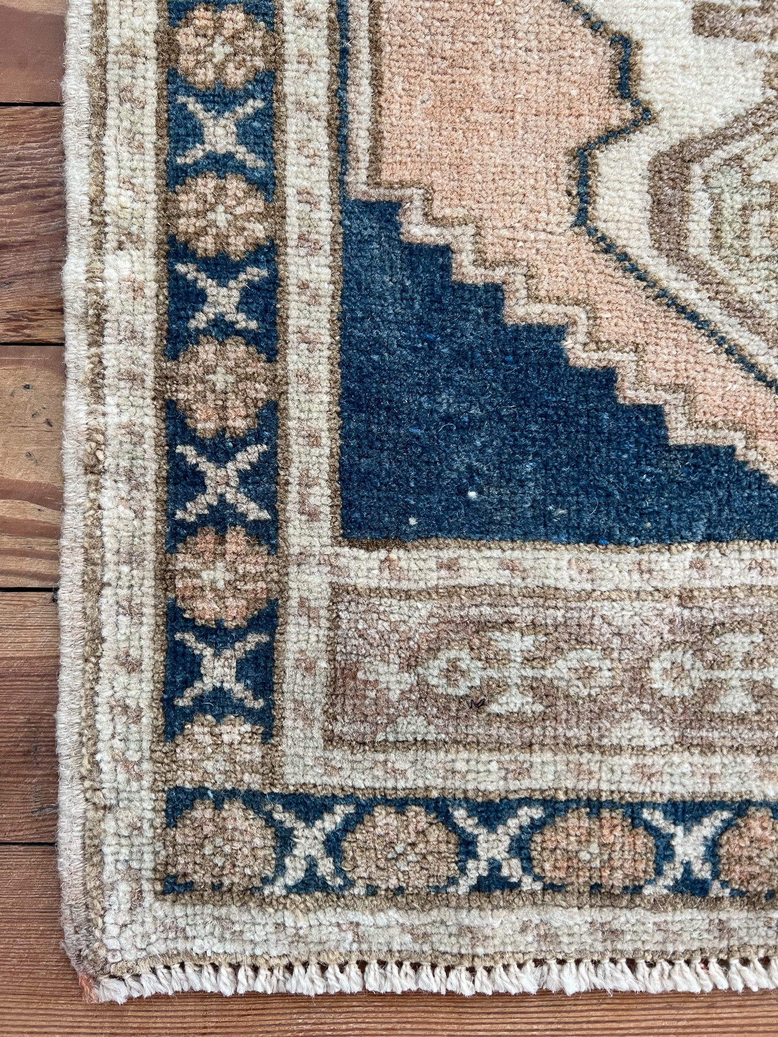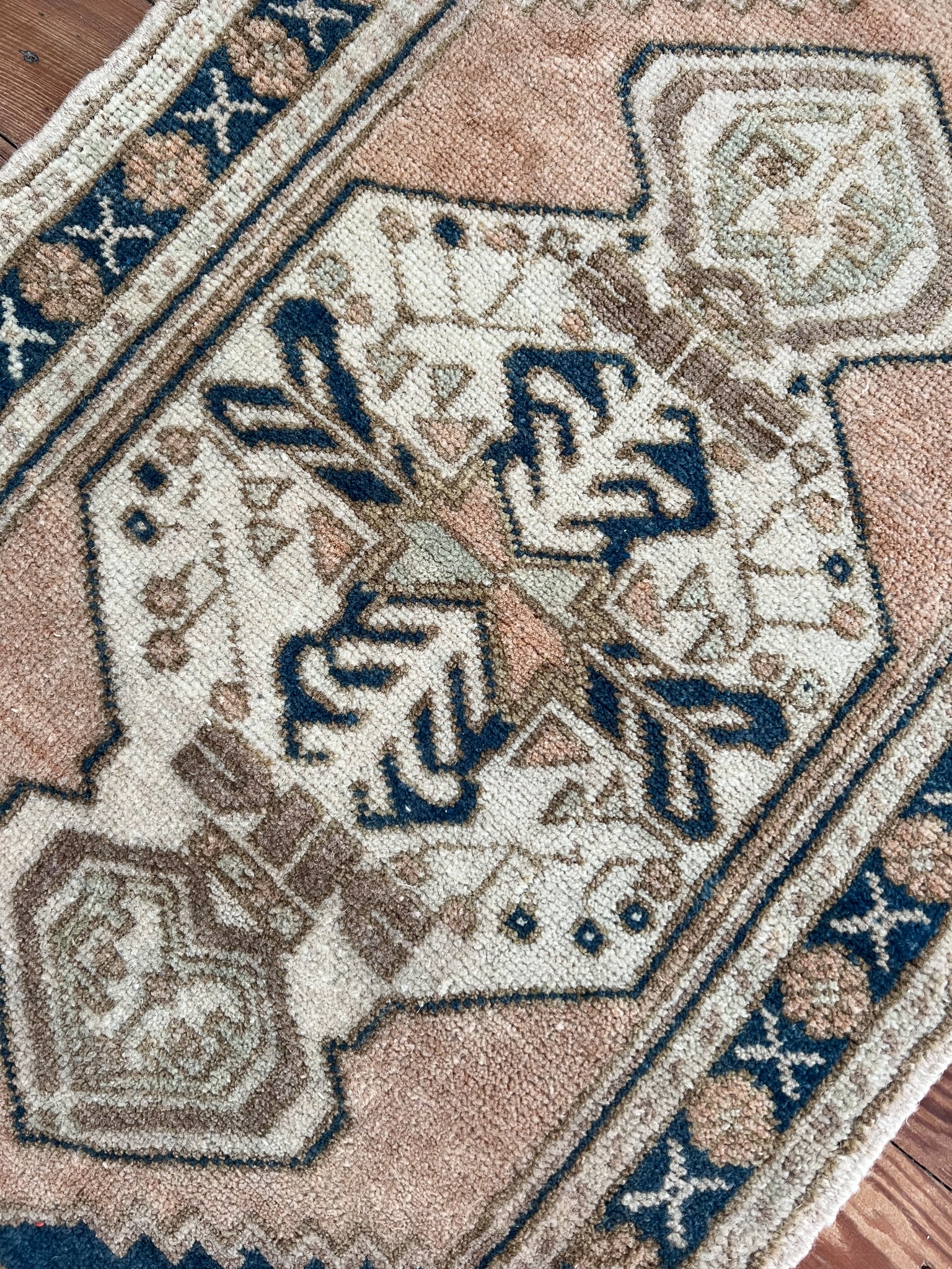 All rugs have been thoroughly cleaned; age-related wear and patina are considered normal in these unique, hand-woven vintage rugs.
