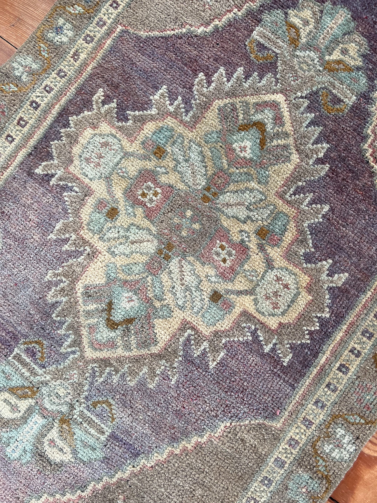 Each rug listed on our site is either a wool pile on a cotton foundation or a wool pile on a wool foundation. Quality, unrefined wool contains a substance called lanolin. Lanolin tends to have a natural smell, which many compare to the smell of sheep – or almost metallic-y, but sweet and grassy.