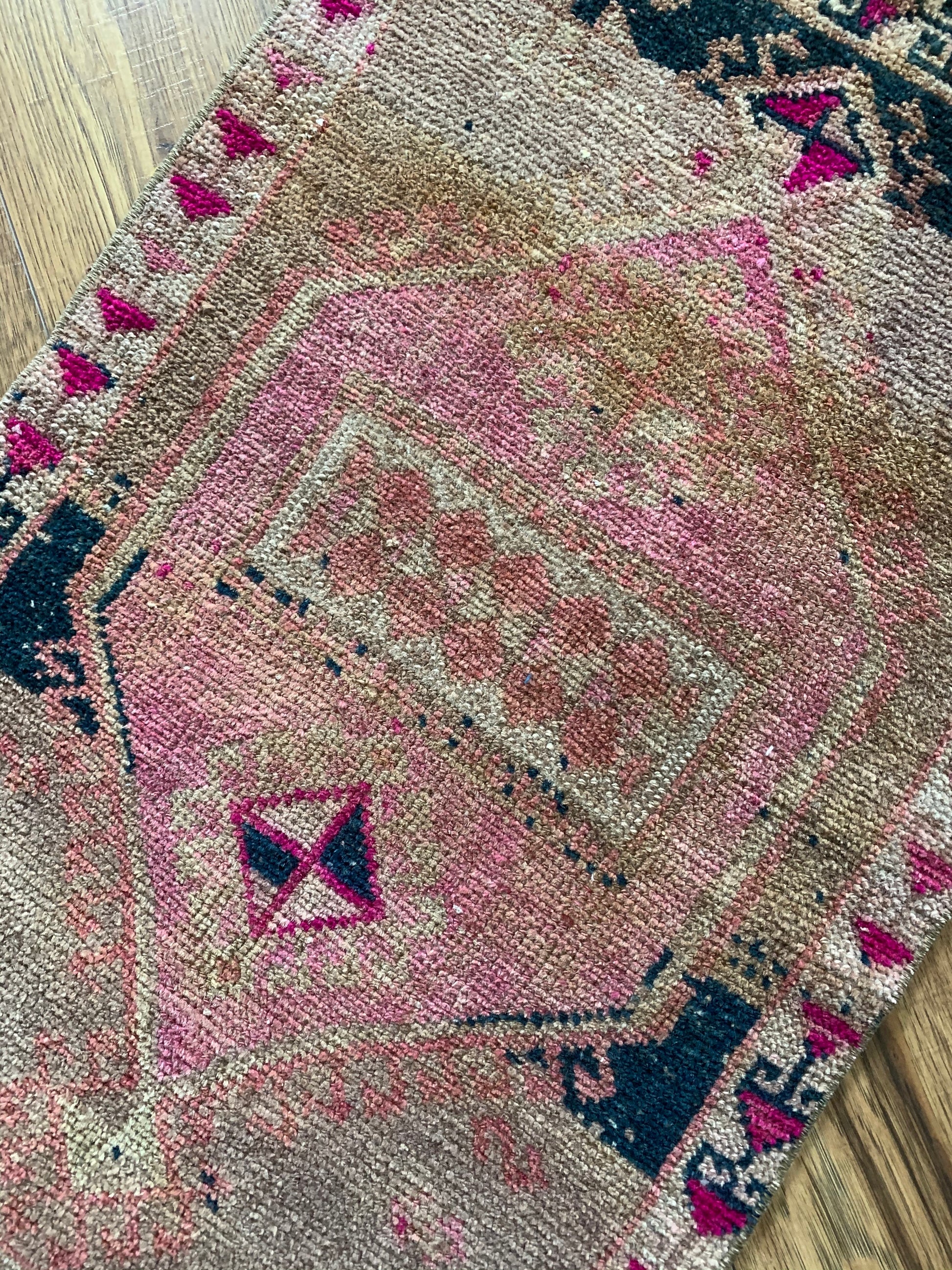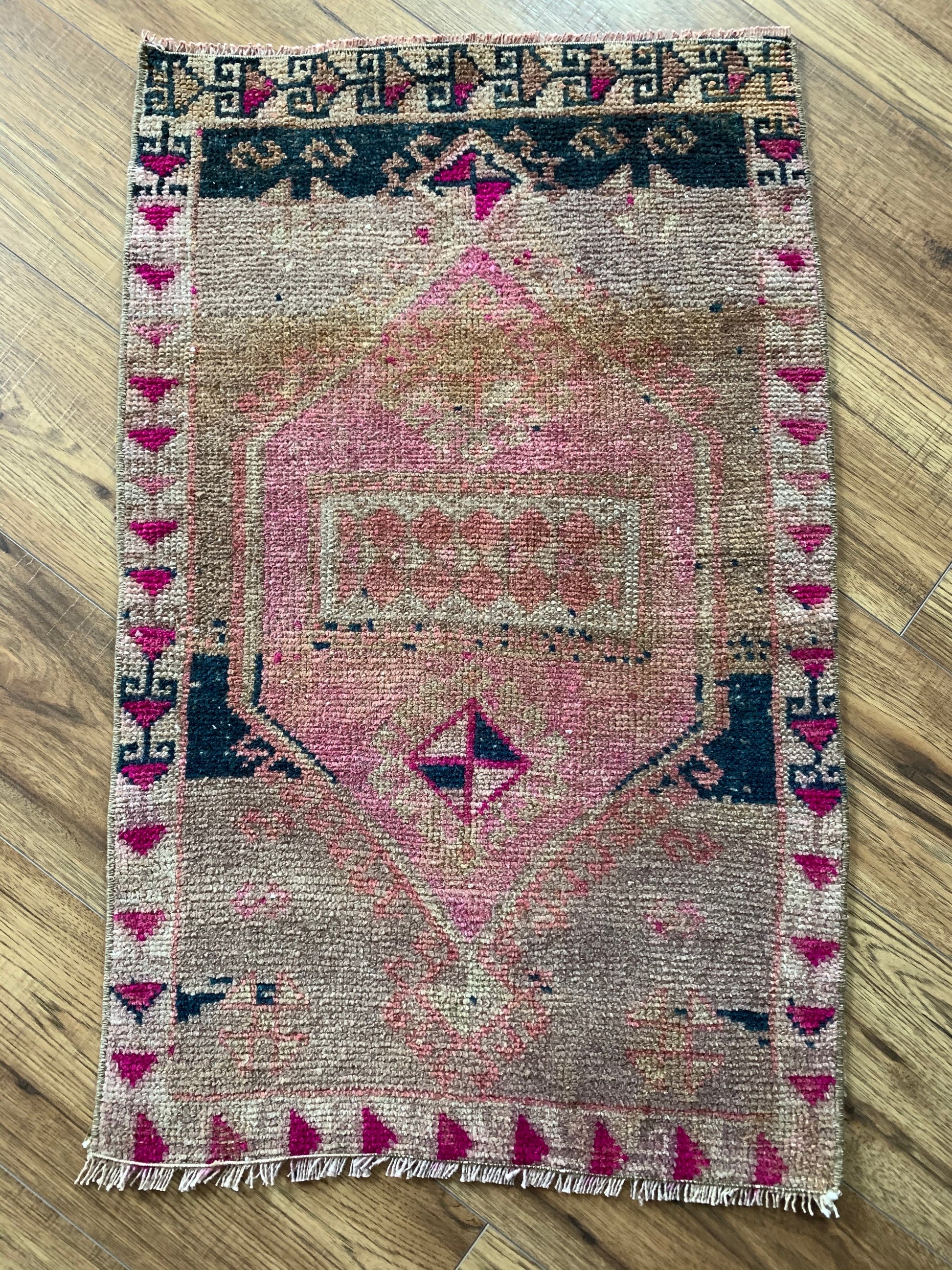 All rugs have been thoroughly cleaned; age-related wear and patina are considered normal in these unique, hand woven vintage rugs. All pieces have been photographed with moderate natural light. Colors may vary depending on your phone or screen settings. Some items may not be perfectly straight or rectangle. We consider these characteristics part of what makes them truly one-of-a-kind.