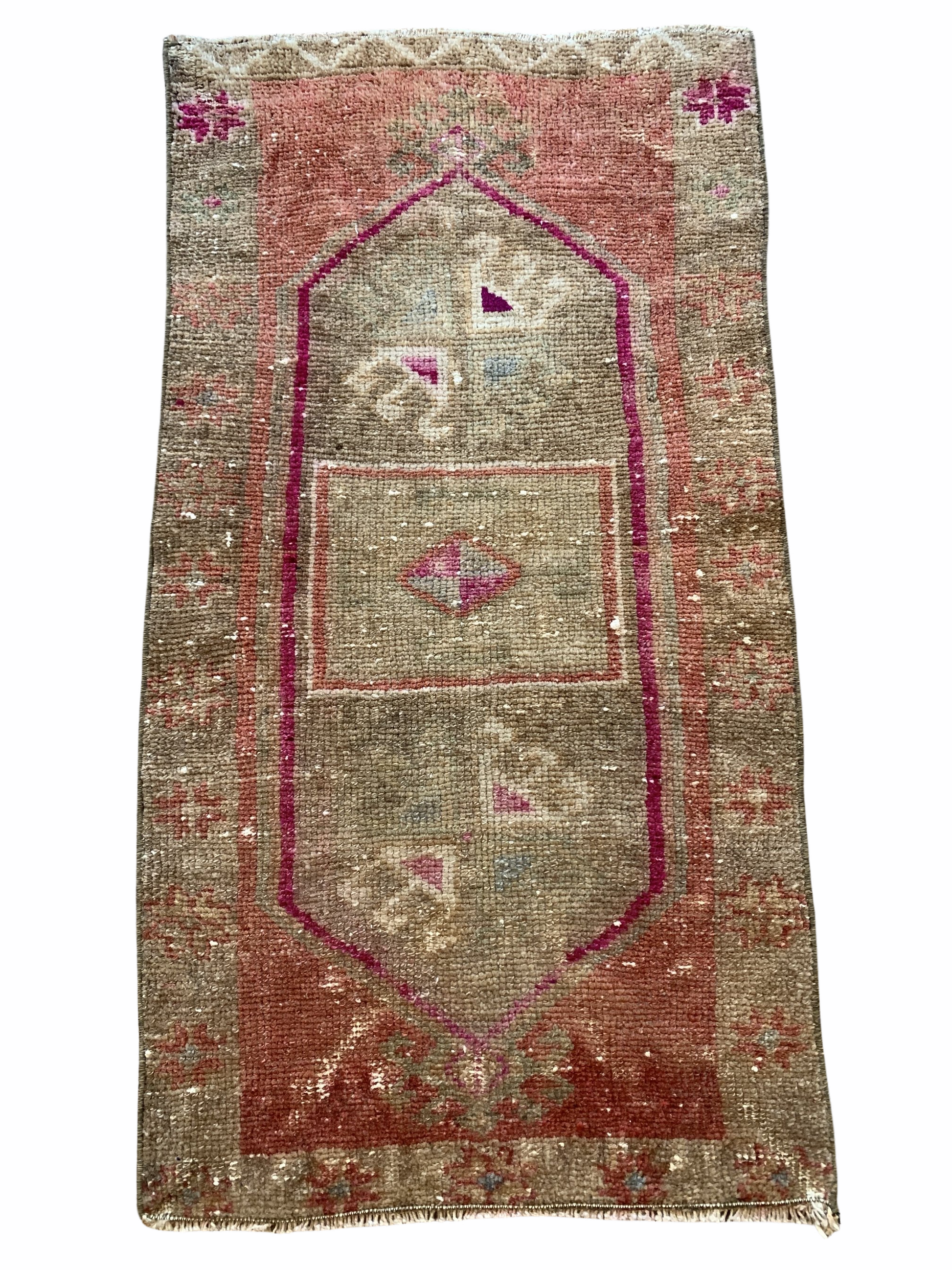 All rugs have been thoroughly cleaned; age-related wear and patina are considered normal in these unique, hand woven vintage rugs. All pieces have been photographed with moderate natural light. Colors may vary depending on your phone or screen settings. Some items may not be perfectly straight or rectangle. We consider these characteristics part of what makes them truly one-of-a-kind.