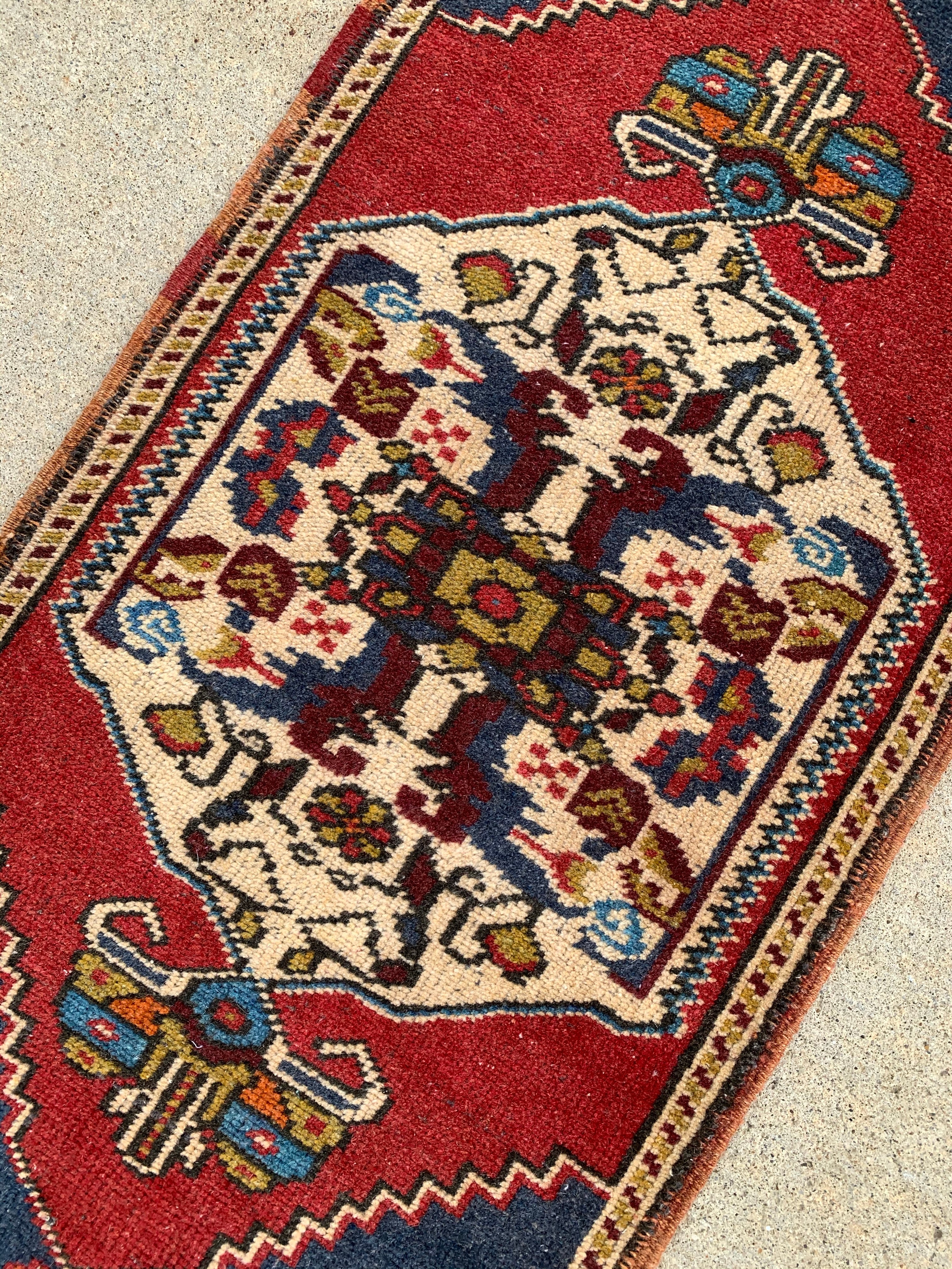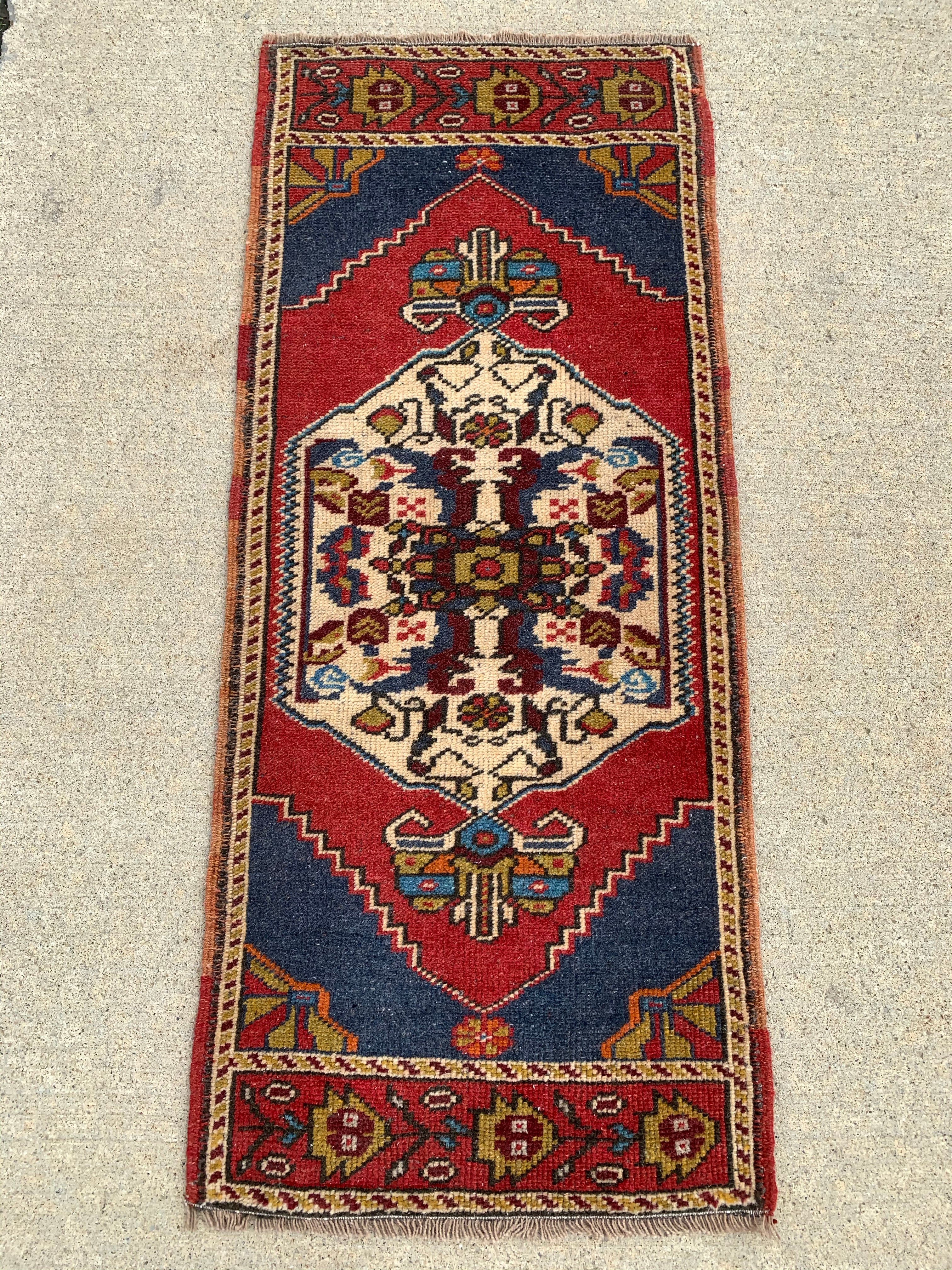 All rugs have been thoroughly cleaned; age-related wear and patina are considered normal in these unique, hand woven vintage rugs. All pieces have been photographed with moderate natural light. Colors may vary depending on your phone or screen settings. Some items may not be perfectly straight or rectangle. We consider these characteristics part of what makes them truly one-of-a-kind.