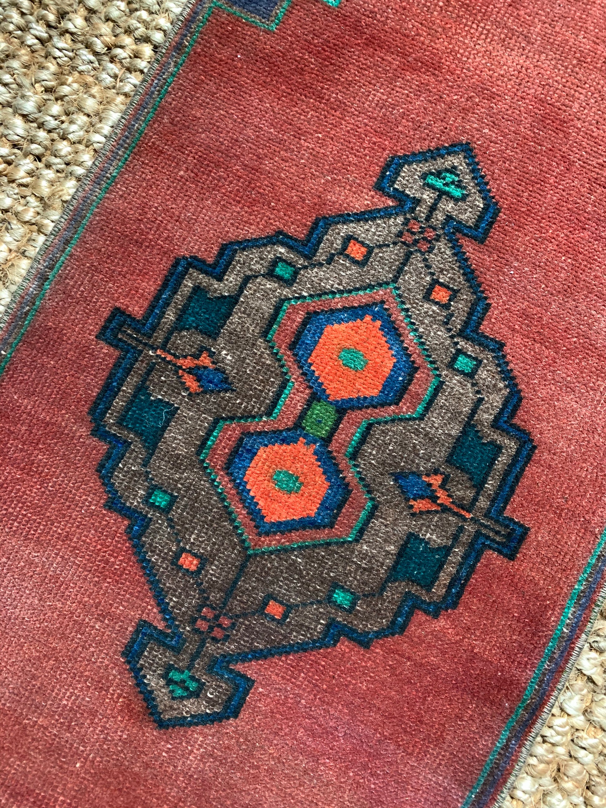 All rugs have been thoroughly cleaned; age-related wear and patina are considered normal in these unique, hand woven vintage rugs. All pieces have been photographed with moderate natural light. Colors may vary depending on your phone or screen settings. Some items may not be perfectly straight or rectangle. We consider these characteristics part of what makes them truly one-of-a-kind.