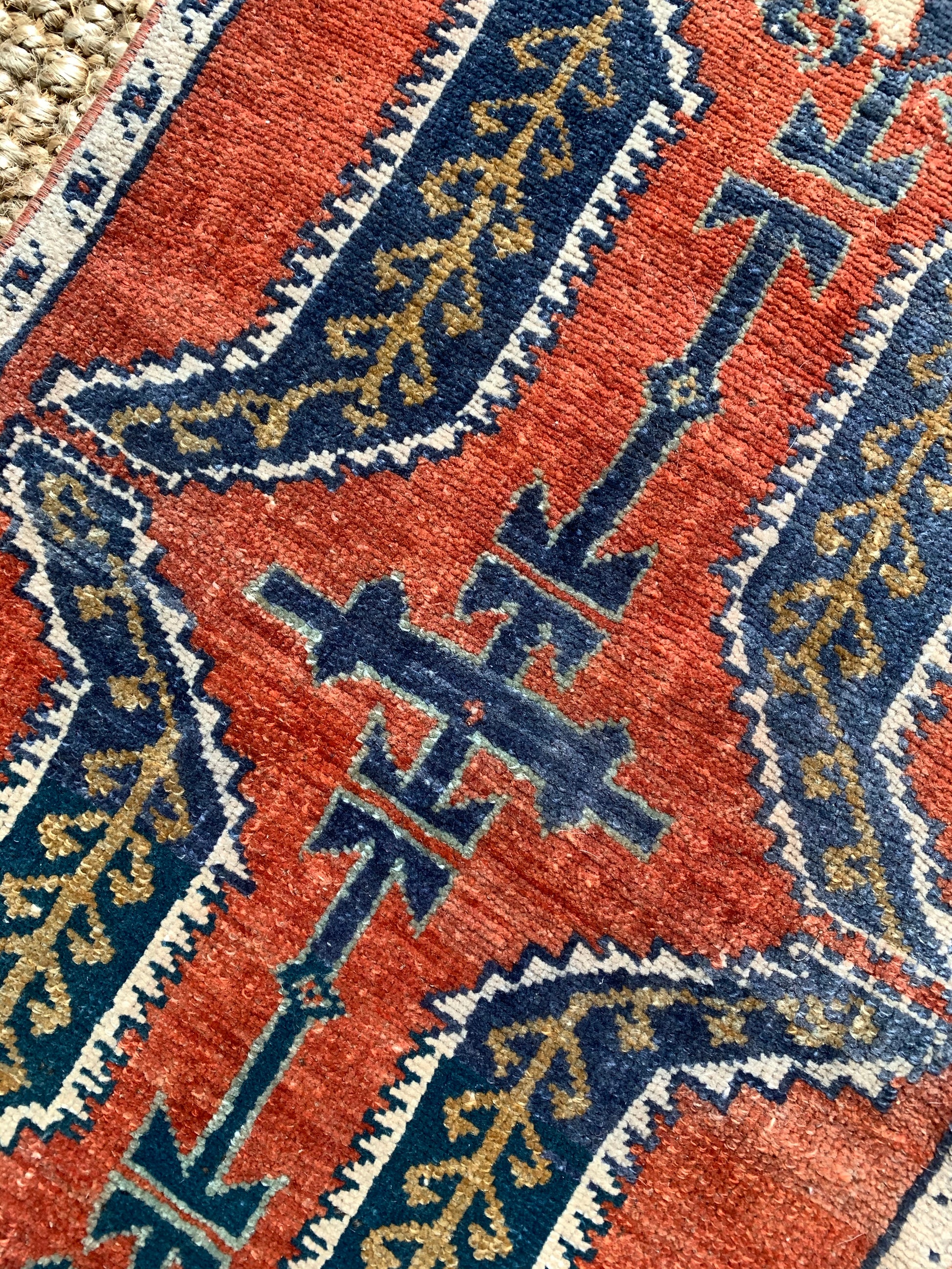 All rugs have been thoroughly cleaned; age-related wear and patina are considered normal in these unique, hand woven vintage rugs. All pieces have been photographed with moderate natural light. Colors may vary depending on your phone or screen settings. Some items may not be perfectly straight or rectangle. We consider these characteristics part of what makes them truly one-of-a-kind.