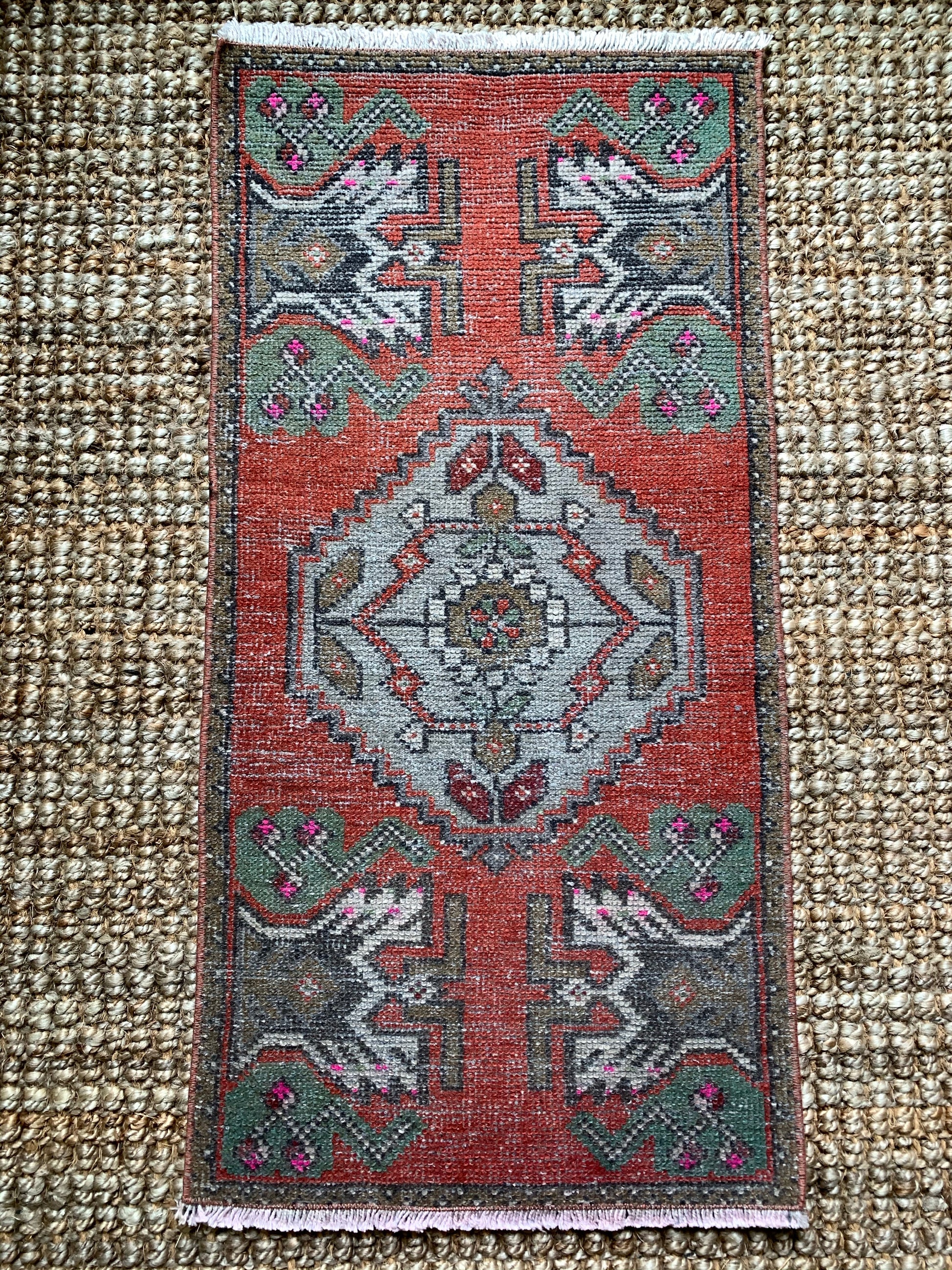 All rugs have been thoroughly cleaned; age-related wear and patina are considered normal in these unique, hand woven vintage rugs. All pieces have been photographed with moderate natural light. Colors may vary depending on your phone or screen settings. Some items may not be perfectly straight or rectangle. We consider these characteristics part of what makes them truly one-of-a-kind.