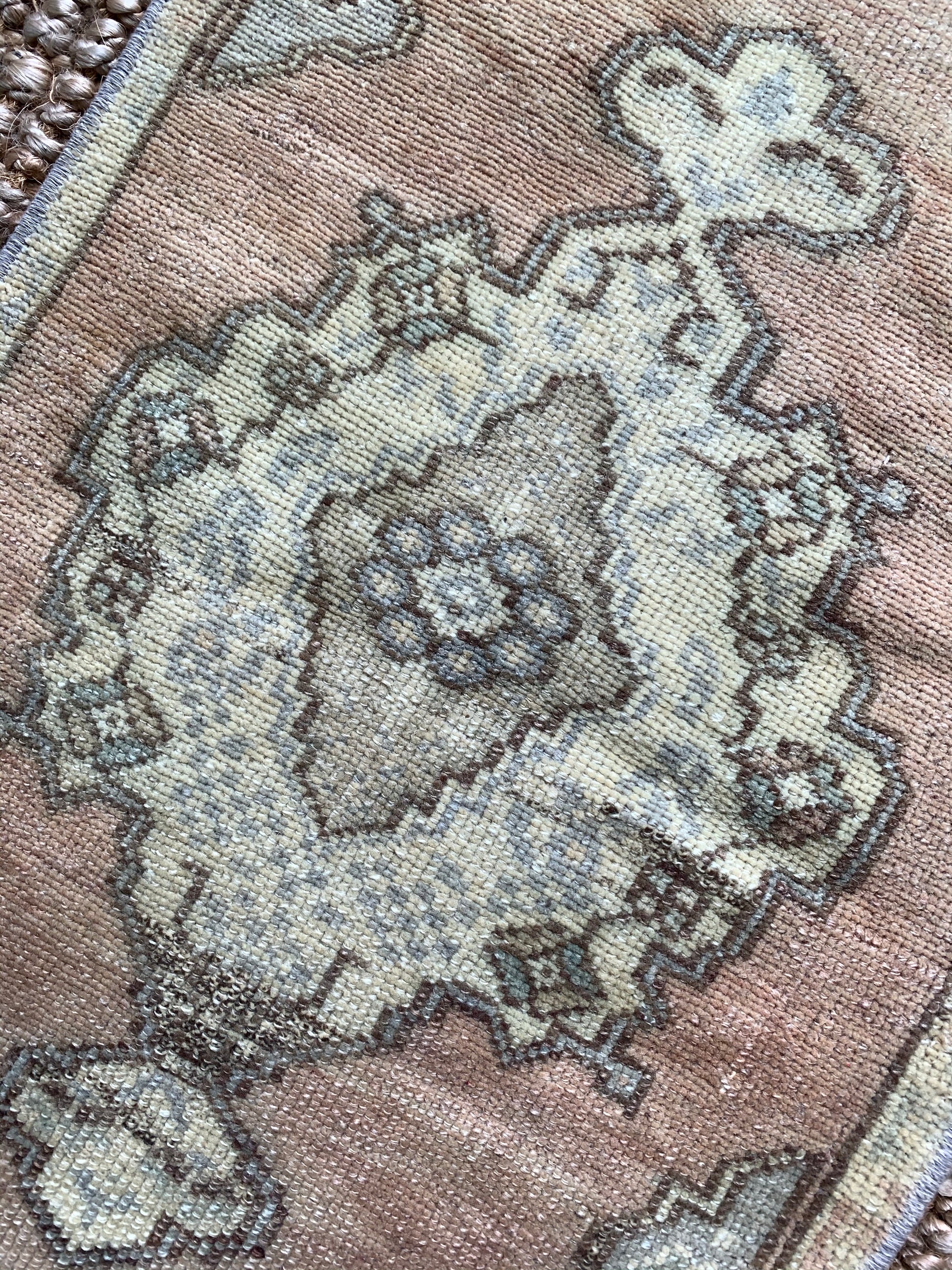 All rugs have been thoroughly cleaned; age-related wear and patina are considered normal in these unique, hand woven vintage rugs. All pieces have been photographed with moderate natural light. Colors may vary depending on your phone or screen settings. Some items may not be perfectly straight or rectangle. We consider these characteristics part of what makes them truly one-of-a-kind.