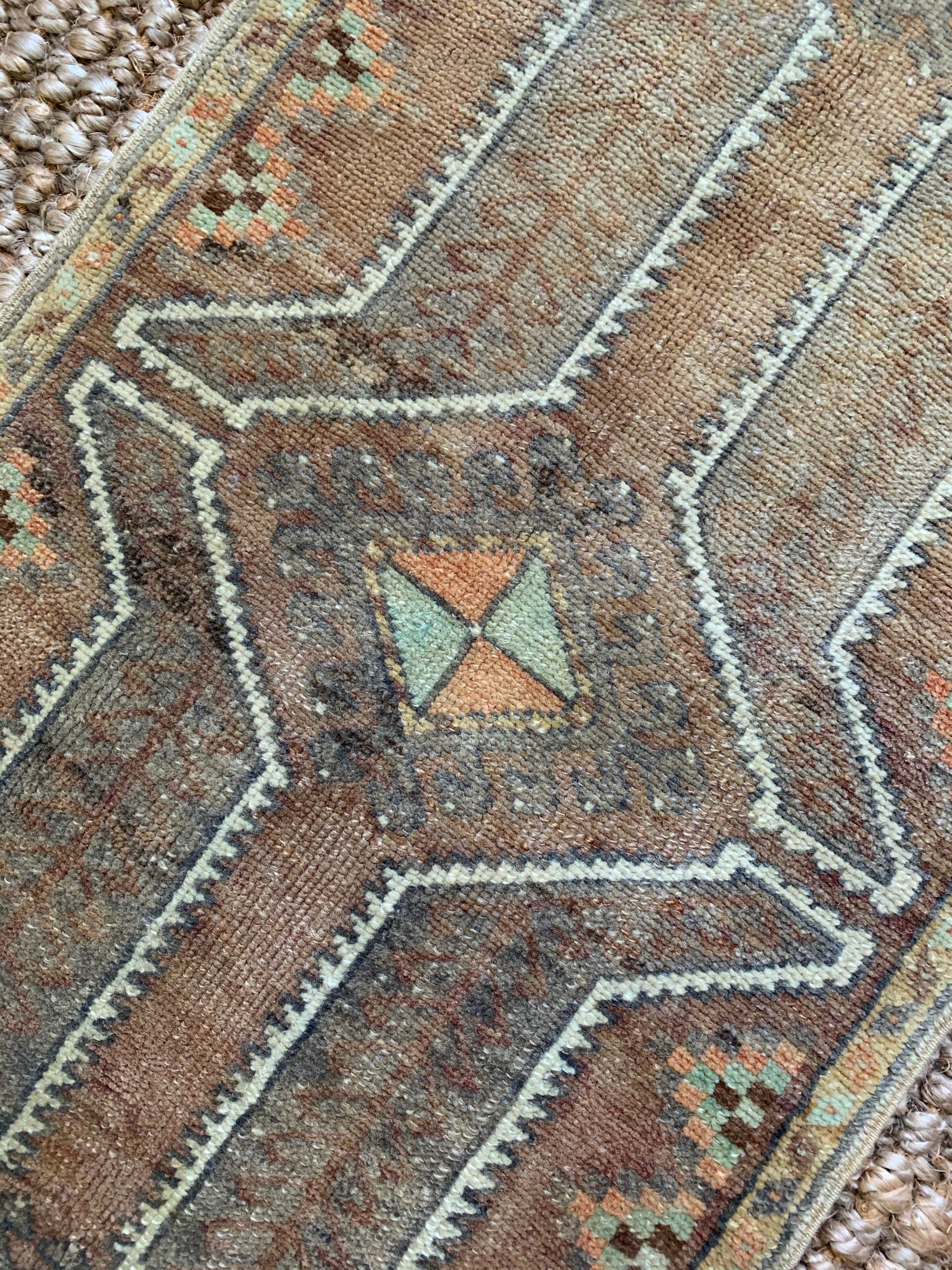 All rugs have been thoroughly cleaned; age-related wear and patina are considered normal in these unique, hand woven vintage rugs. All pieces have been photographed with moderate natural light. Colors may vary depending on your phone or screen settings. Some items may not be perfectly straight or rectangle. We consider these characteristics part of what makes them truly one-of-a-kind.