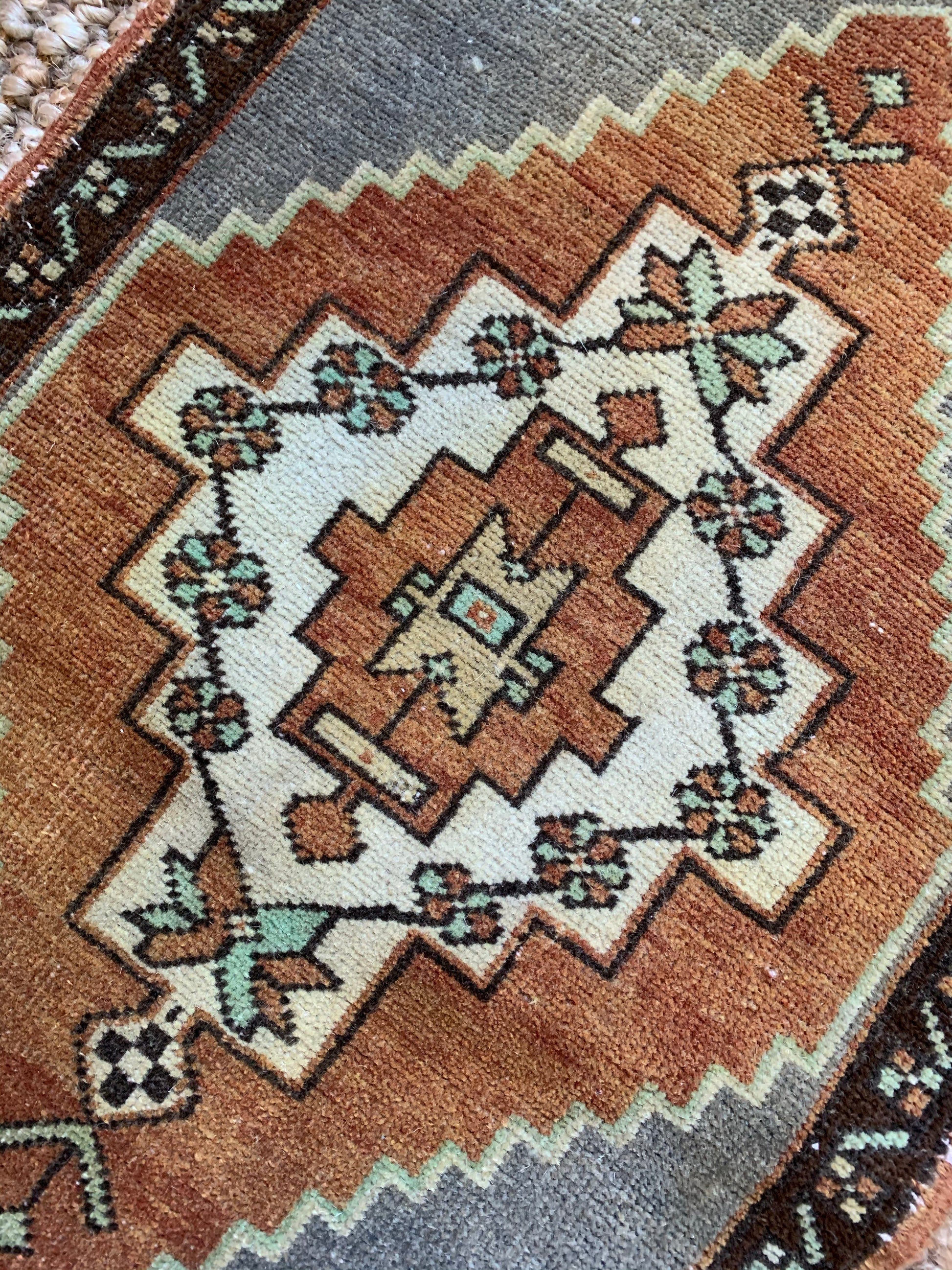 All rugs have been thoroughly cleaned; age-related wear and patina are considered normal in these unique, hand woven vintage rugs. All pieces have been photographed with moderate natural light. Colors may vary depending on your phone or screen settings. Some items may not be perfectly straight or rectangle. We consider these characteristics part of what makes them truly one-of-a-kind.