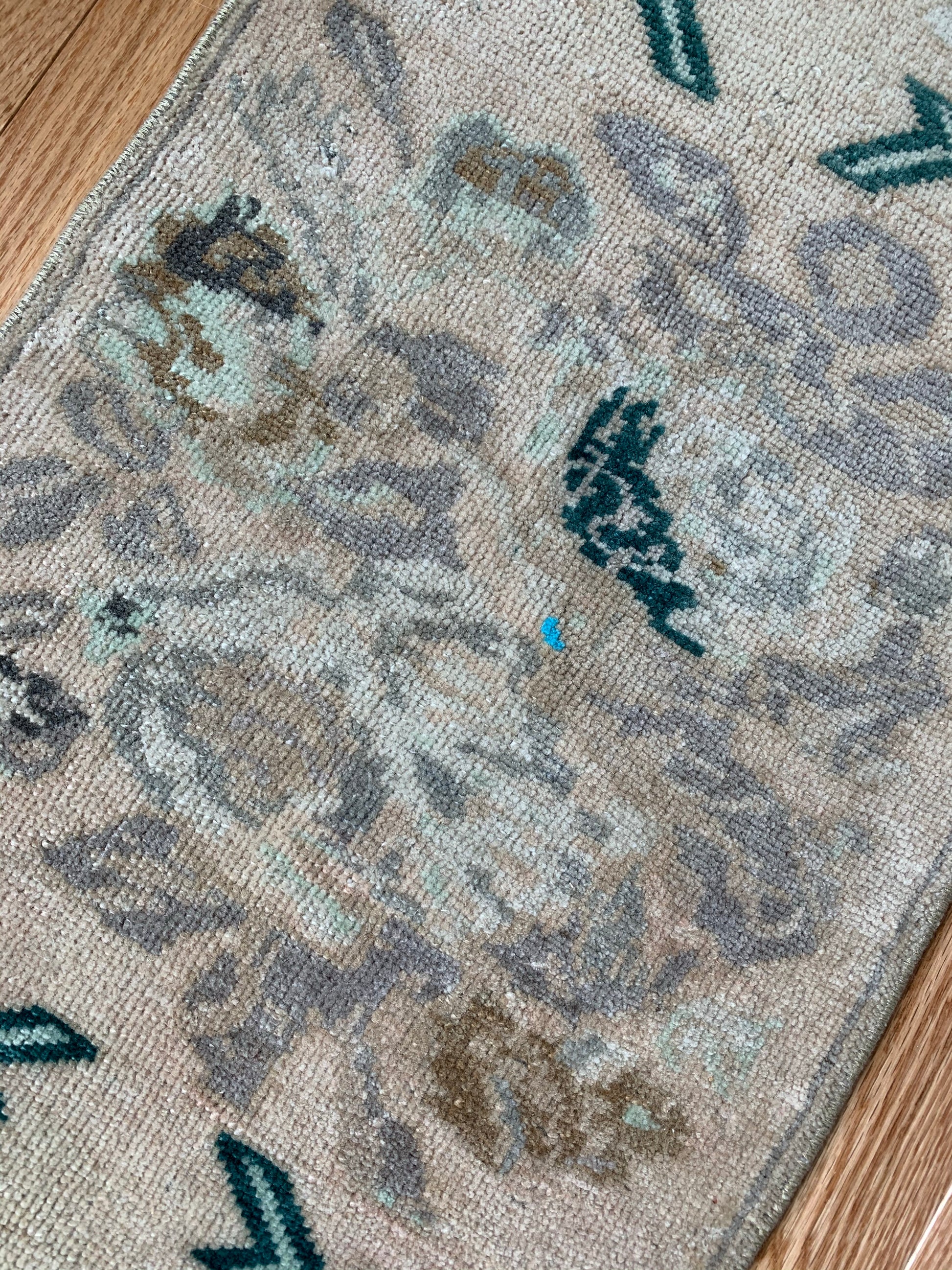 Cleaning: Vacuum on occasion, with suction only. Spot clean with clear soap, a little bit of white vinegar, and water. Never use a carpet cleaner machine to clean a vintage rug. If your piece is fragile or antique, or needs a deep clean, take it to a professional.