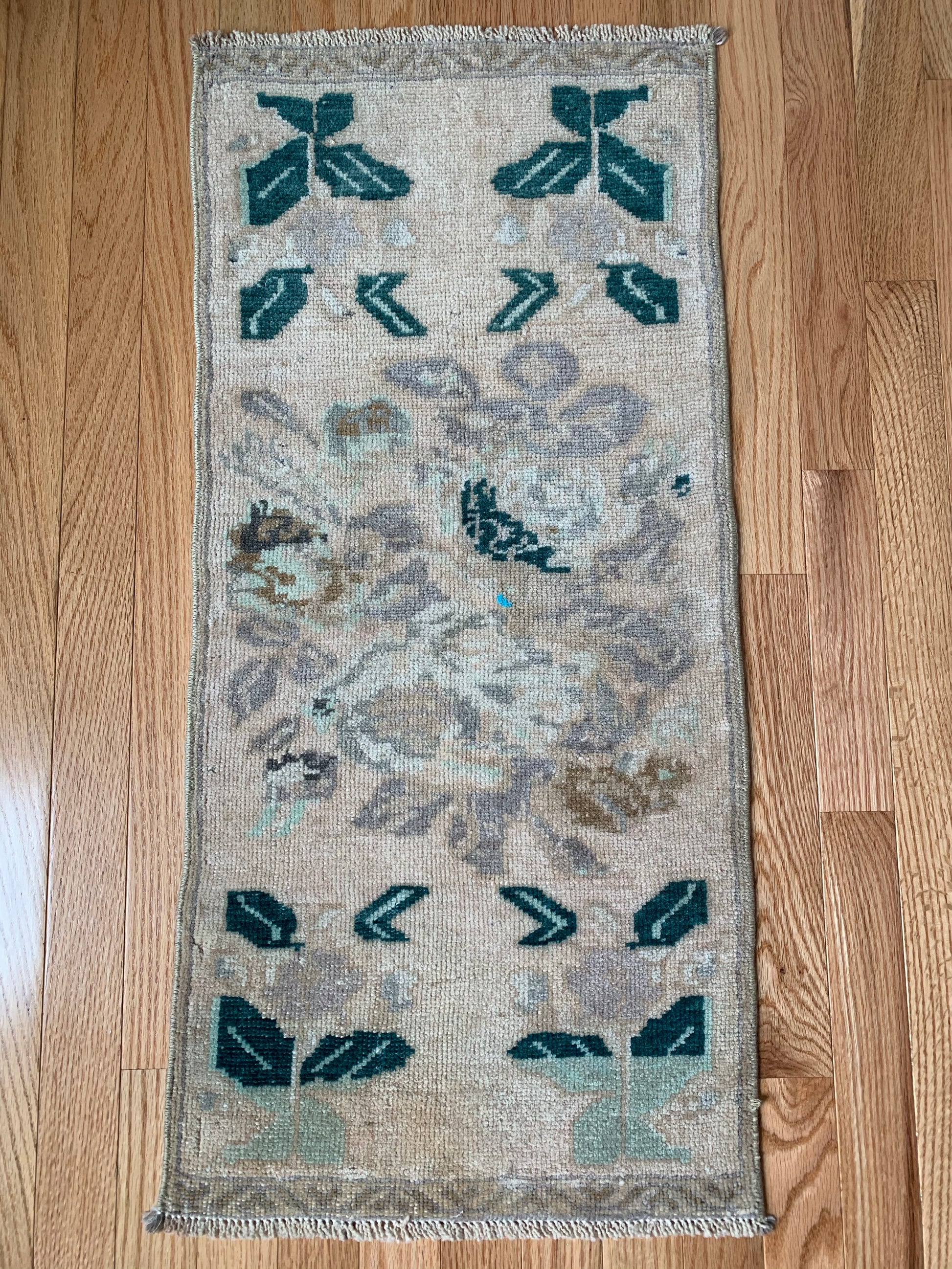 All rugs have been thoroughly cleaned; age-related wear and patina are considered normal in these unique, hand woven vintage rugs. All pieces have been photographed with moderate natural light. Colors may vary depending on your phone or screen settings. Some items may not be perfectly straight or rectangle. We consider these characteristics part of what makes them truly one-of-a-kind.