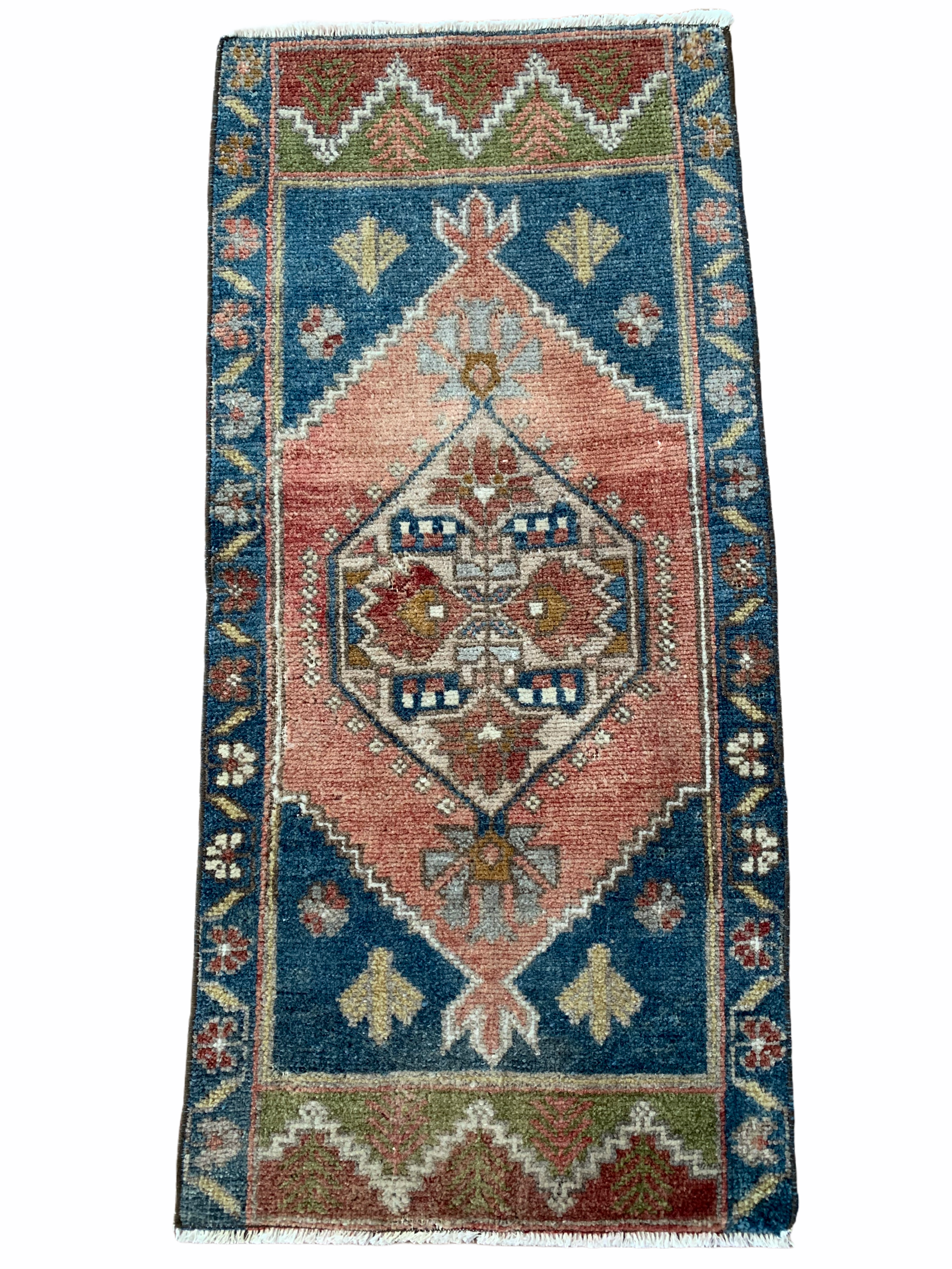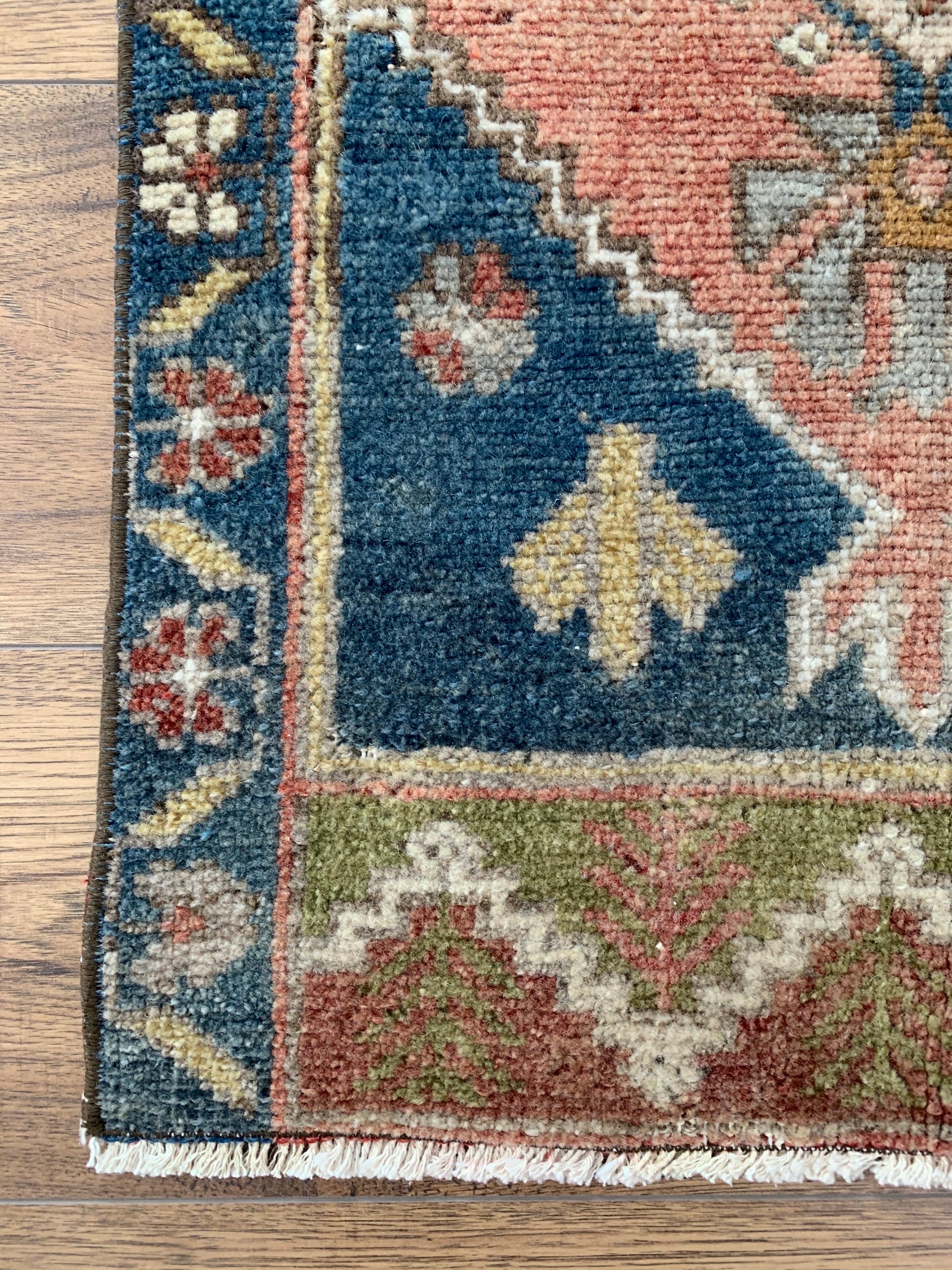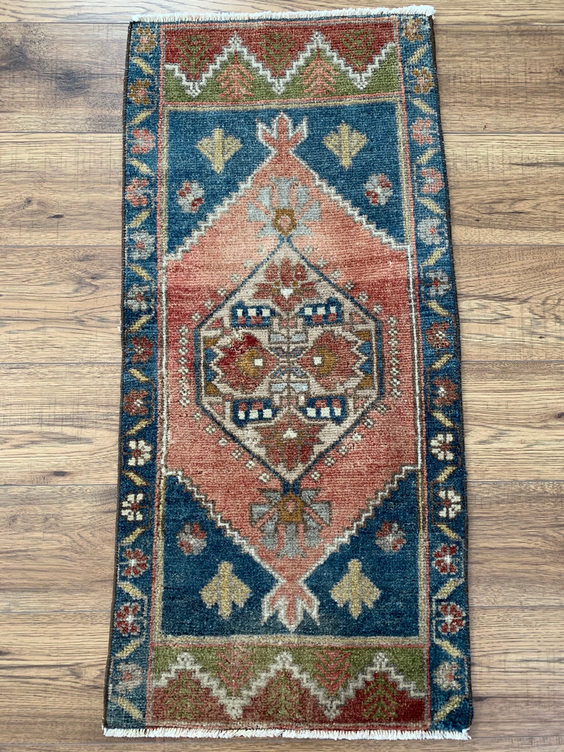 All rugs have been thoroughly cleaned; age-related wear and patina are considered normal in these unique, hand woven vintage rugs. All pieces have been photographed with moderate natural light. Colors may vary depending on your phone or screen settings. Some items may not be perfectly straight or rectangle. We consider these characteristics part of what makes them truly one-of-a-kind.