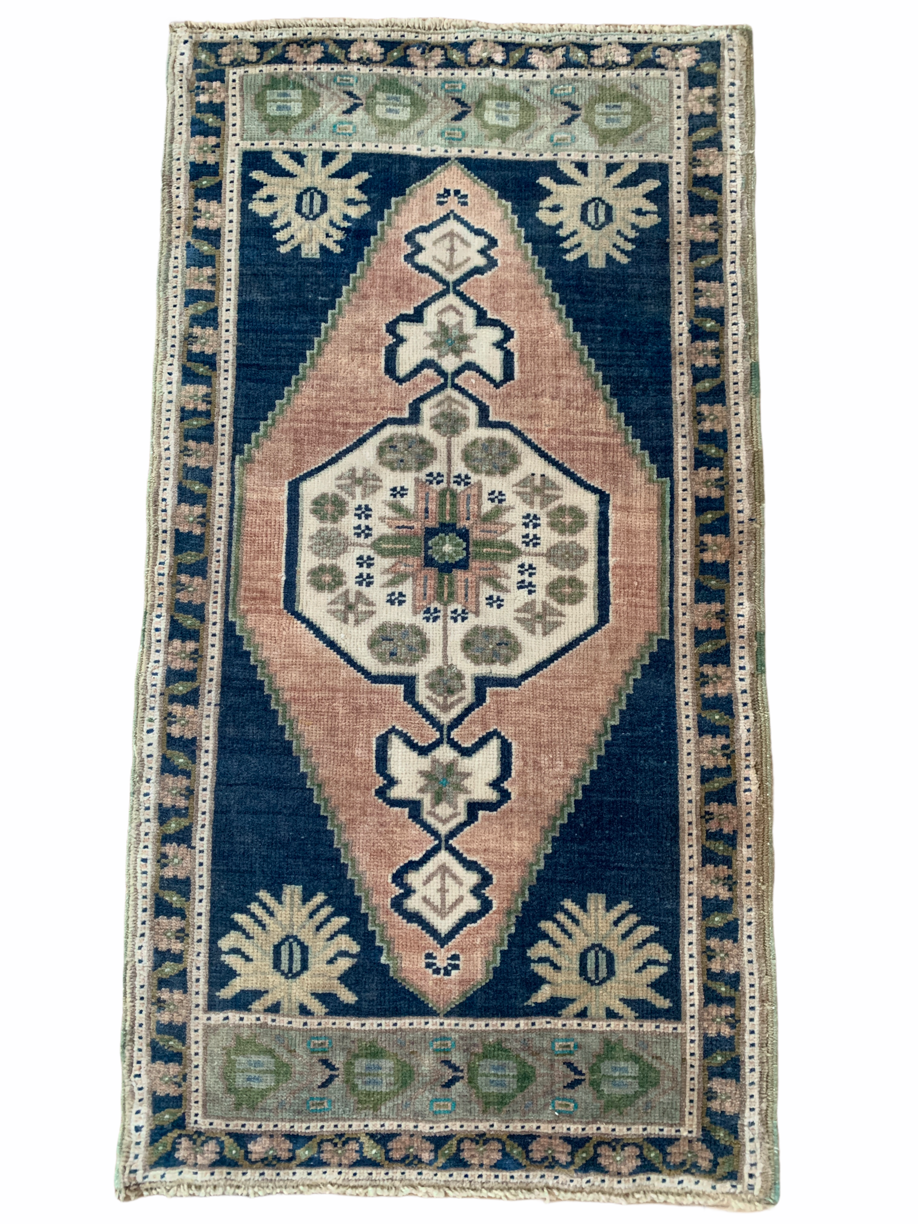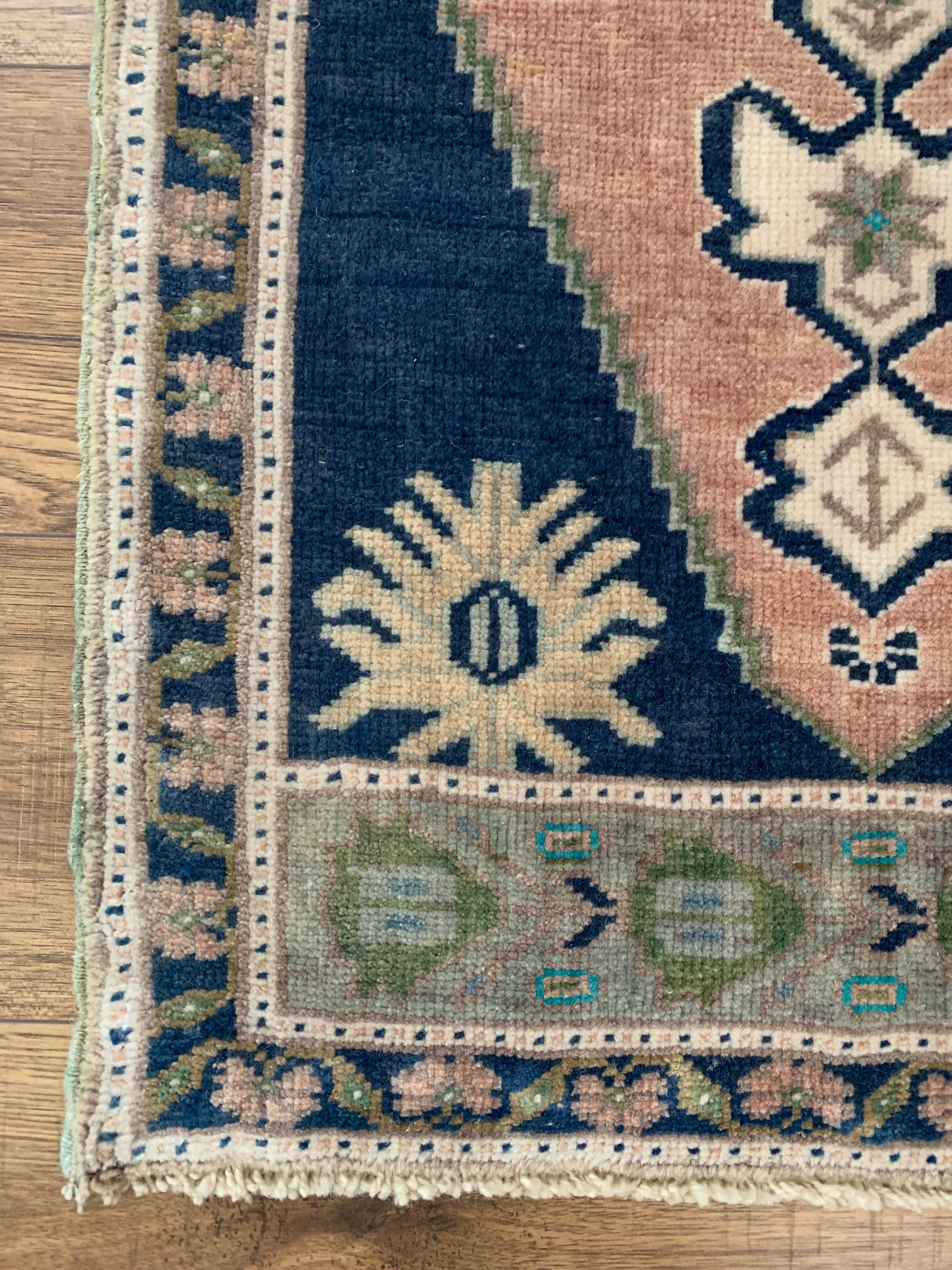 All rugs have been thoroughly cleaned; age-related wear and patina are considered normal in these unique, hand woven vintage rugs. All pieces have been photographed with moderate natural light. Colors may vary depending on your phone or screen settings. Some items may not be perfectly straight or rectangle. We consider these characteristics part of what makes them truly one-of-a-kind.