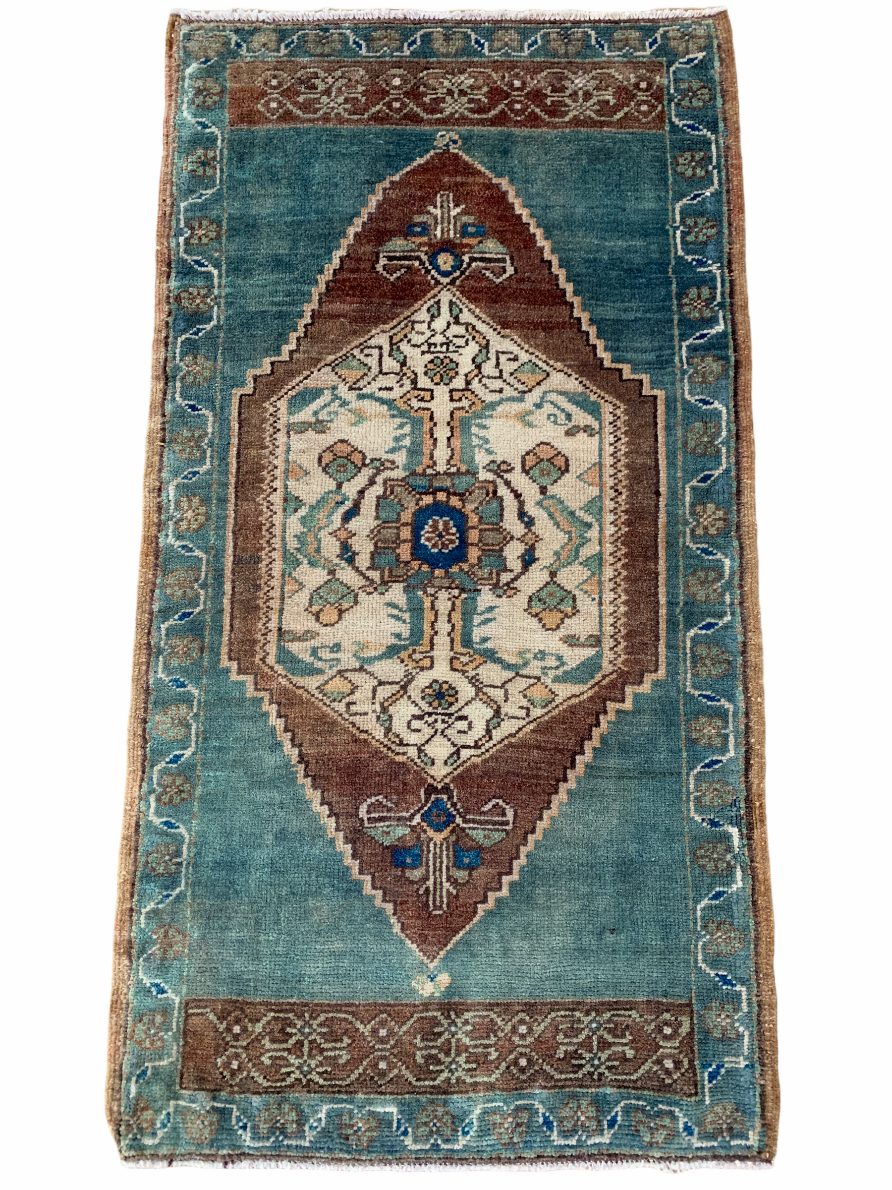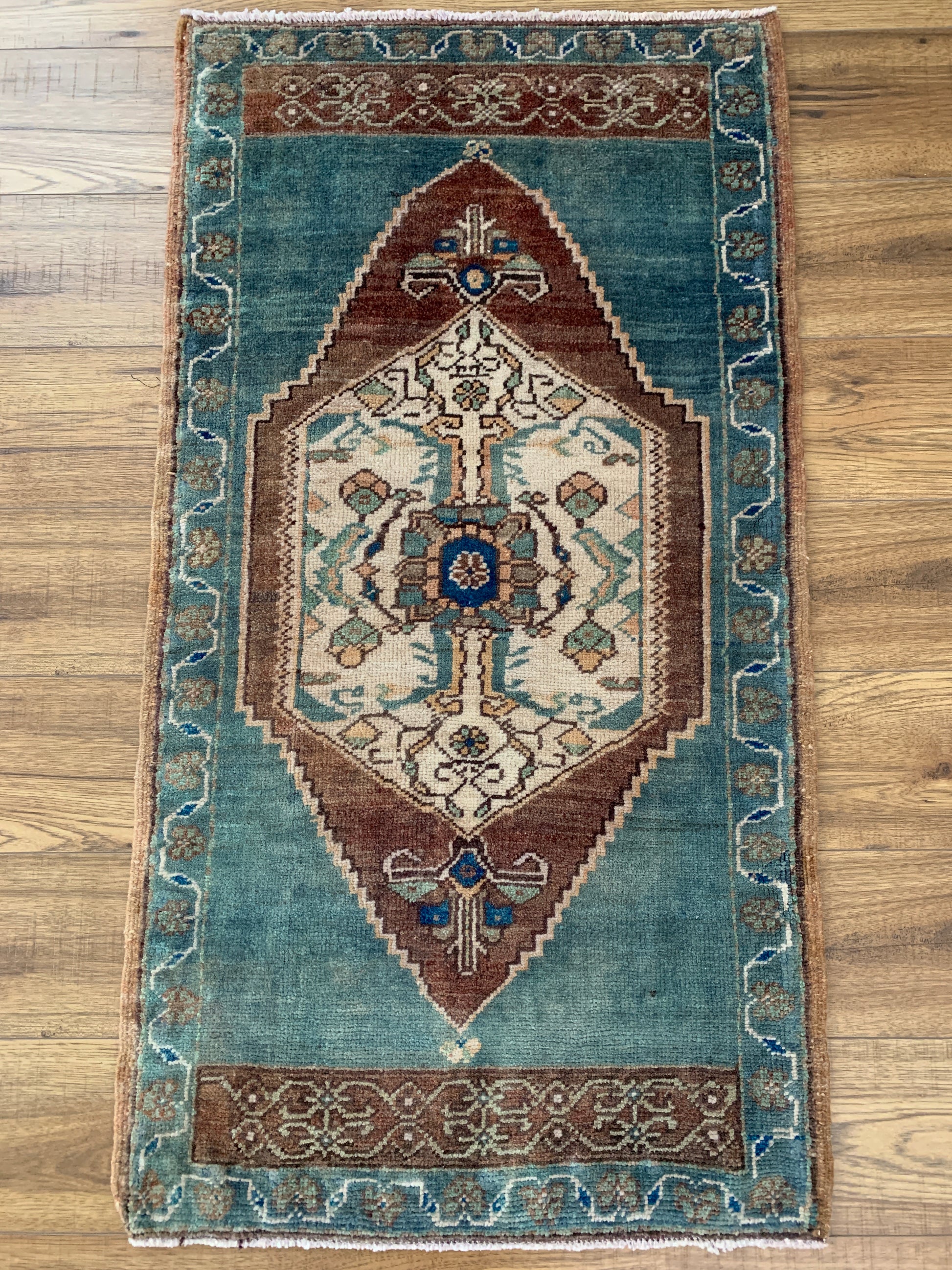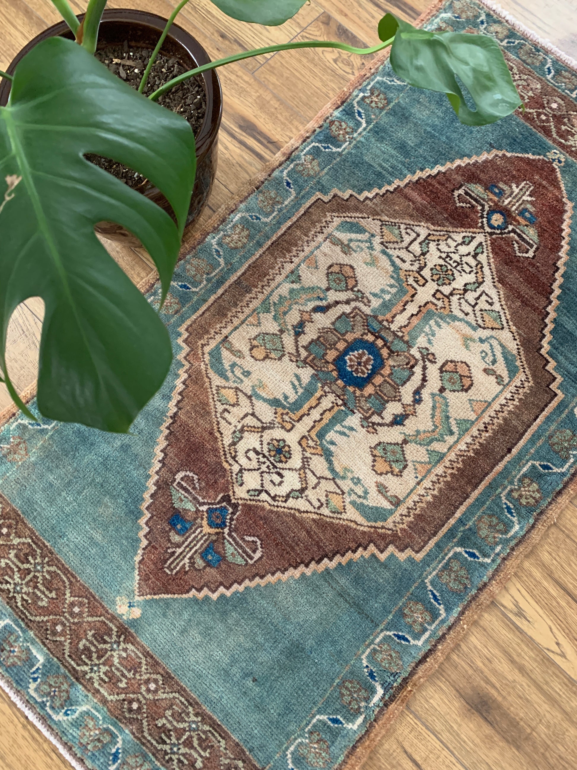 All rugs have been thoroughly cleaned; age-related wear and patina are considered normal in these unique, hand woven vintage rugs. All pieces have been photographed with moderate natural light. Colors may vary depending on your phone or screen settings. Some items may not be perfectly straight or rectangle. We consider these characteristics part of what makes them truly one-of-a-kind.