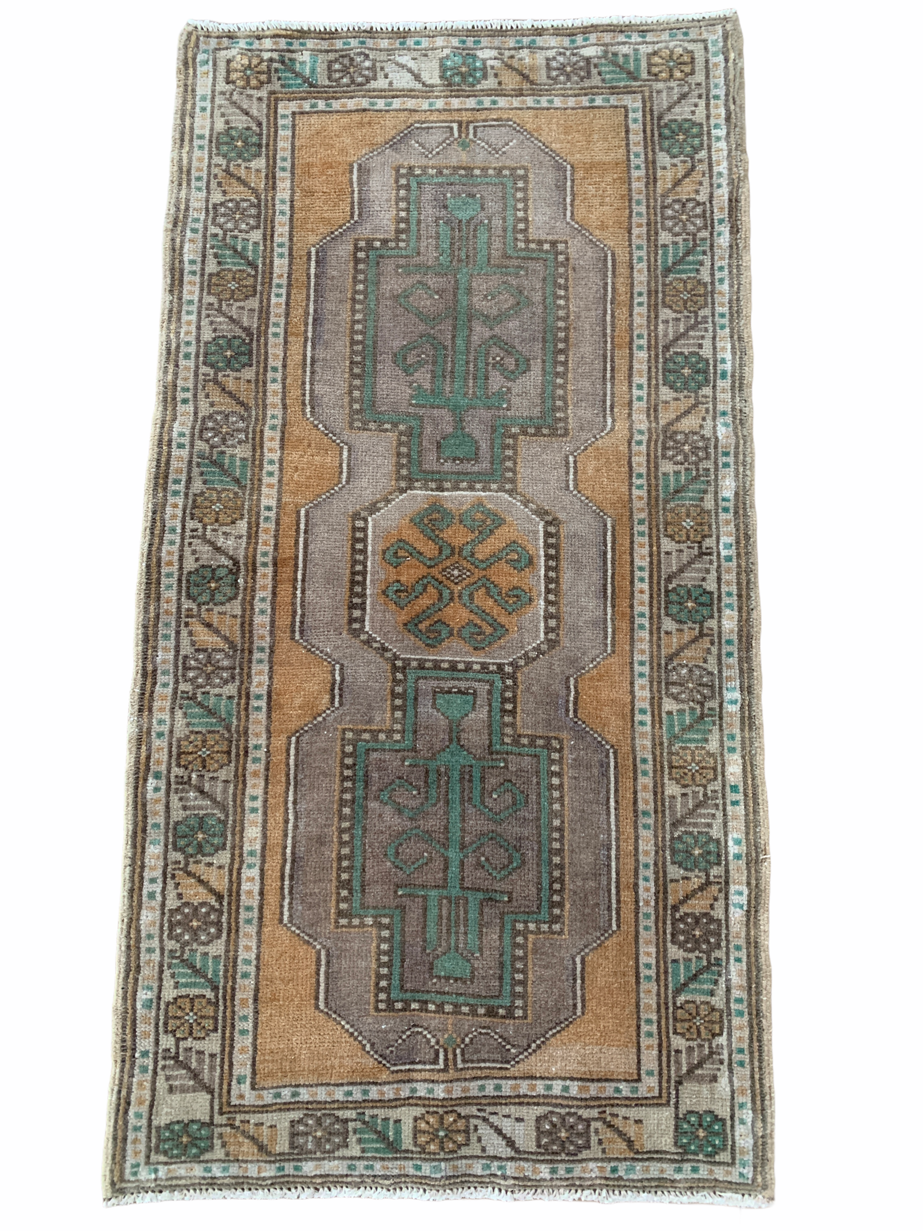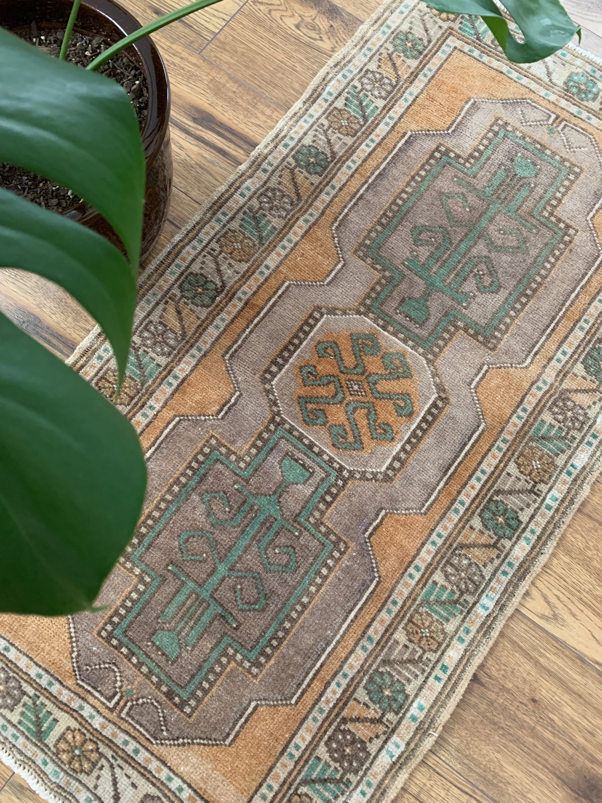 All rugs have been thoroughly cleaned; age-related wear and patina are considered normal in these unique, hand woven vintage rugs. All pieces have been photographed with moderate natural light. Colors may vary depending on your phone or screen settings. Some items may not be perfectly straight or rectangle. We consider these characteristics part of what makes them truly one-of-a-kind.
