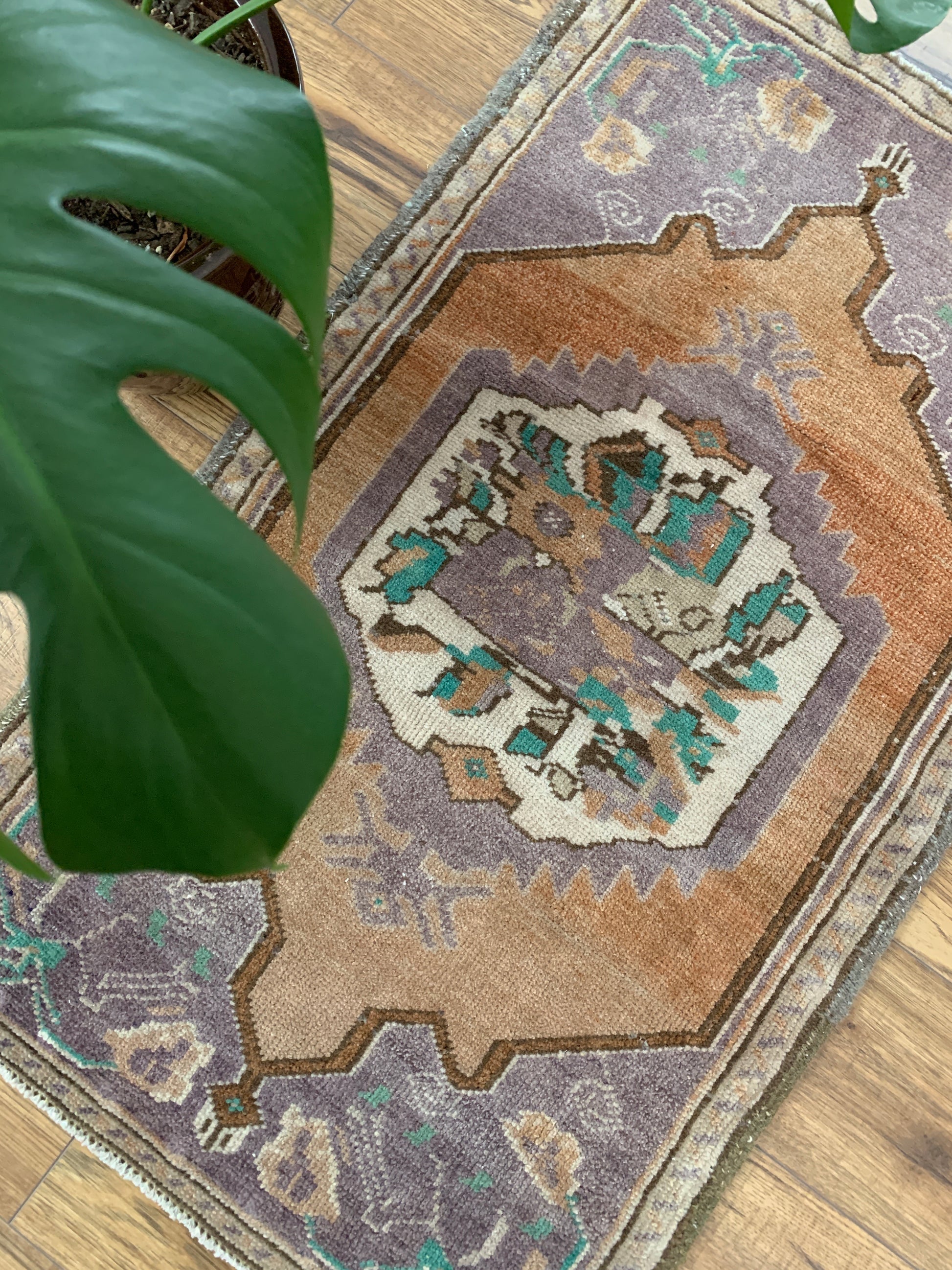 All rugs have been thoroughly cleaned; age-related wear and patina are considered normal in these unique, hand woven vintage rugs. All pieces have been photographed with moderate natural light. Colors may vary depending on your phone or screen settings. Some items may not be perfectly straight or rectangle. We consider these characteristics part of what makes them truly one-of-a-kind.