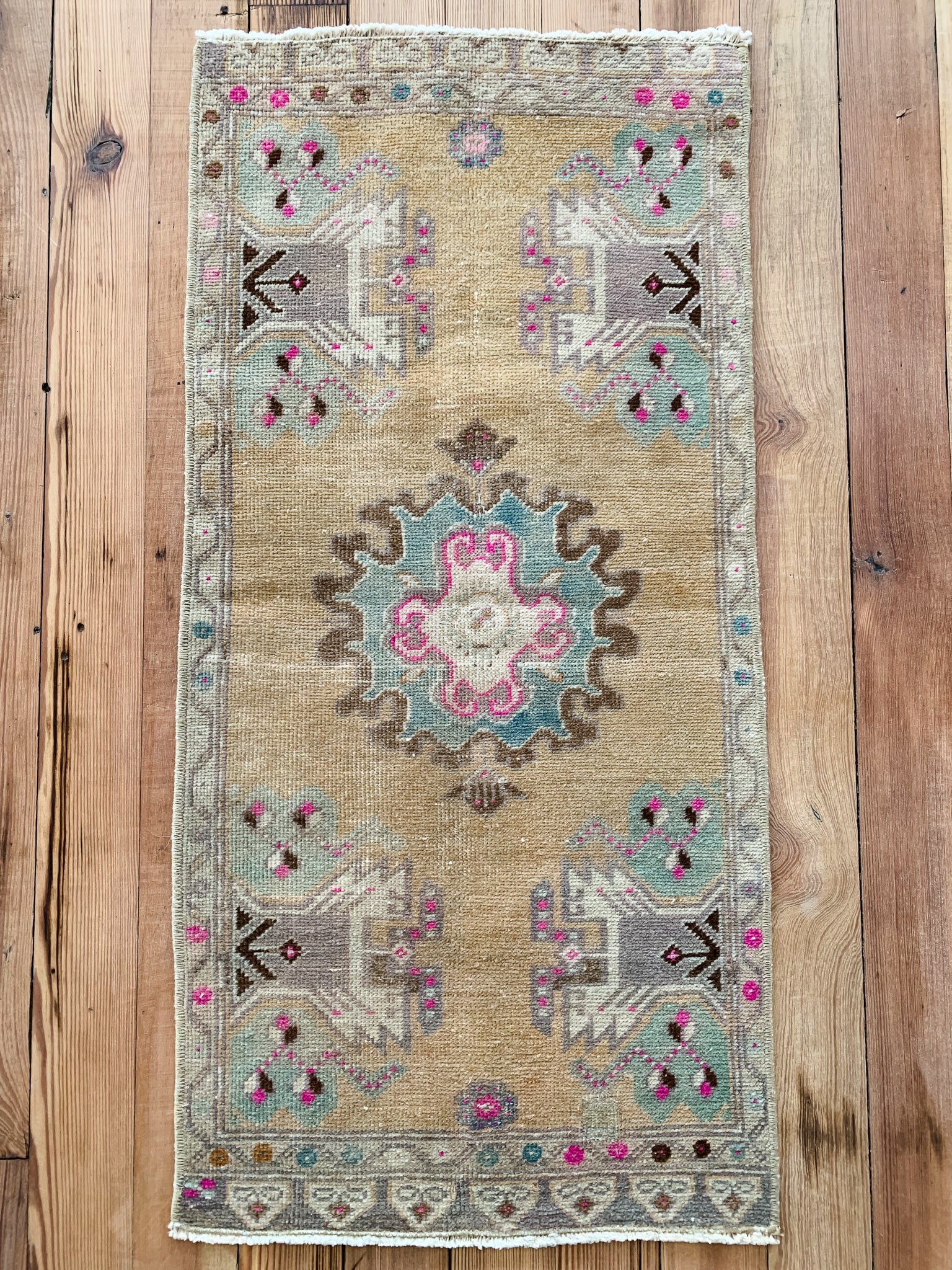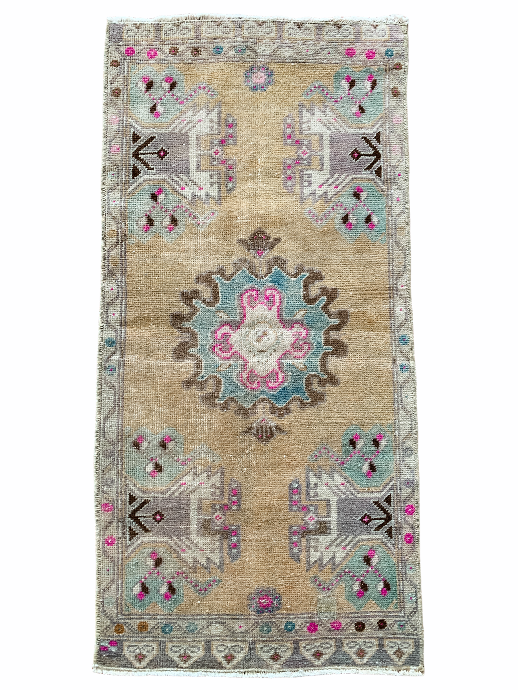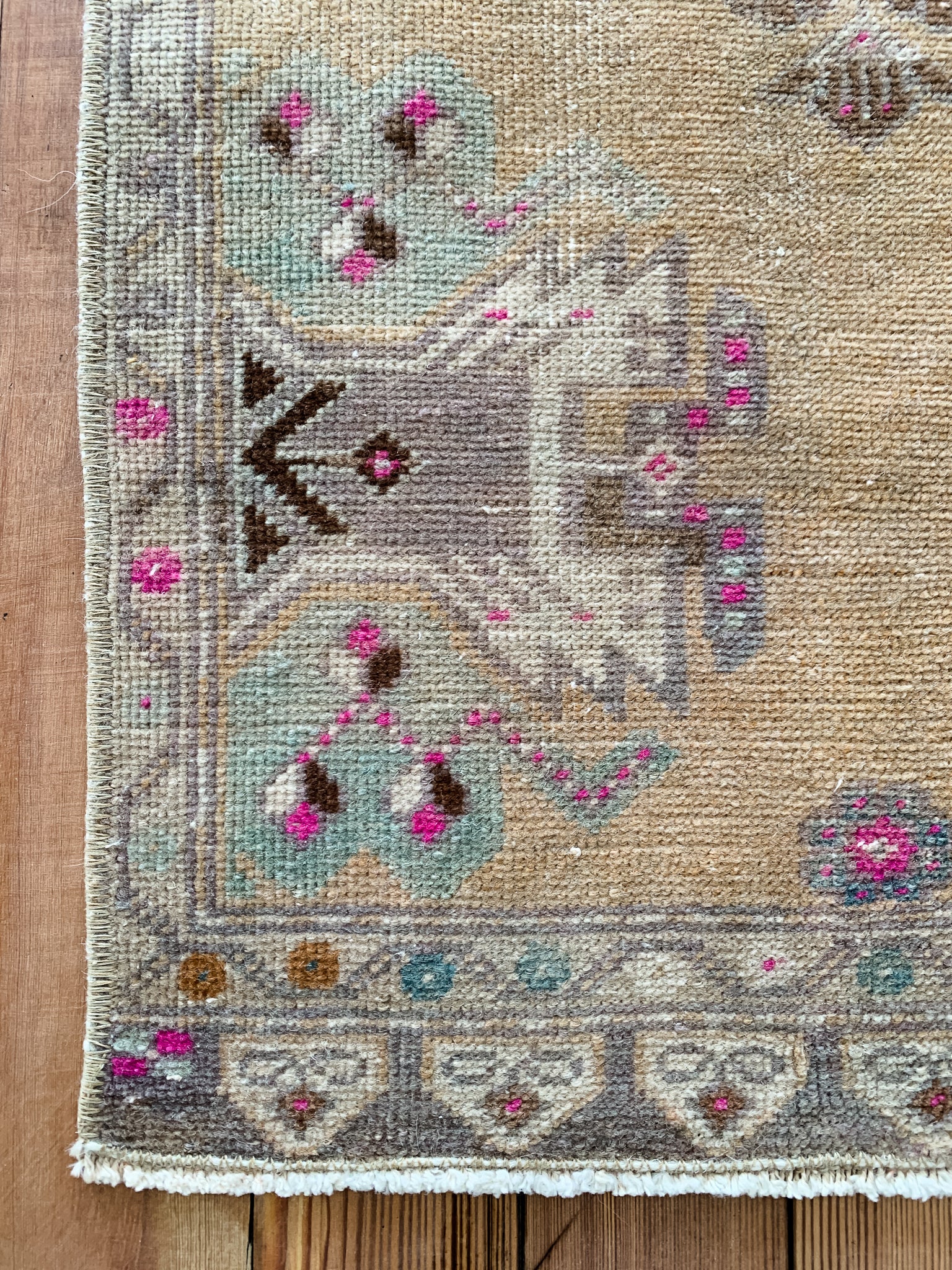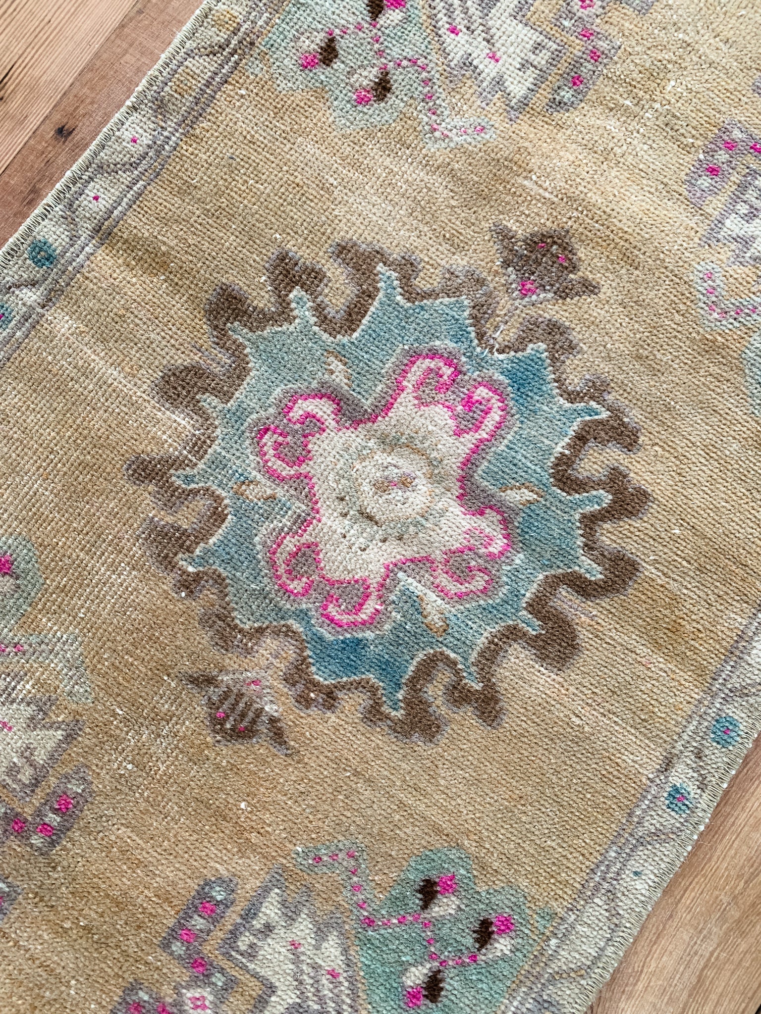All rugs have been thoroughly cleaned; age-related wear and patina are considered normal in these unique, handwoven vintage rugs. All pieces have been photographed with moderate natural light. In some cases, photos are edited to depict the truest to life colors. Colors may vary depending on your phone or screen settings. Some items may not be perfectly straight or rectangle. We consider these characteristics part of what makes them truly one-of-a-kind.
