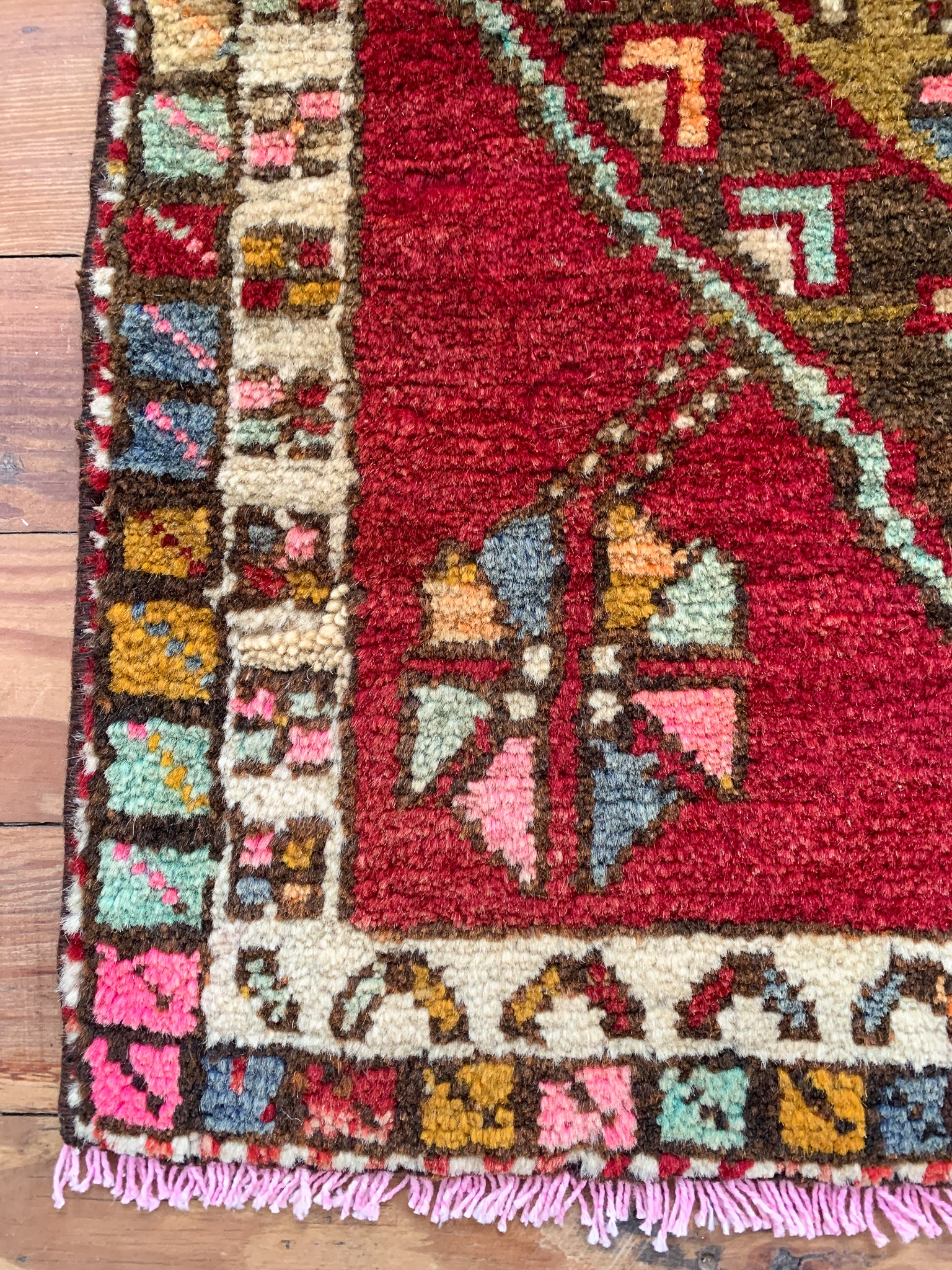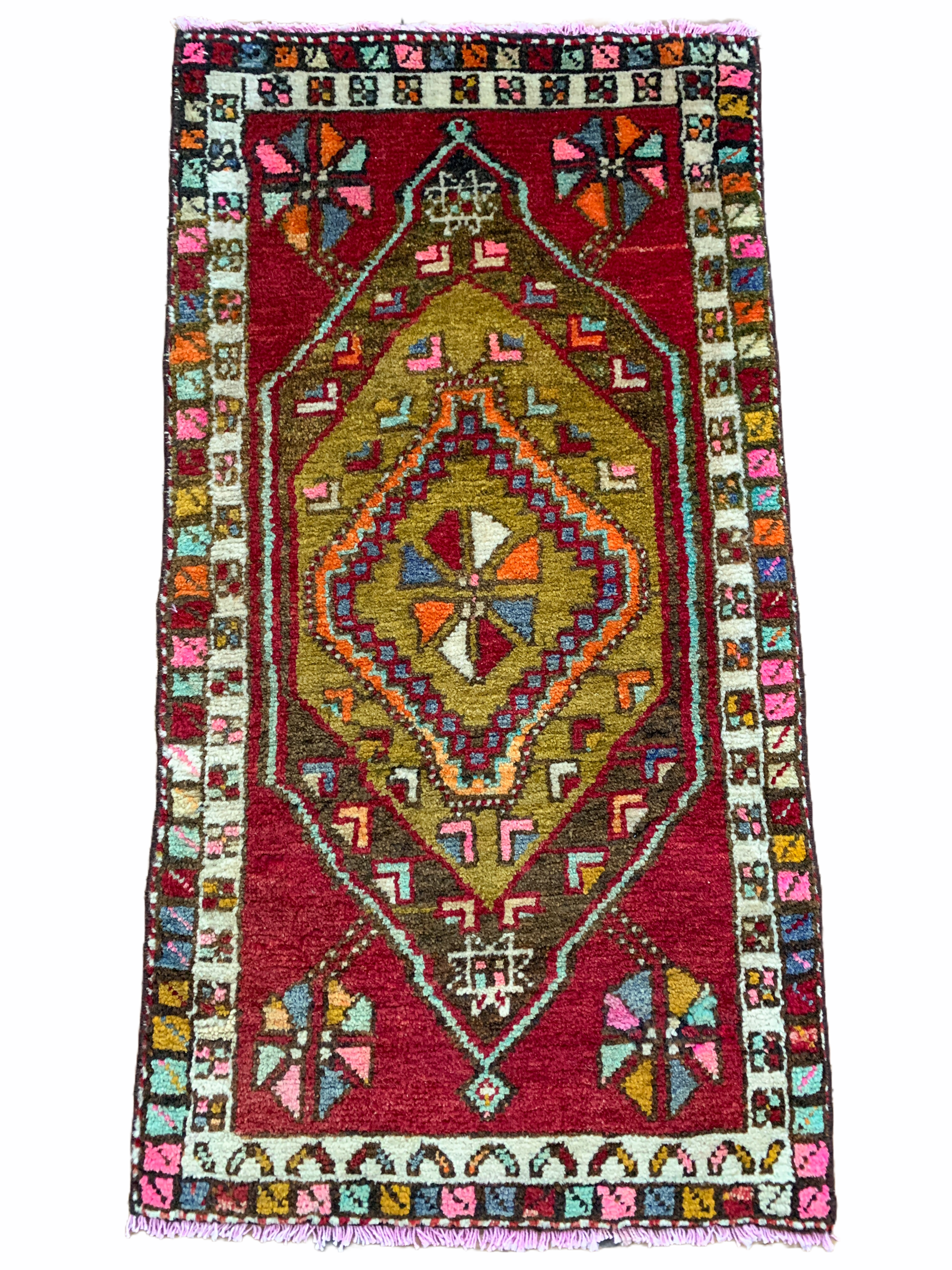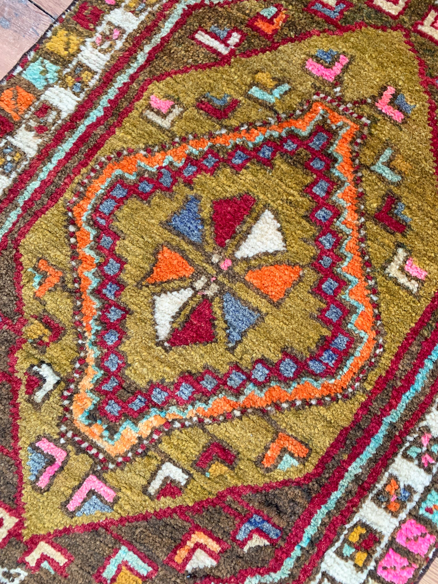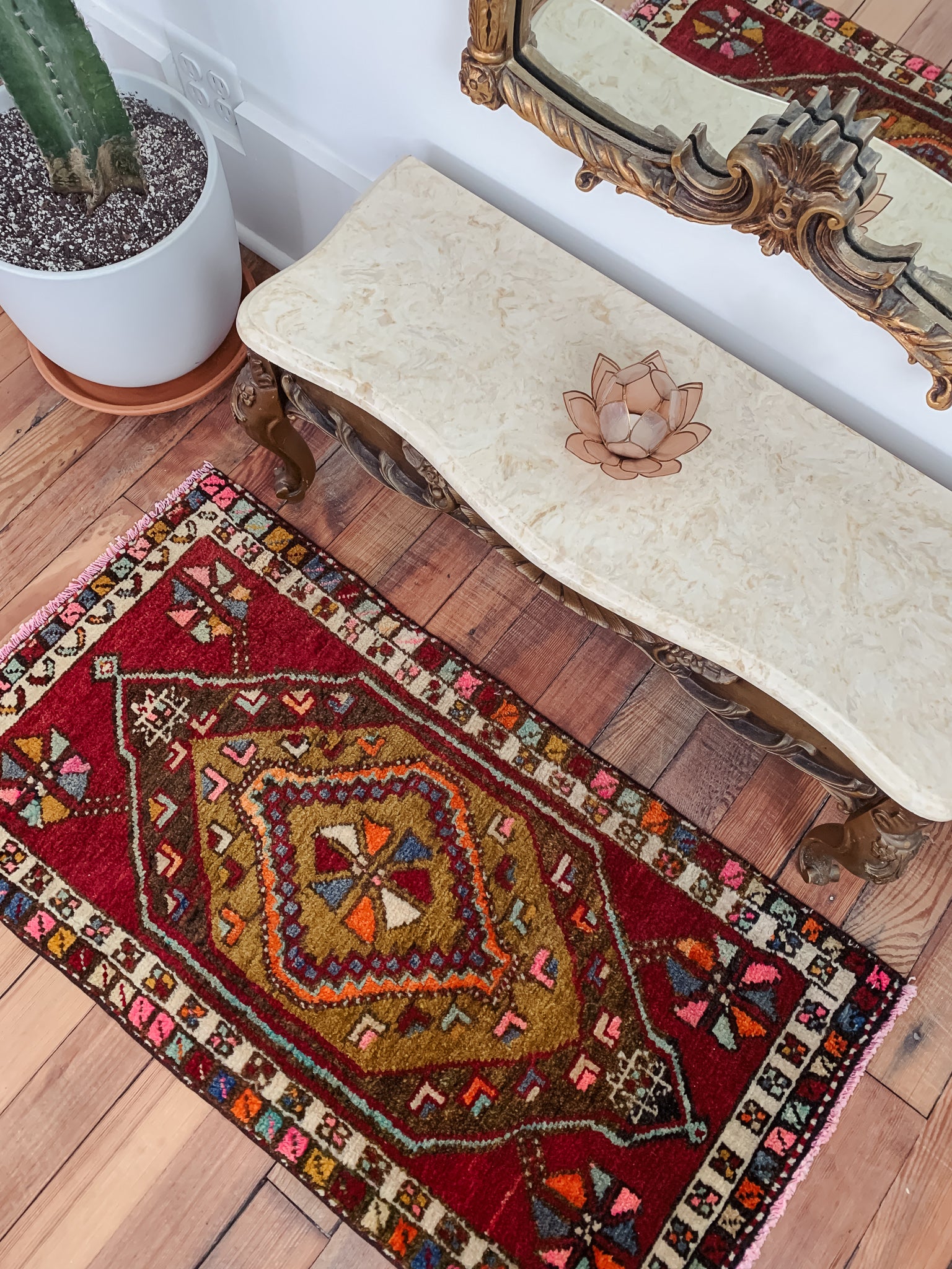 All rugs have been thoroughly cleaned; age-related wear and patina are considered normal in these unique, handwoven vintage rugs. All pieces have been photographed with moderate natural light. In some cases, photos are edited to depict the truest to life colors. Colors may vary depending on your phone or screen settings. Some items may not be perfectly straight or rectangle. We consider these characteristics part of what makes them truly one-of-a-kind.