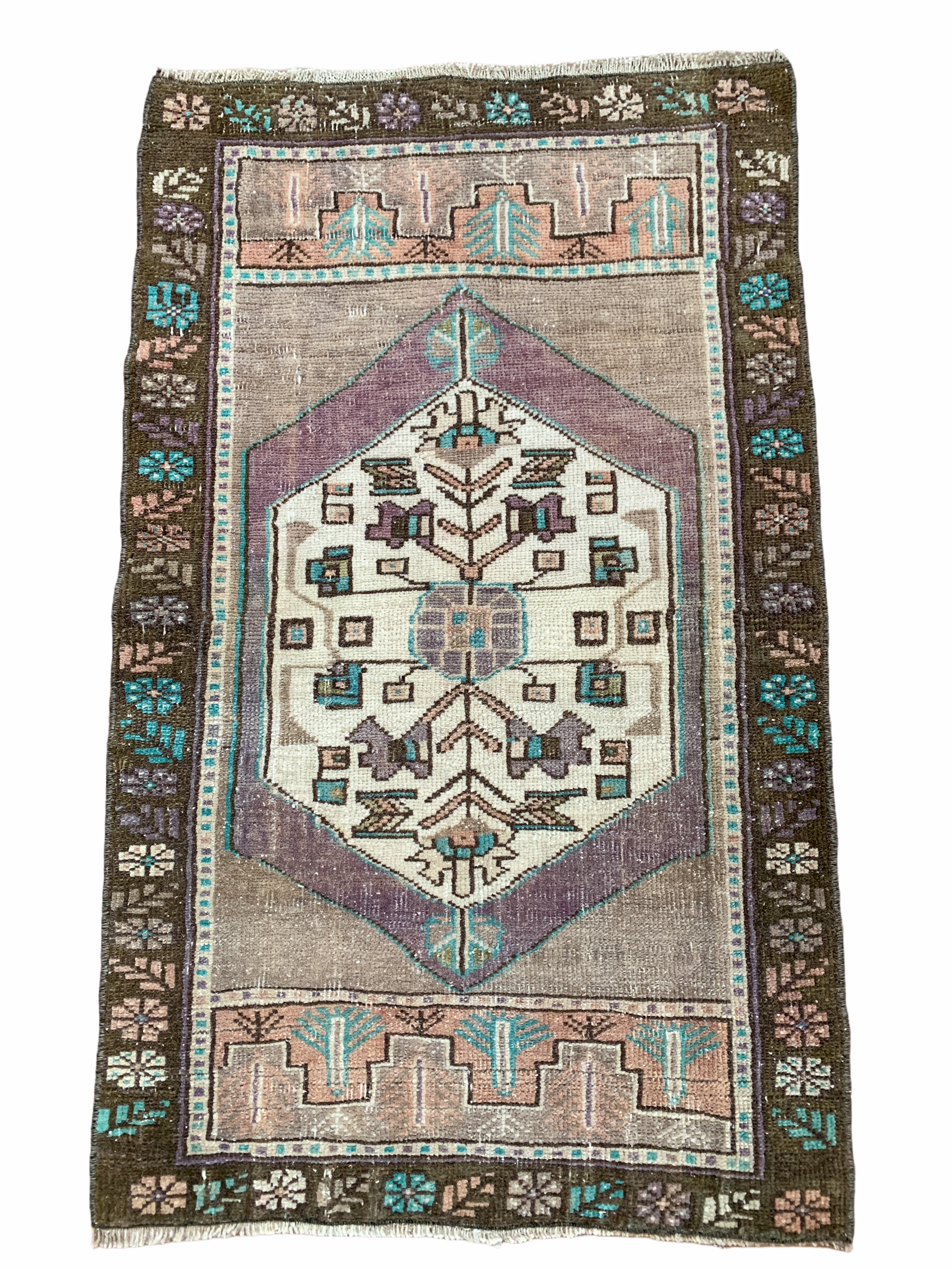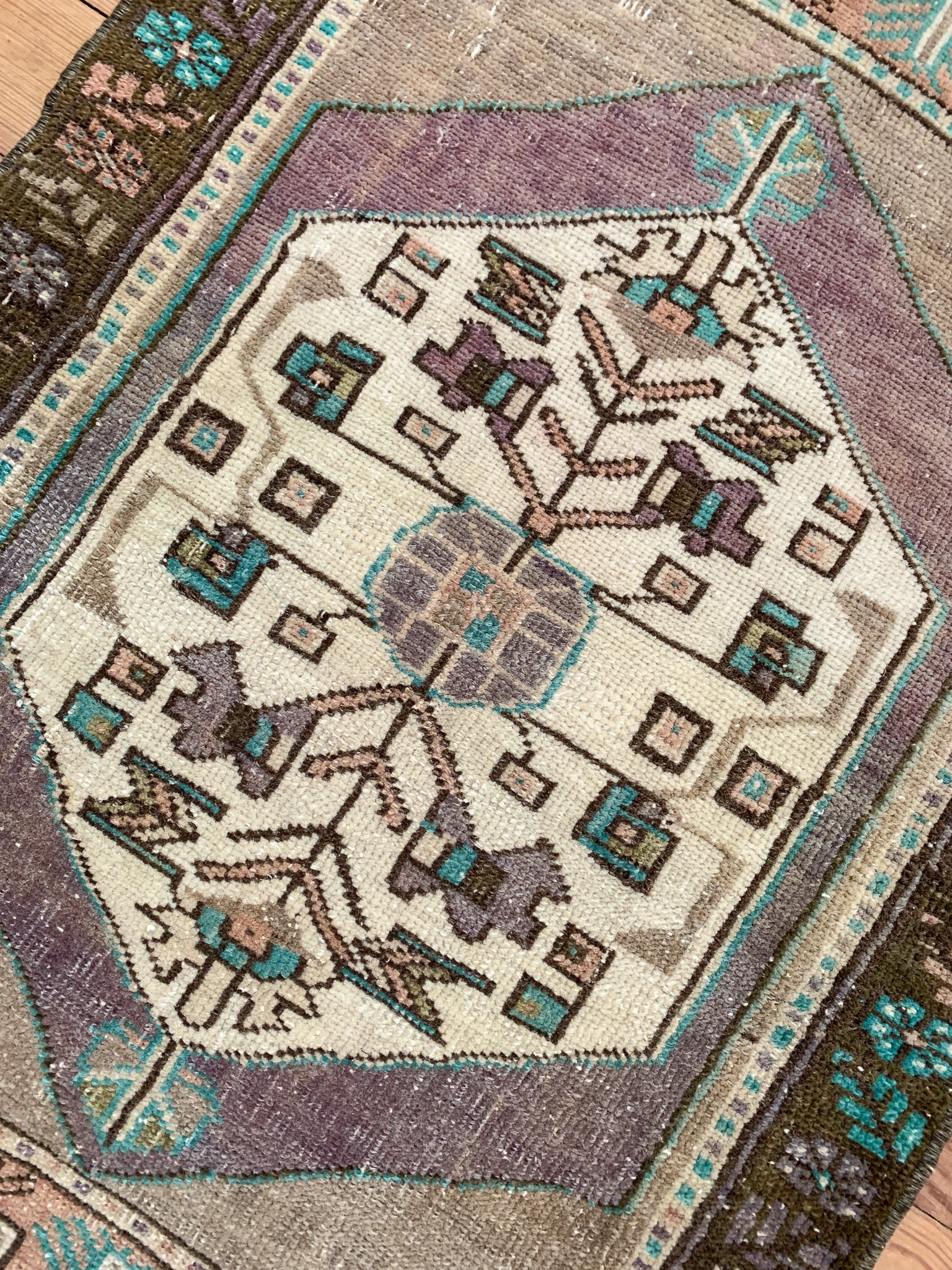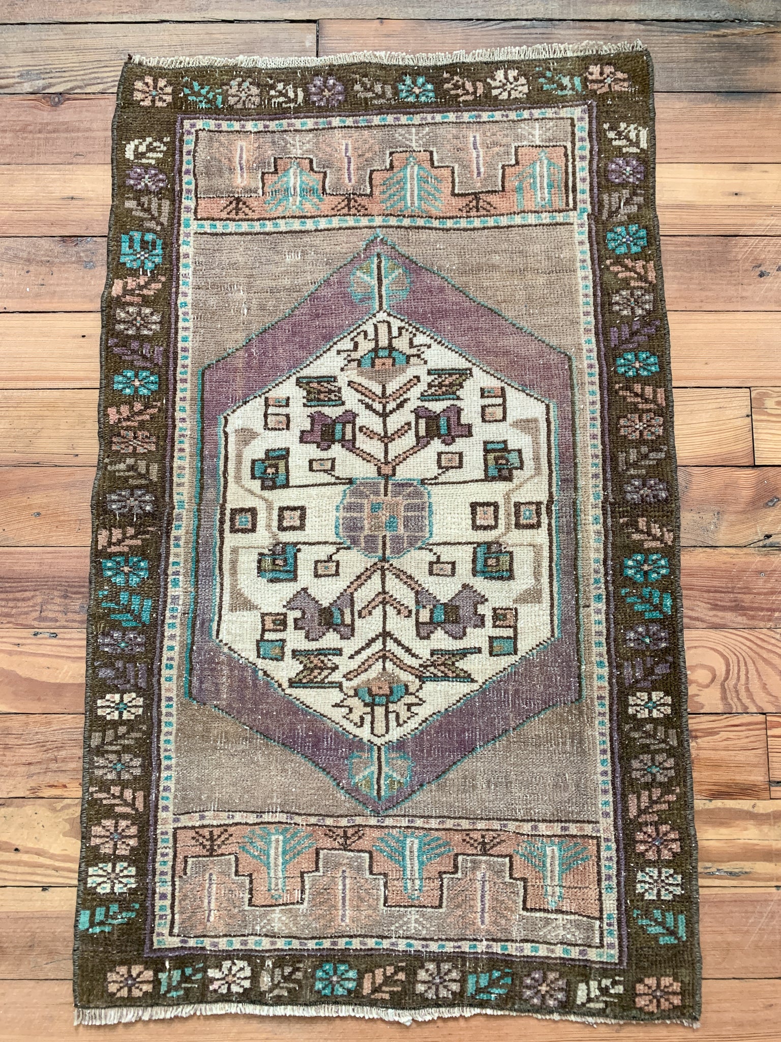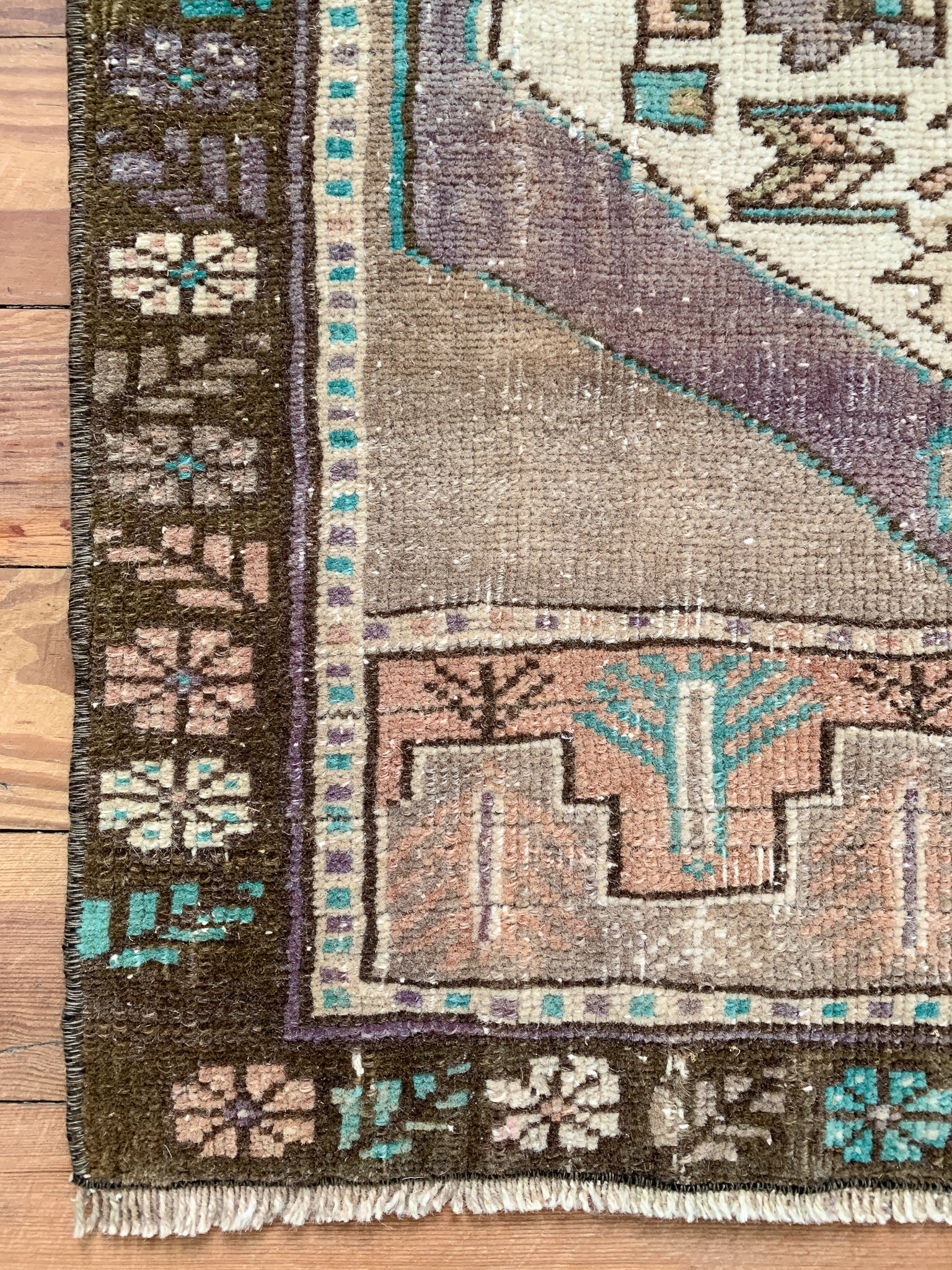 All rugs have been thoroughly cleaned; age-related wear and patina are considered normal in these unique, handwoven vintage rugs. All pieces have been photographed with moderate natural light. In some cases, photos are edited to depict the truest to life colors. Colors may vary depending on your phone or screen settings. Some items may not be perfectly straight or rectangle. We consider these characteristics part of what makes them truly one-of-a-kind.