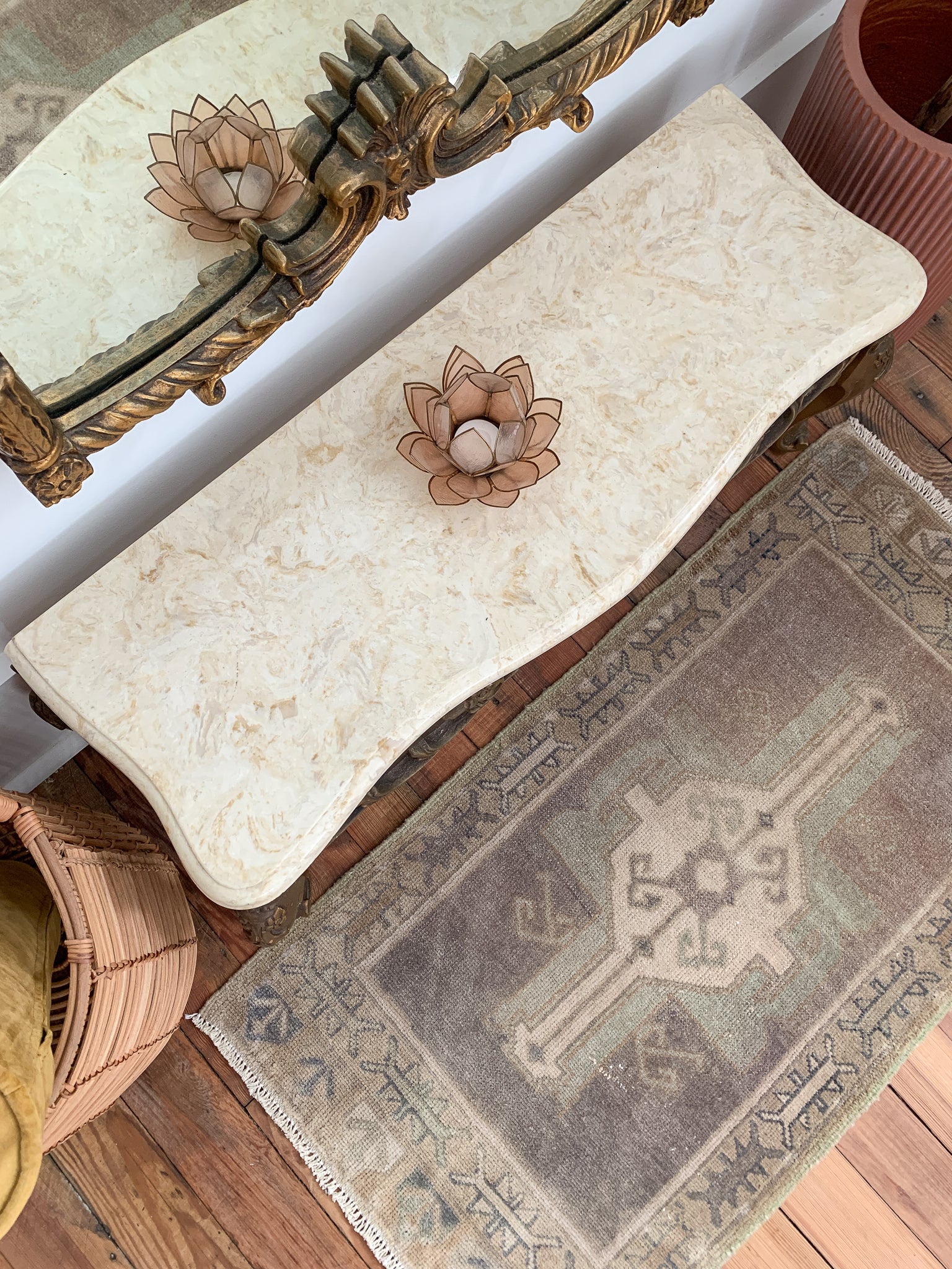 All rugs have been thoroughly cleaned; age-related wear and patina are considered normal in these unique, handwoven vintage rugs. All pieces have been photographed with moderate natural light. In some cases, photos are edited to depict the truest to life colors. Colors may vary depending on your phone or screen settings. Some items may not be perfectly straight or rectangle. We consider these characteristics part of what makes them truly one-of-a-kind.