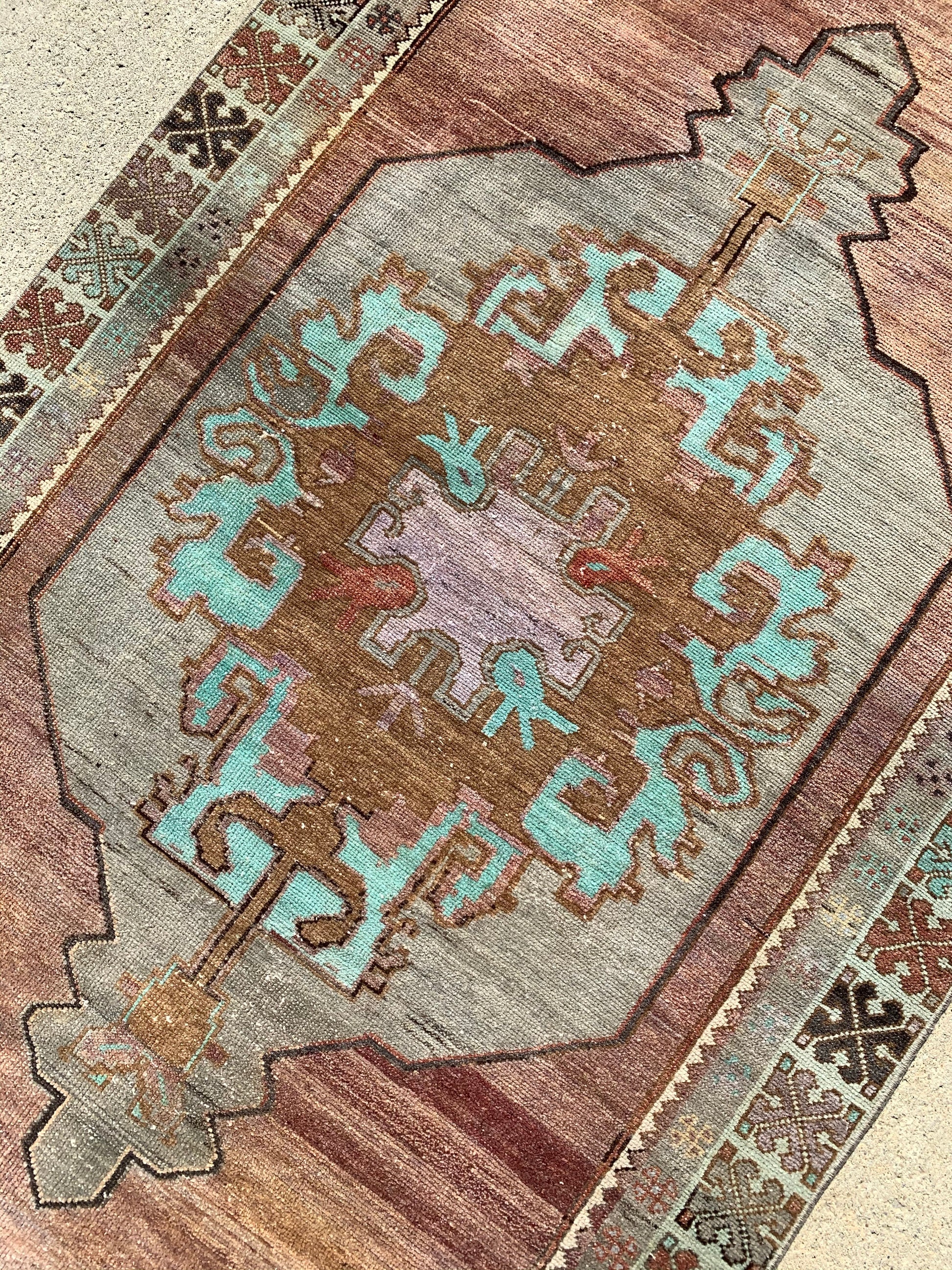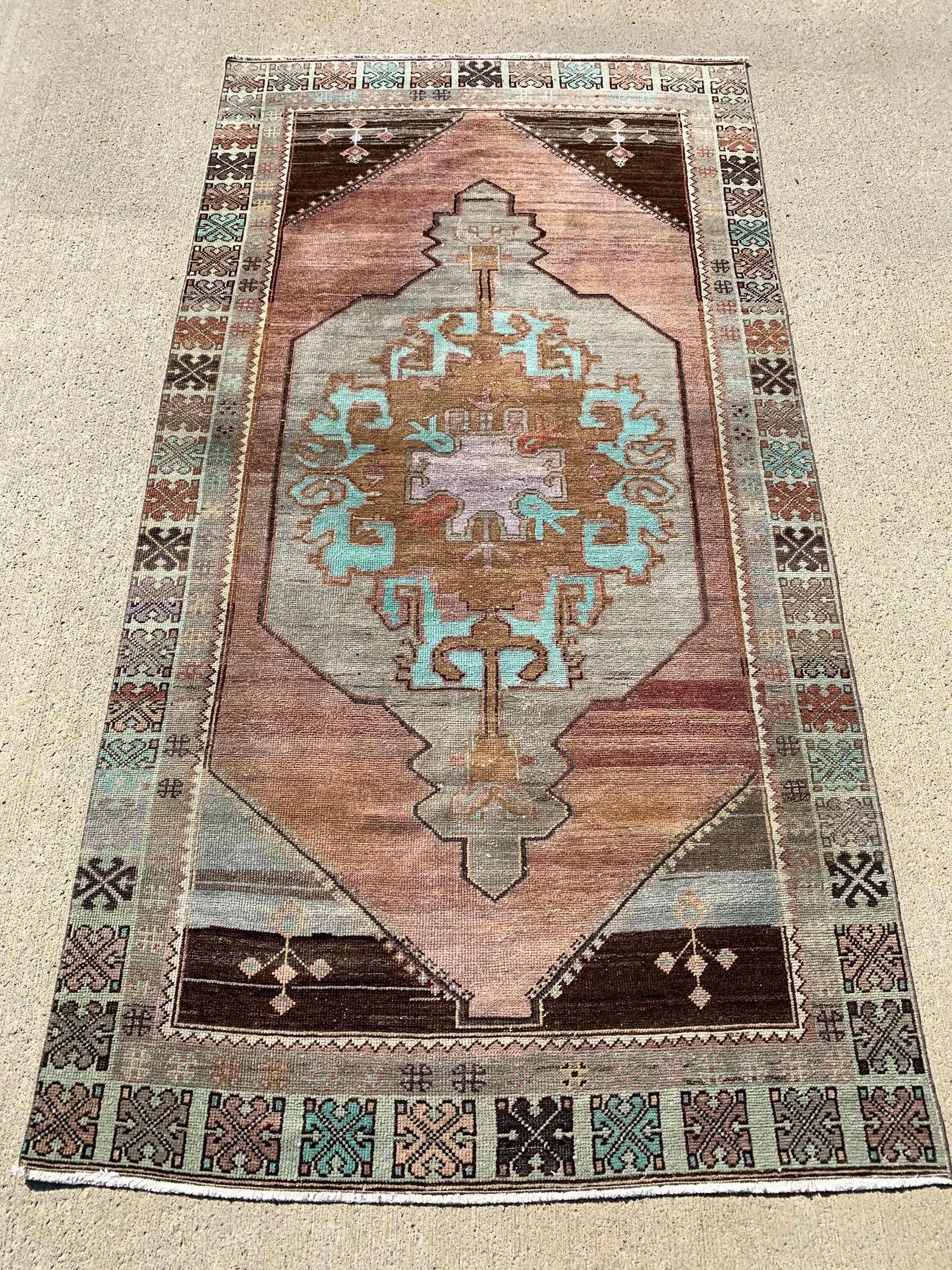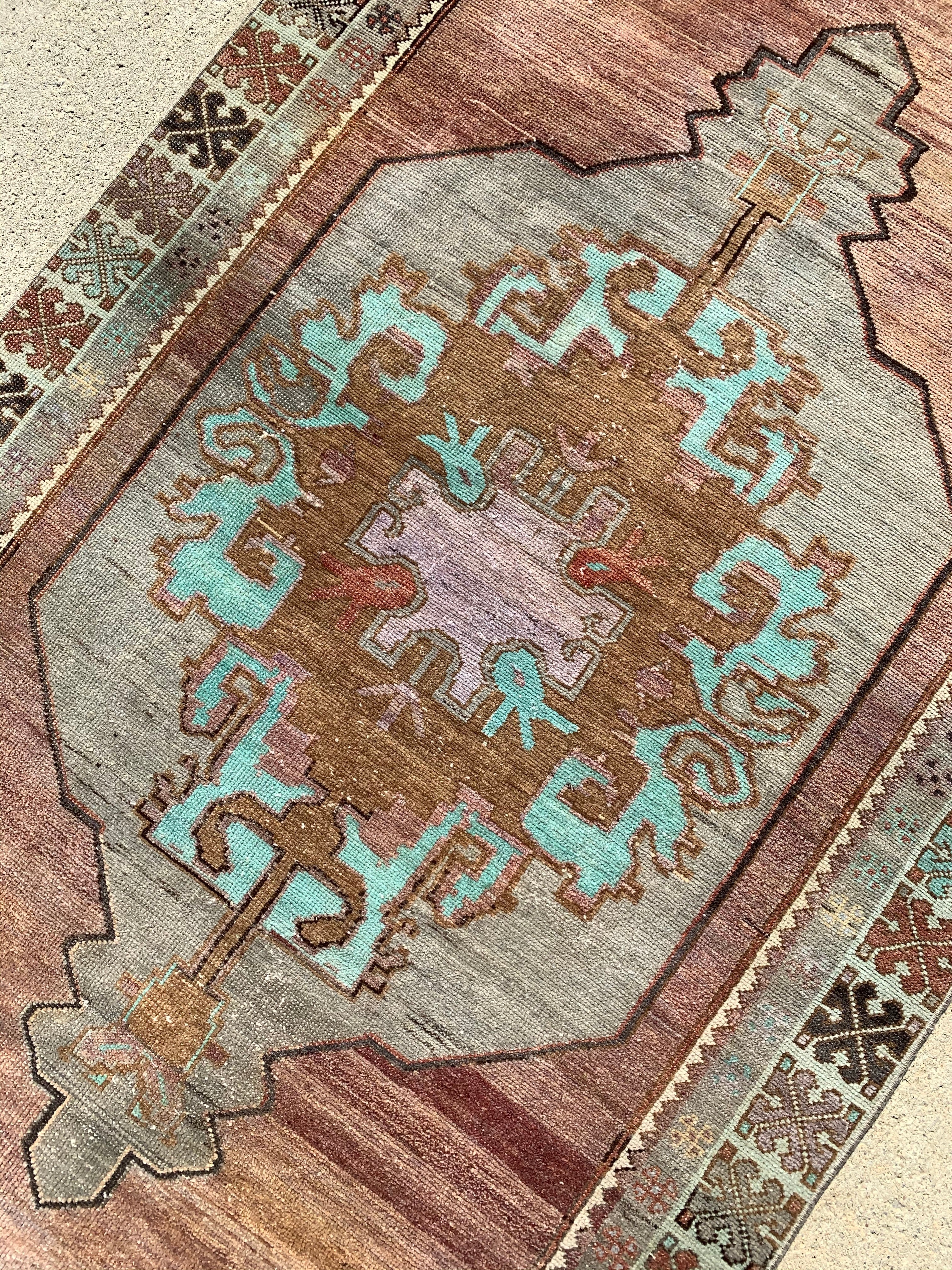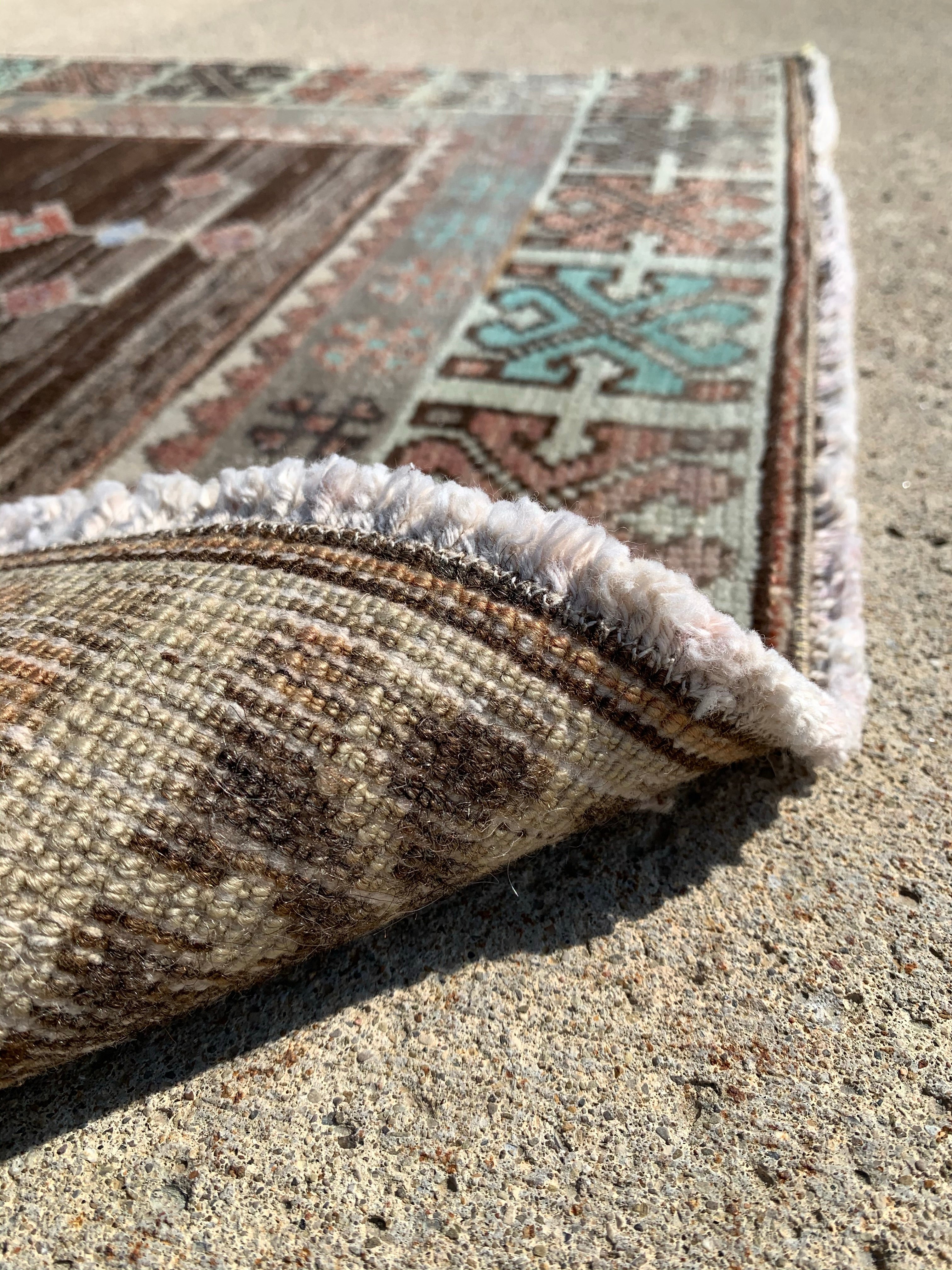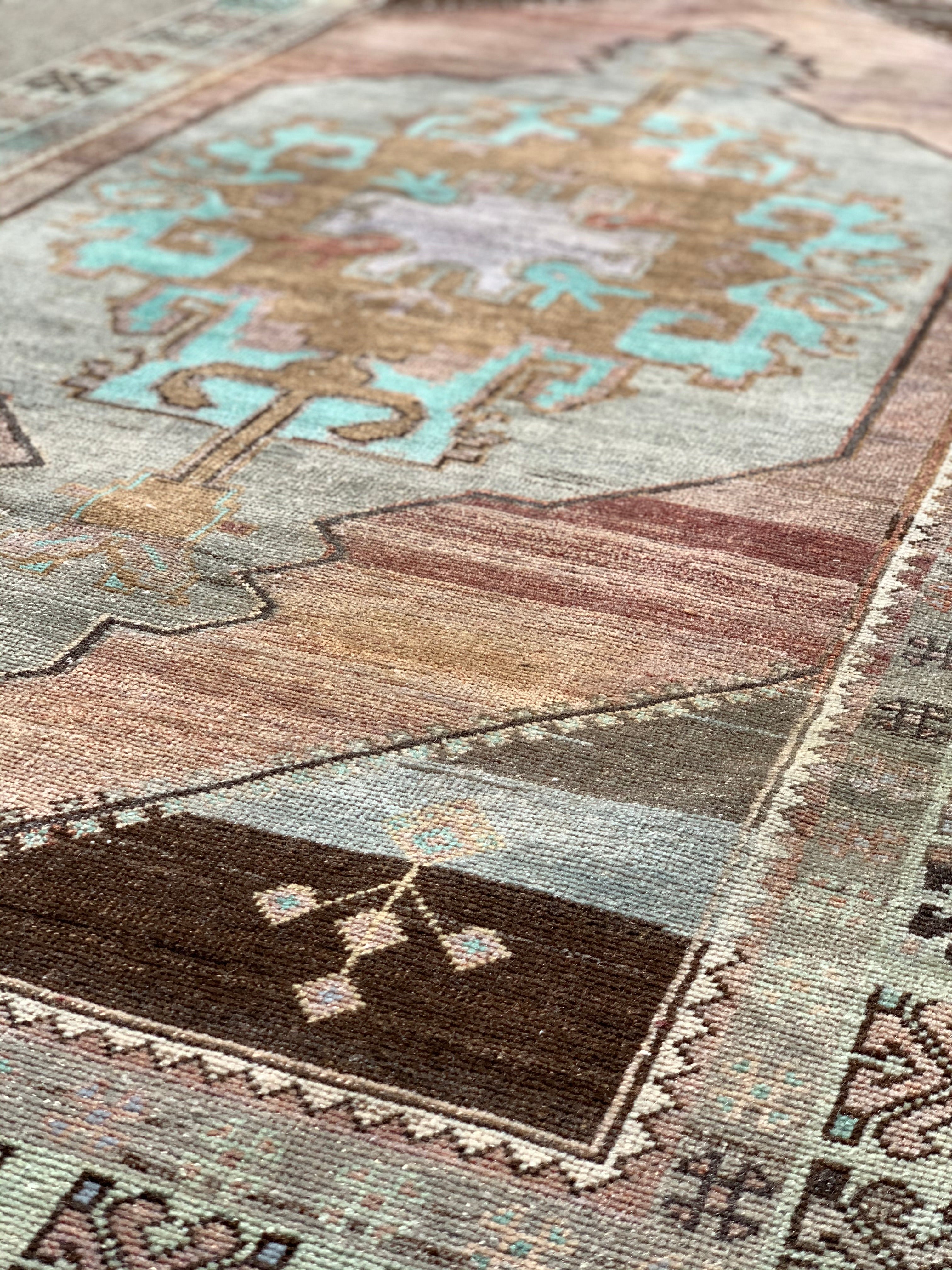 All rugs have been thoroughly cleaned; age-related wear and patina are considered normal in these unique, hand woven vintage rugs. All pieces have been photographed with moderate natural light. Colors may vary depending on your phone or screen settings. Some items may not be perfectly straight or rectangle. We consider these characteristics part of what makes them truly one-of-a-kind.