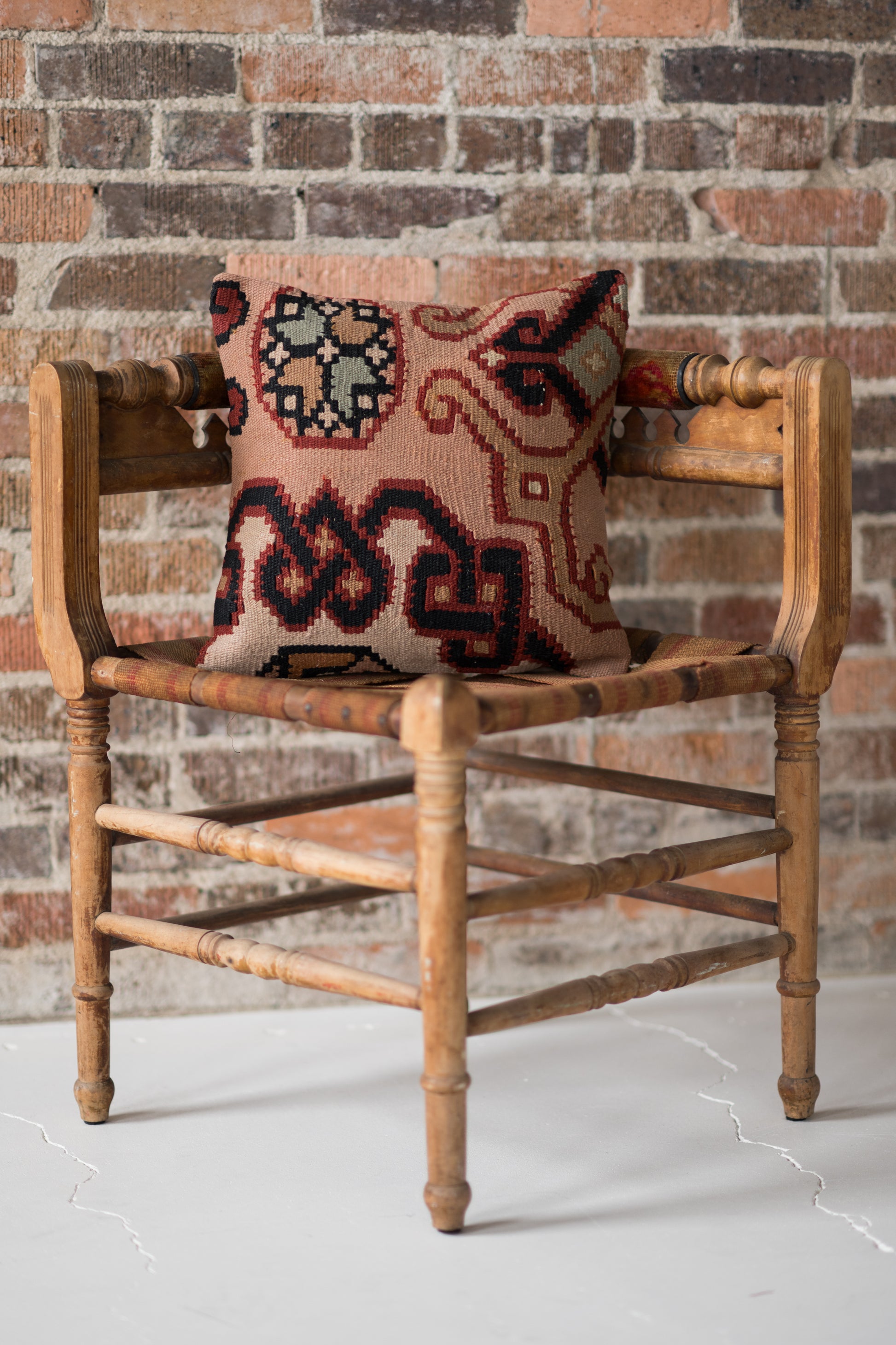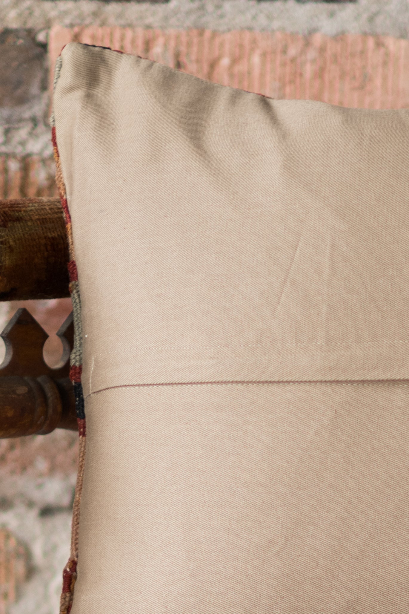 Wool rug face with coordinating fabric backing. All sizes are approximate. Age-related wear and patina are considered normal in these unique, hand woven pieces. All items have been photographed with moderate natural light. Colors may vary depending on your phone or screen settings. Some items may not be perfectly straight. We consider these characteristics part of what makes them truly one-of-a-kind.