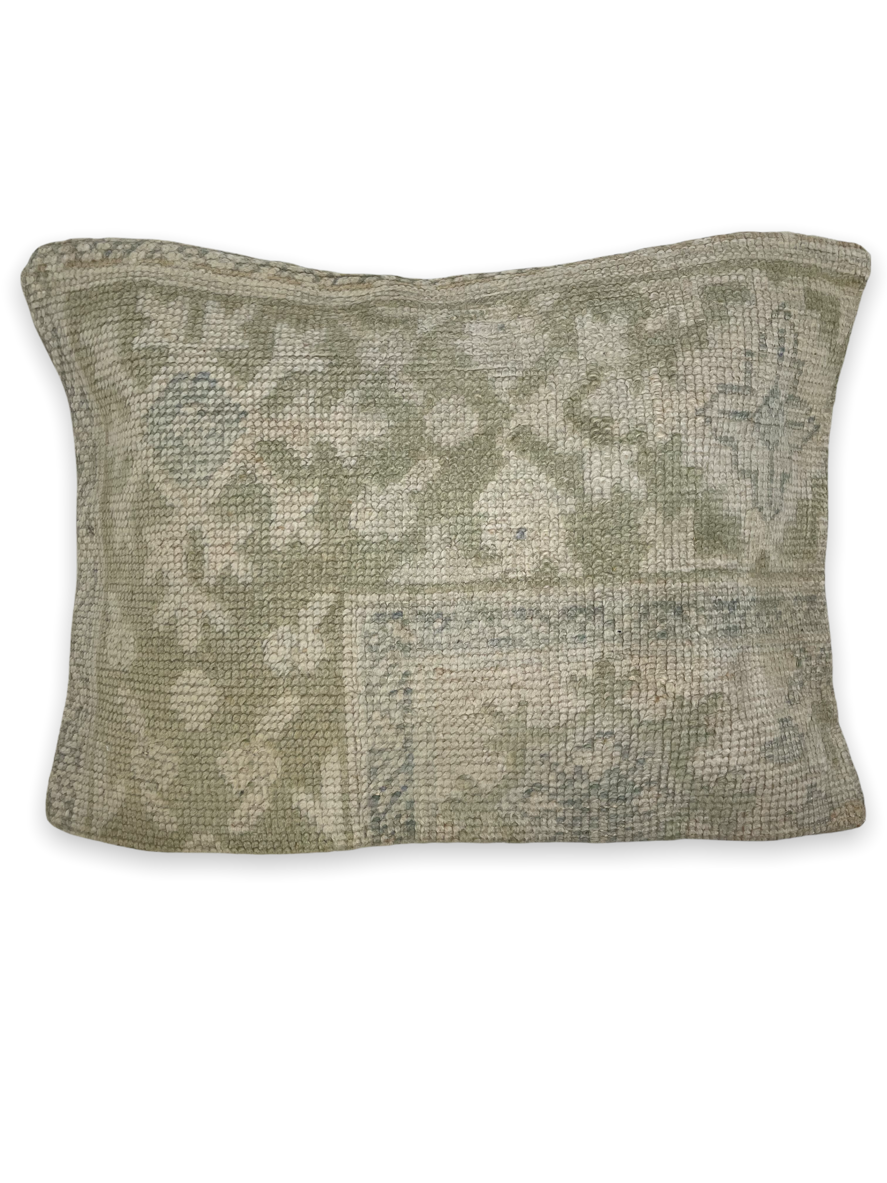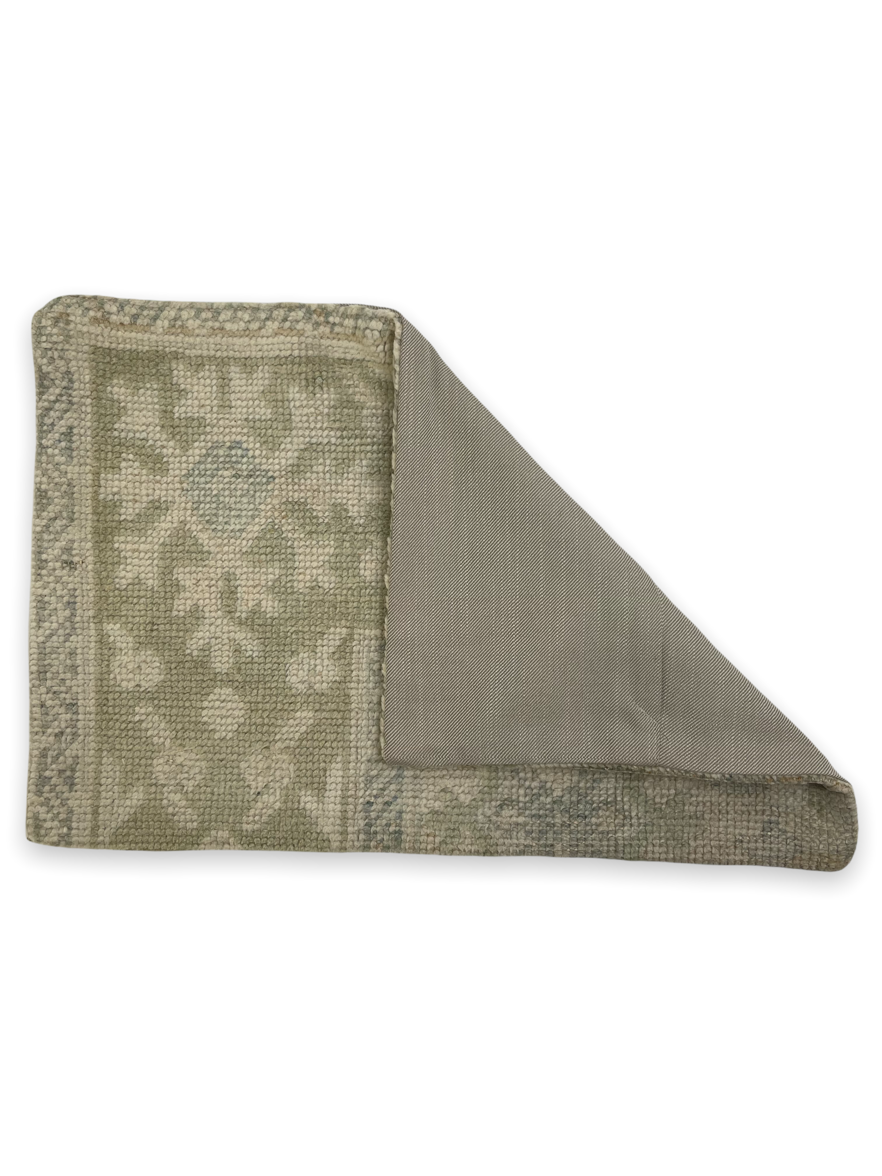 Wool rug face with coordinating fabric backing. All sizes are approximate. Age-related wear and patina are considered normal in these unique, hand woven pieces. All items have been photographed with moderate natural light. Colors may vary depending on your phone or screen settings. Some items may not be perfectly straight. We consider these characteristics part of what makes them truly one-of-a-kind.