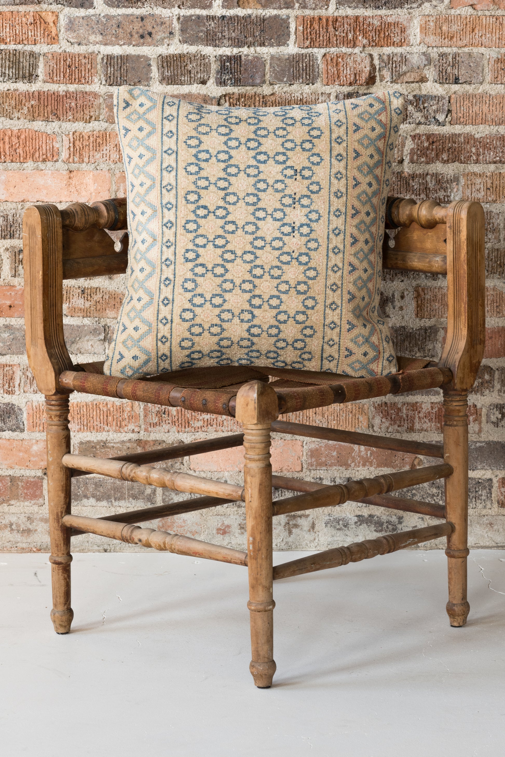 Wool rug face with coordinating fabric backing. All sizes are approximate. Age-related wear and patina are considered normal in these unique, hand woven pieces. All items have been photographed with moderate natural light. Colors may vary depending on your phone or screen settings. Some items may not be perfectly straight. We consider these characteristics part of what makes them truly one-of-a-kind.