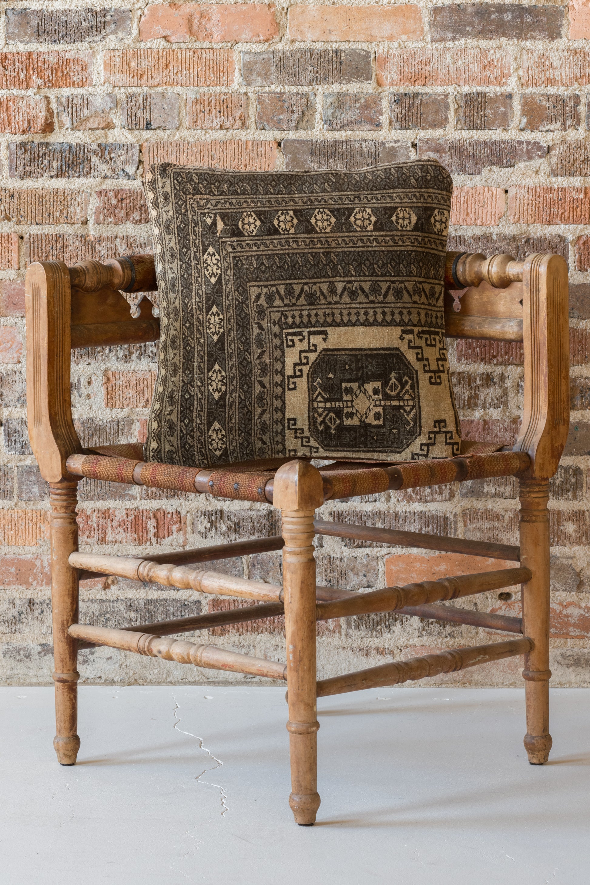 Wool rug face with coordinating fabric backing. All sizes are approximate. Age-related wear and patina are considered normal in these unique, hand woven pieces. All items have been photographed with moderate natural light. Colors may vary depending on your phone or screen settings. Some items may not be perfectly straight. We consider these characteristics part of what makes them truly one-of-a-kind.