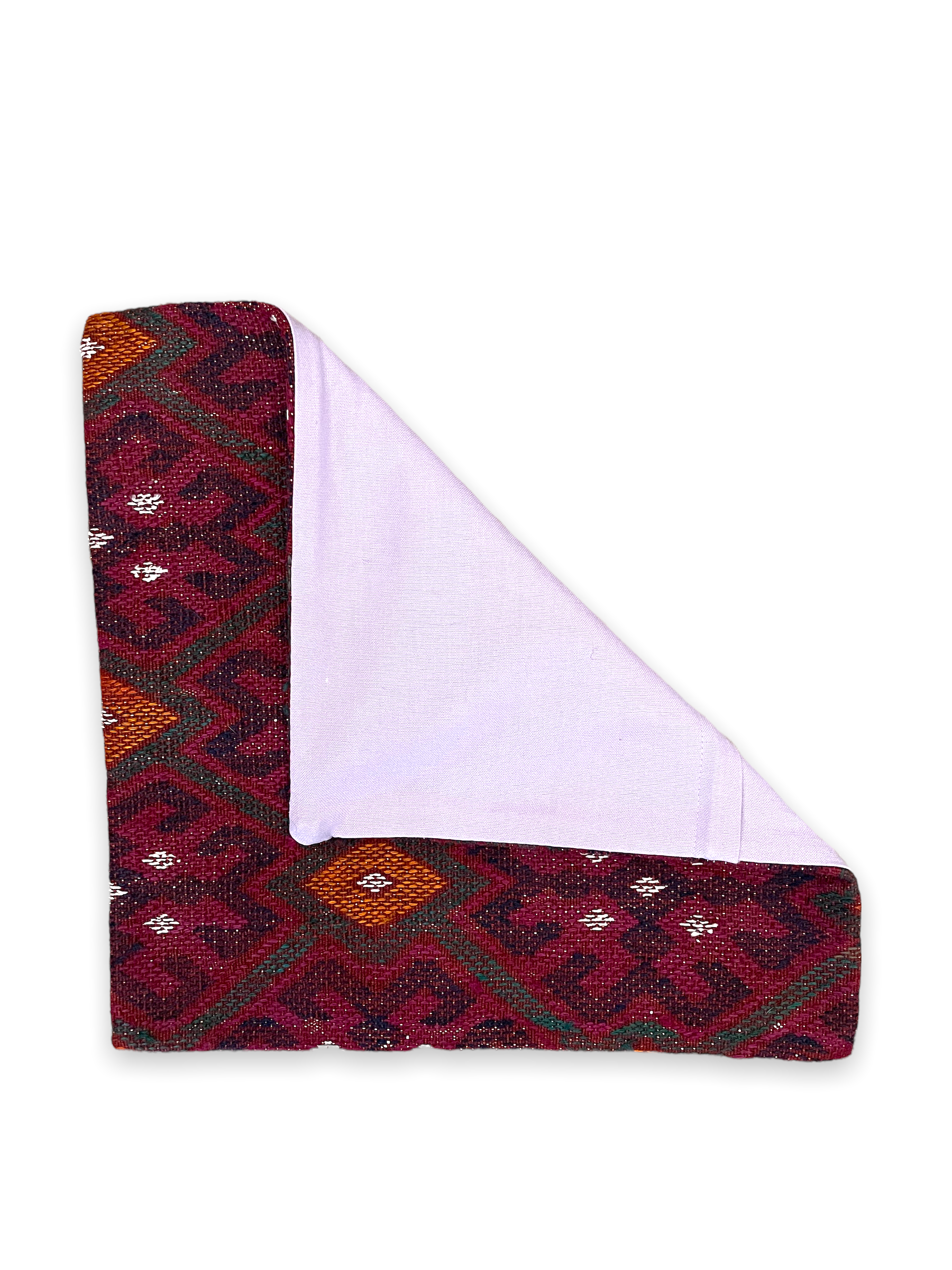 Wool rug face with coordinating fabric backing. All sizes are approximate. Age-related wear and patina are considered normal in these unique, hand woven pieces. All items have been photographed with moderate natural light. Colors may vary depending on your phone or screen settings. Some items may not be perfectly straight. We consider these characteristics part of what makes them truly one-of-a-kind.