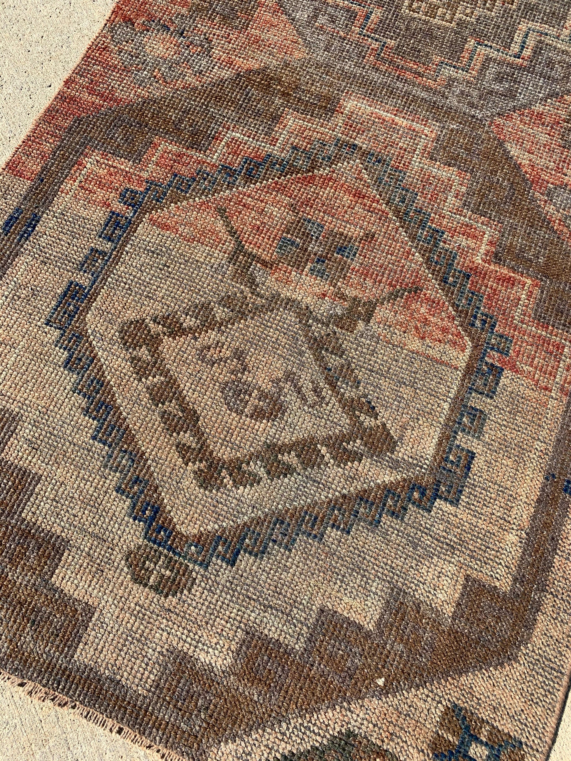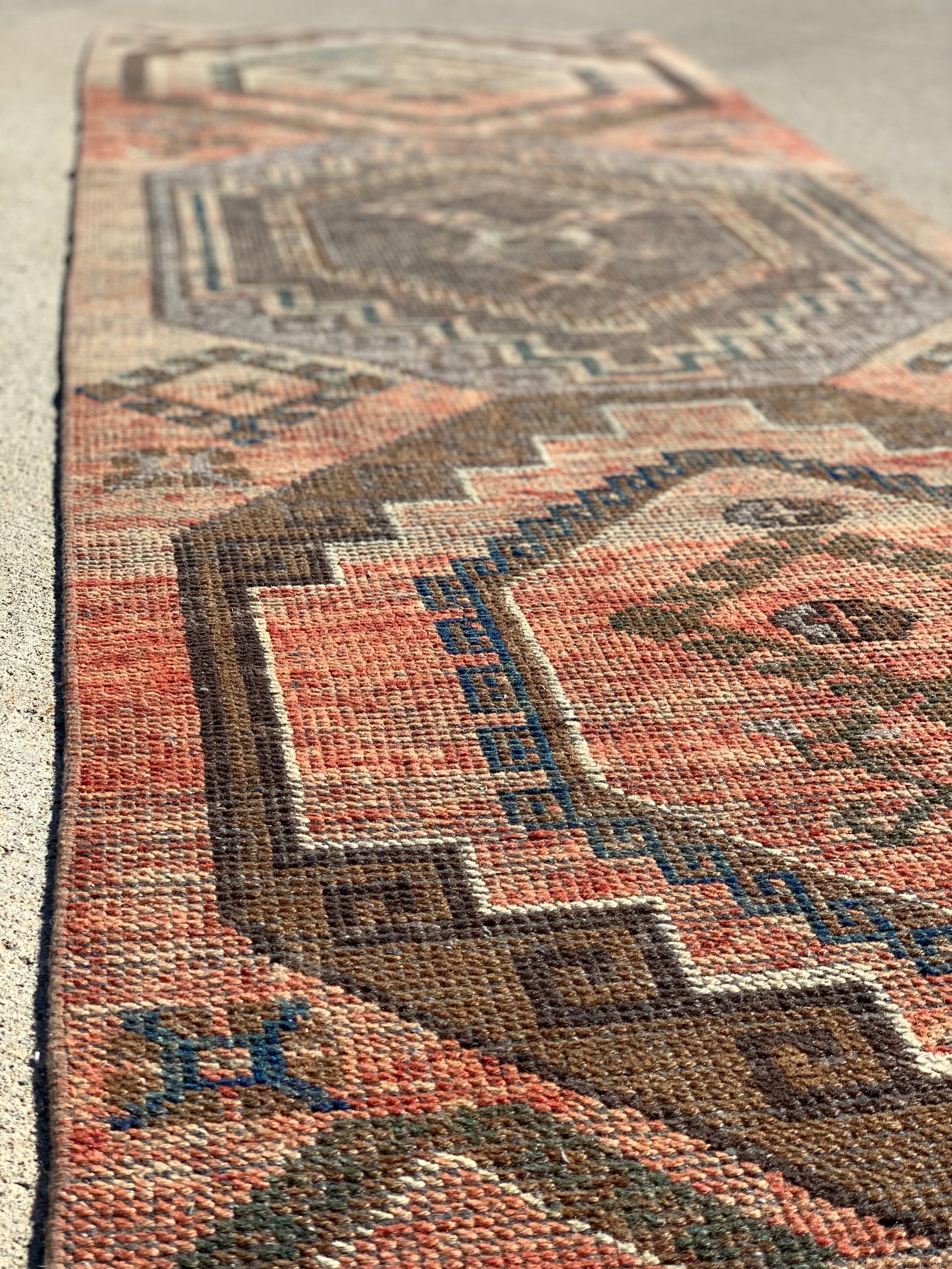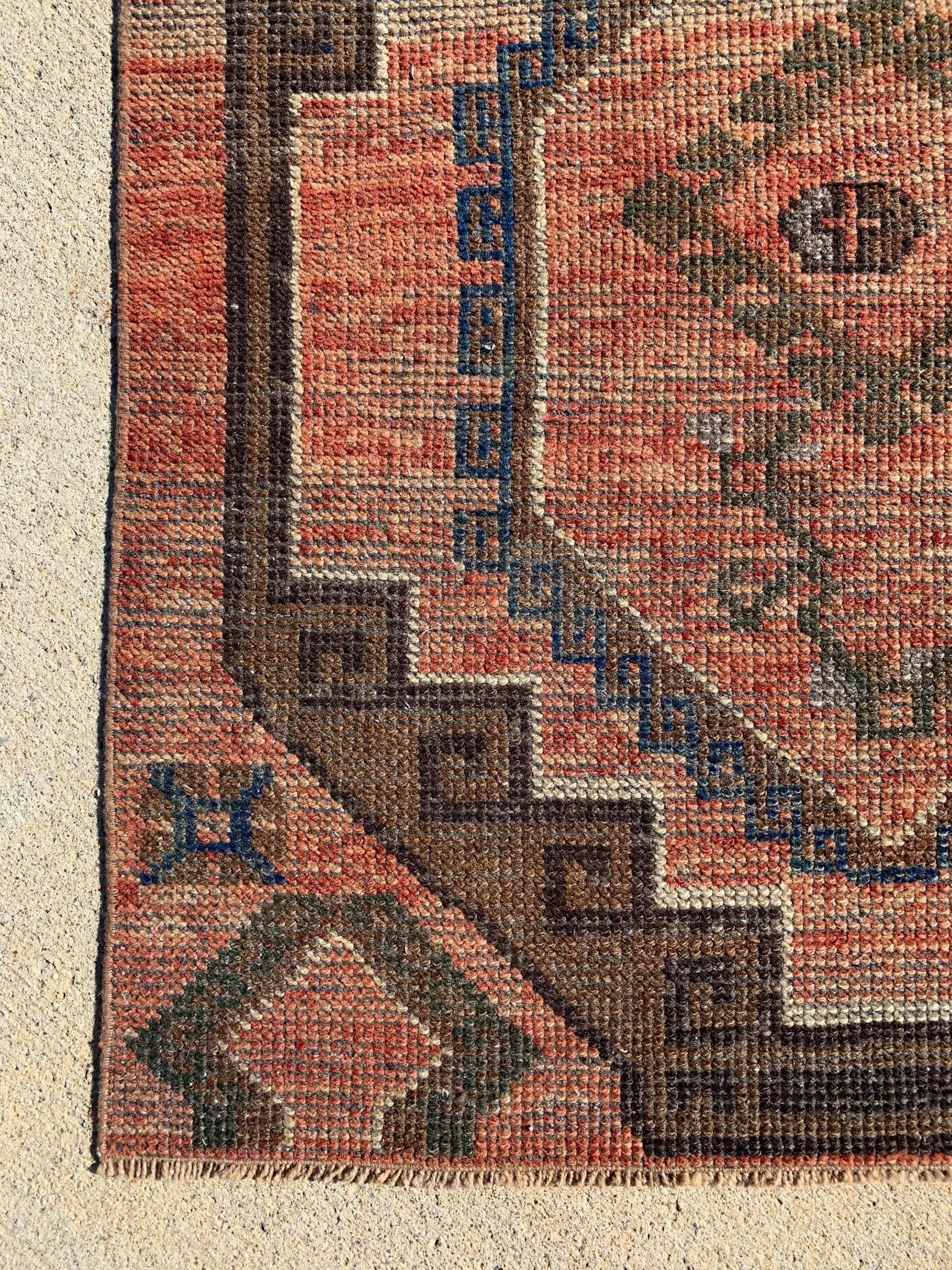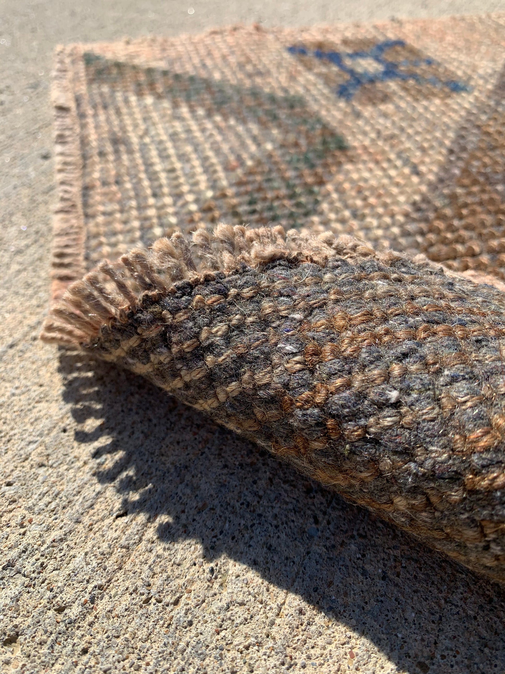 All rugs have been thoroughly cleaned; age-related wear and patina are considered normal in these unique, hand woven vintage rugs. All pieces have been photographed with moderate natural light. Colors may vary depending on your phone or screen settings. Some items may not be perfectly straight or rectangle. We consider these characteristics part of what makes them truly one-of-a-kind.