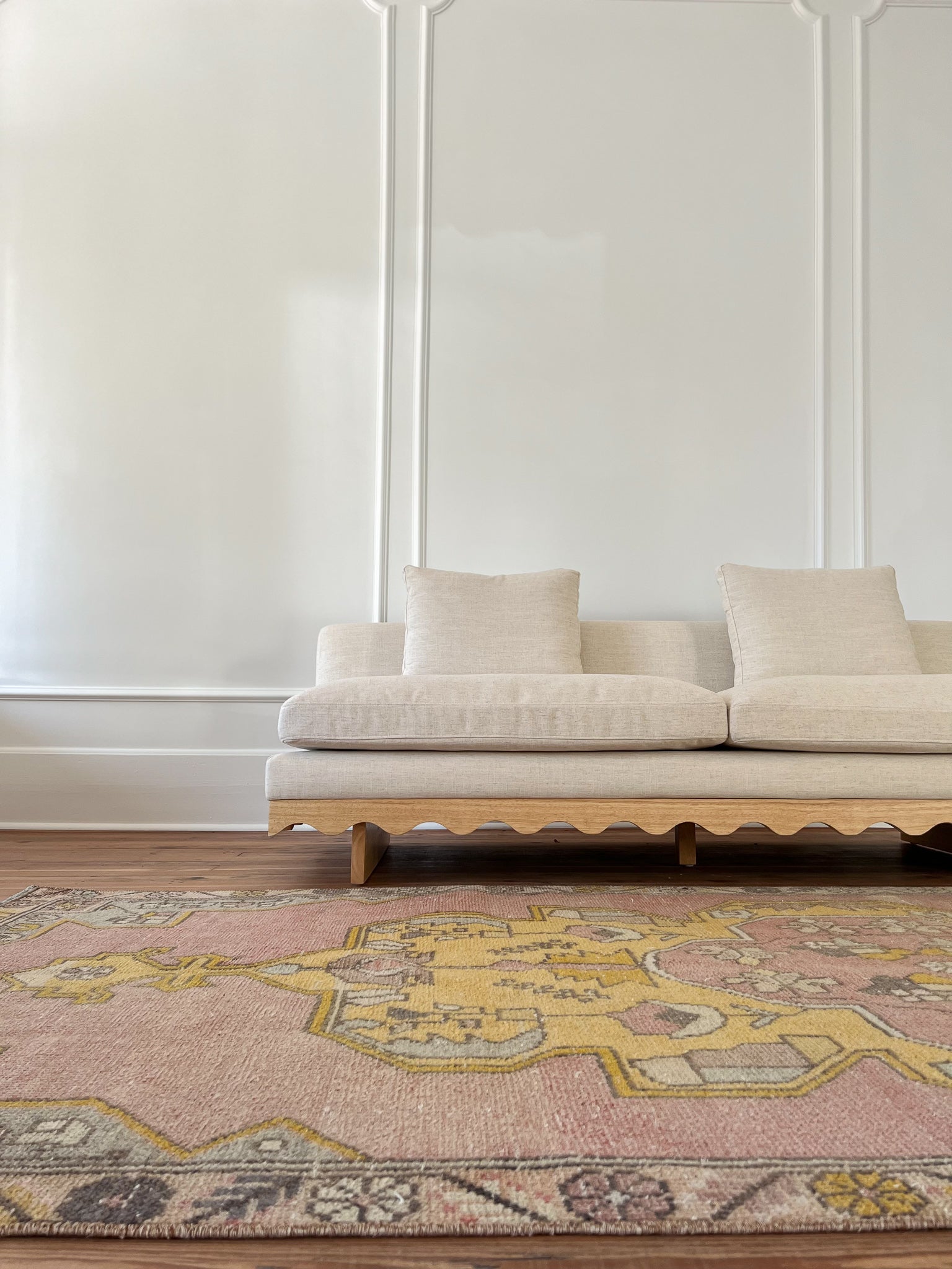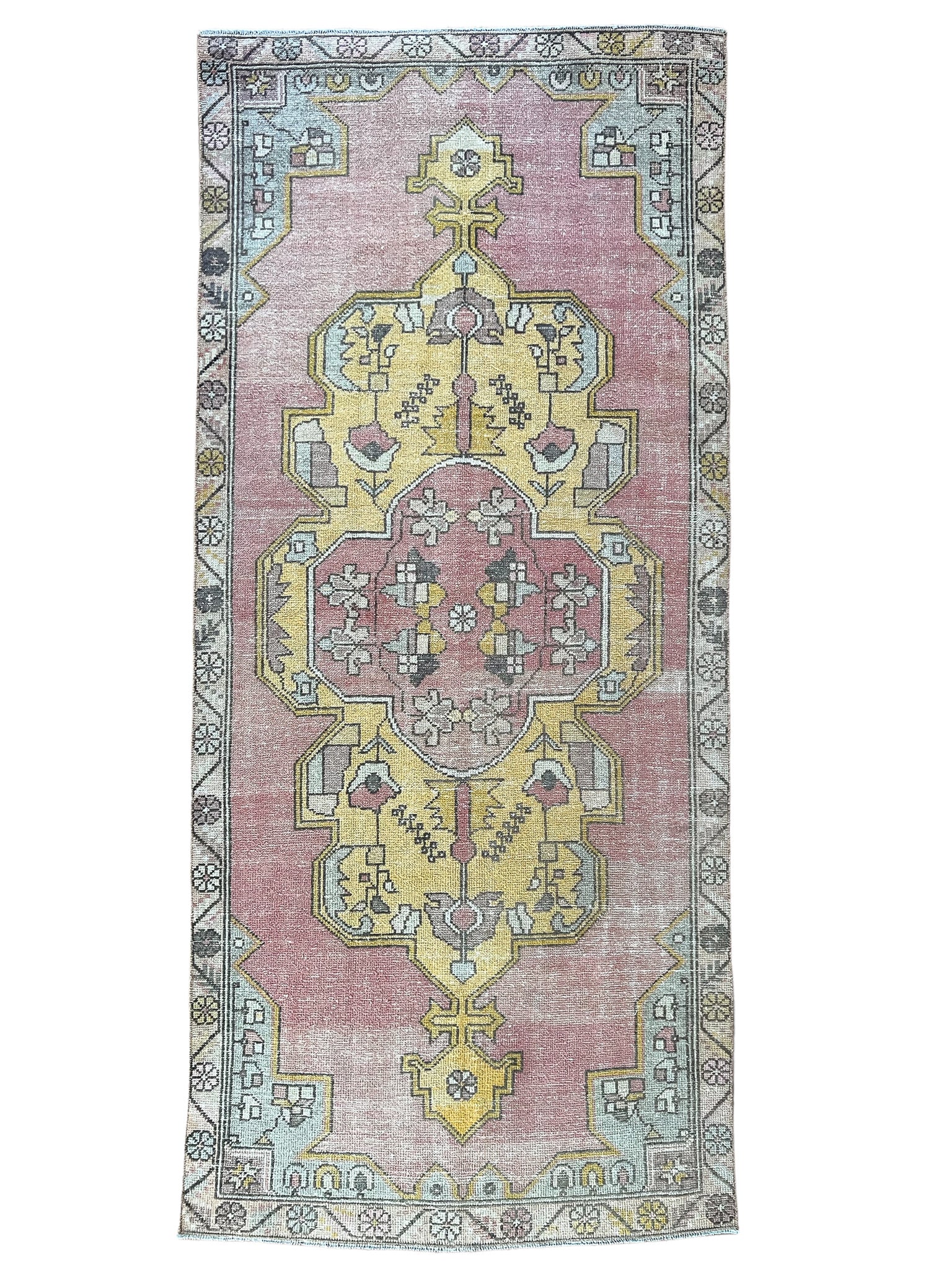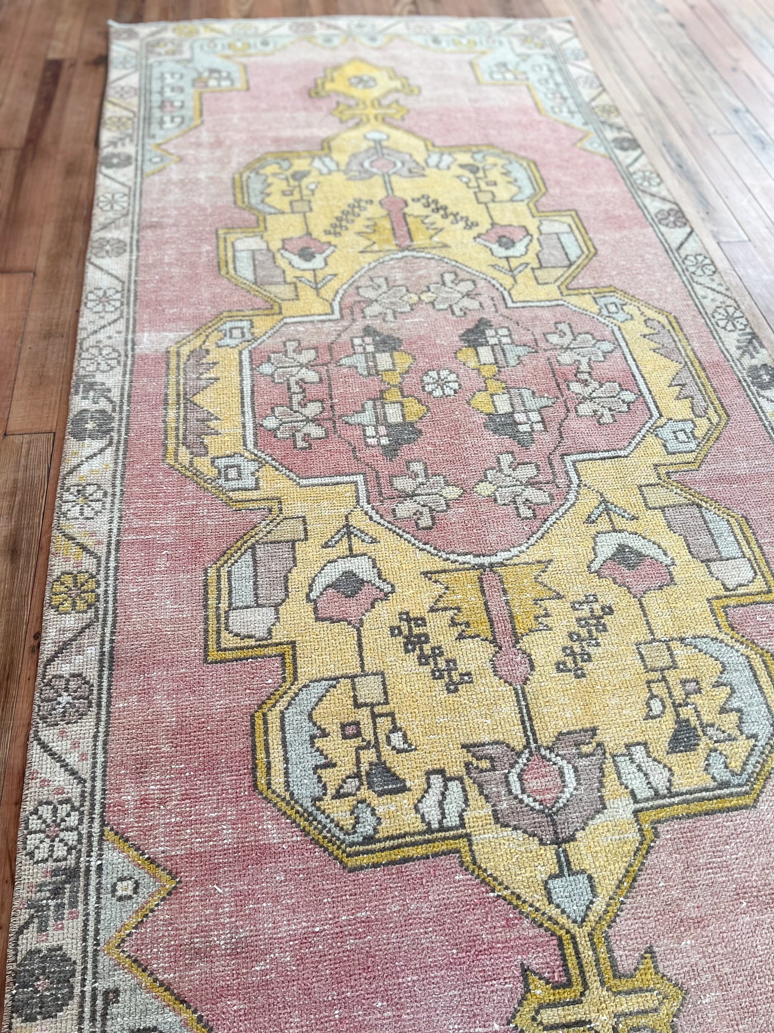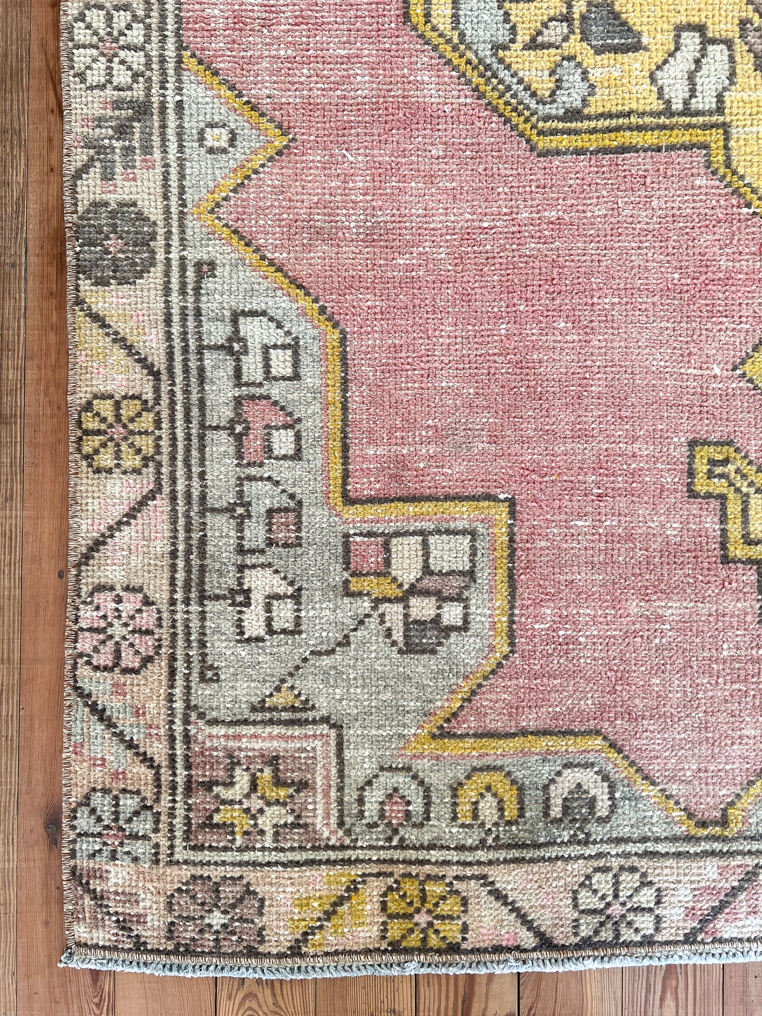 All rugs have been thoroughly cleaned; age-related wear and patina are considered normal in these unique, hand-woven vintage rugs. All pieces have been photographed with moderate natural light. In some cases, photos are edited to depict the most true-to-life colors. Colors may vary depending on your phone or screen settings. Some items may not be perfectly straight or rectangle. We consider these characteristics part of what makes them truly one-of-a-kind.